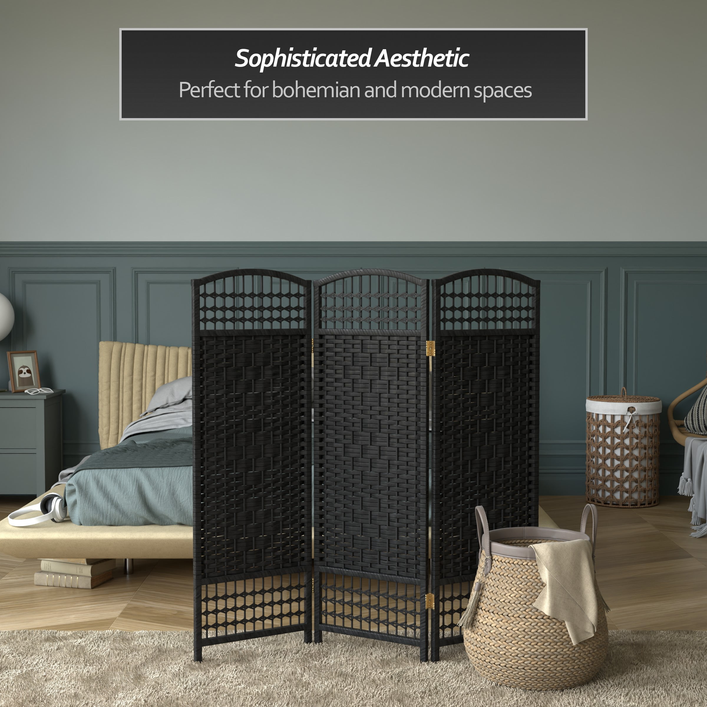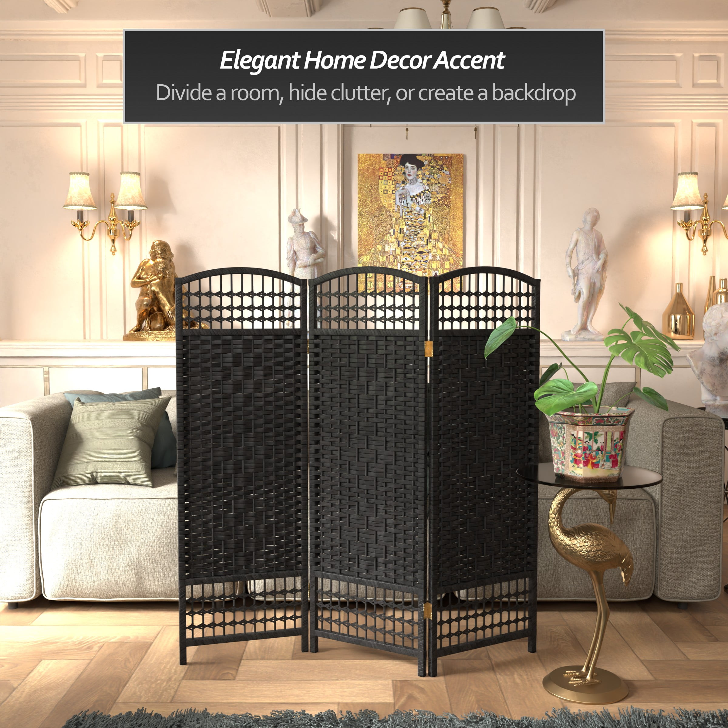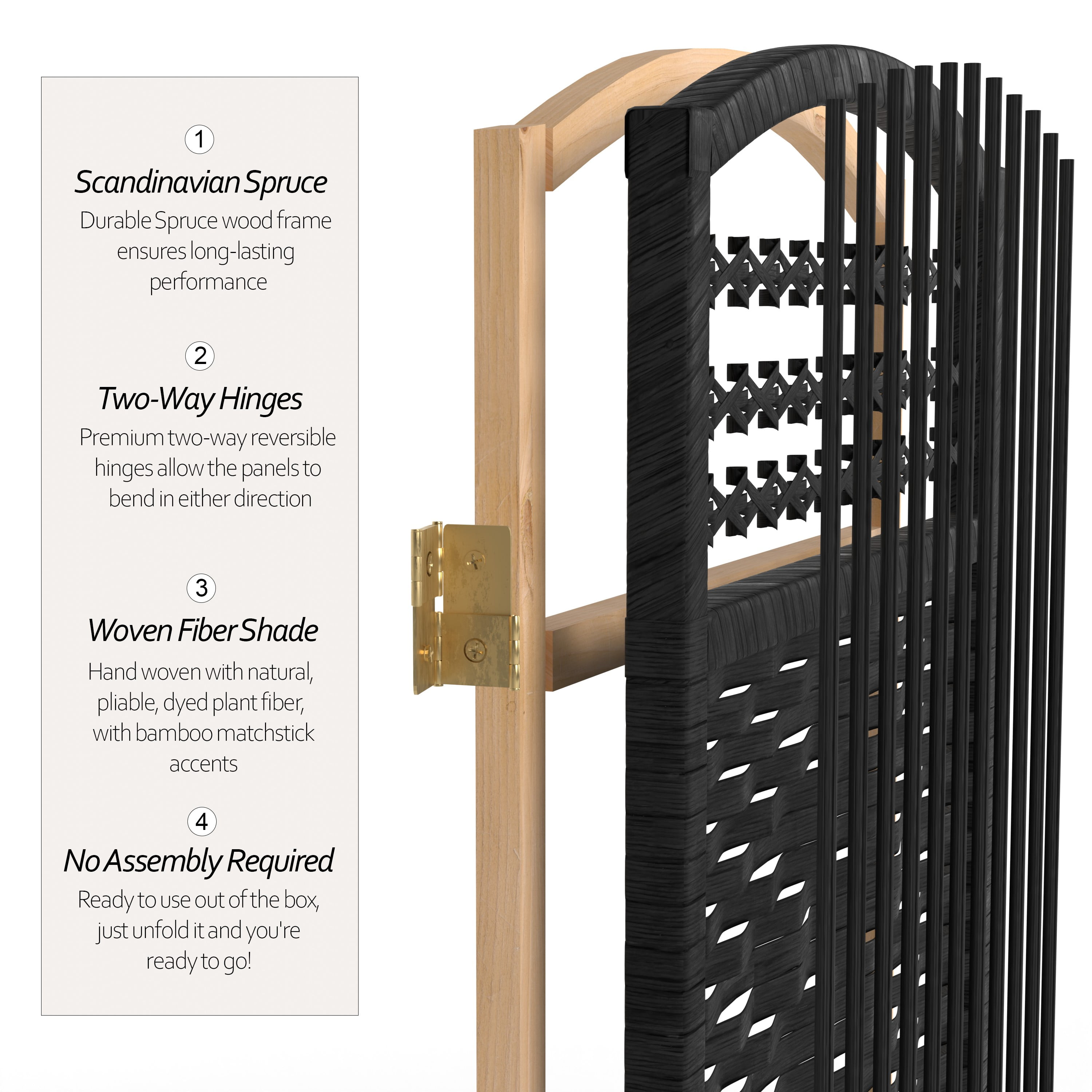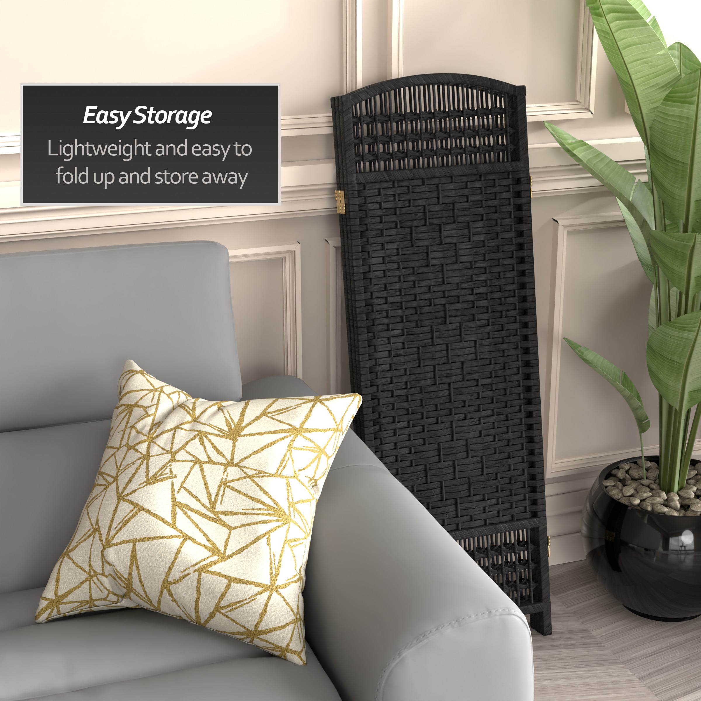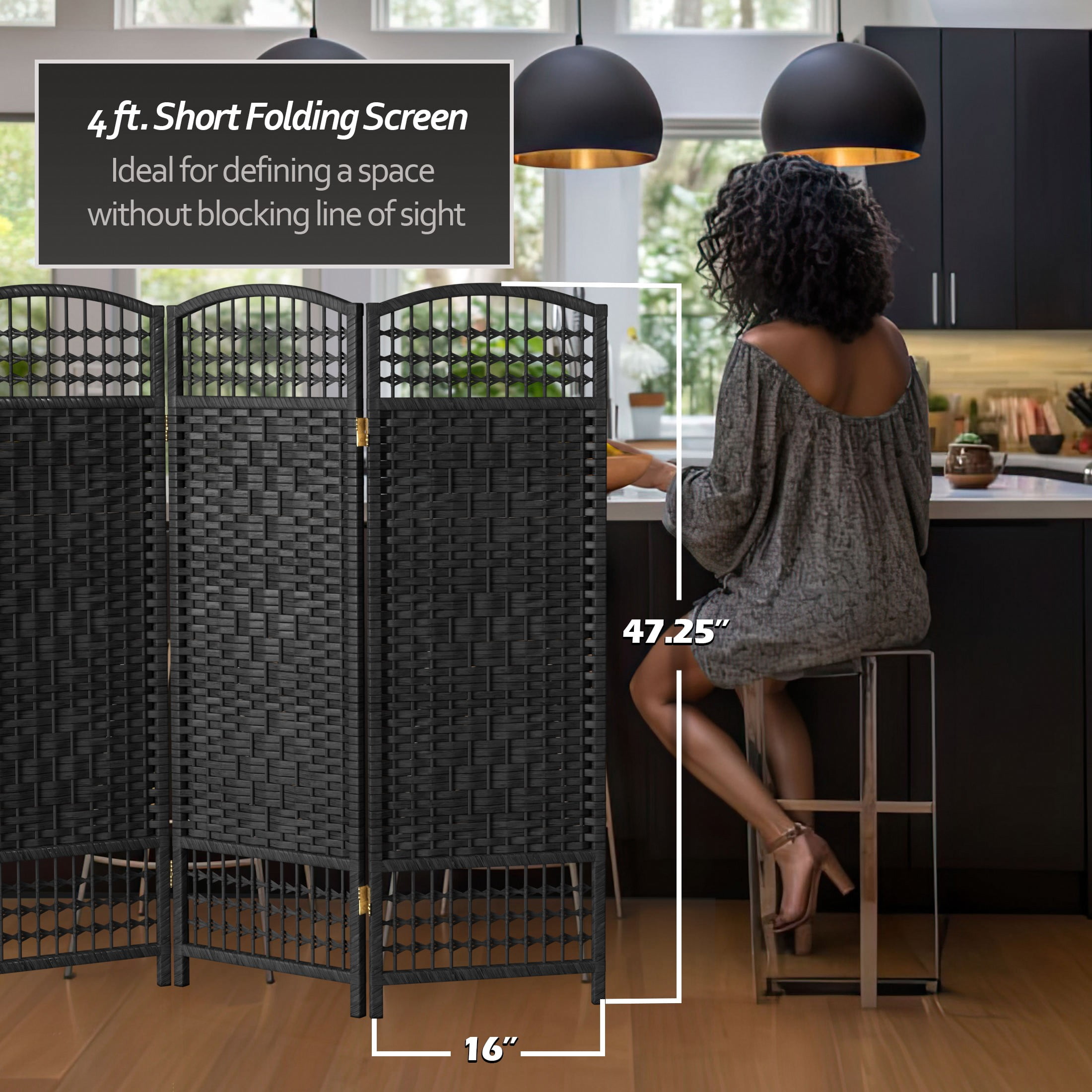 Red Lantern 4 ft. Short Fiber Weave Folding Screen – Black – 3 Panels