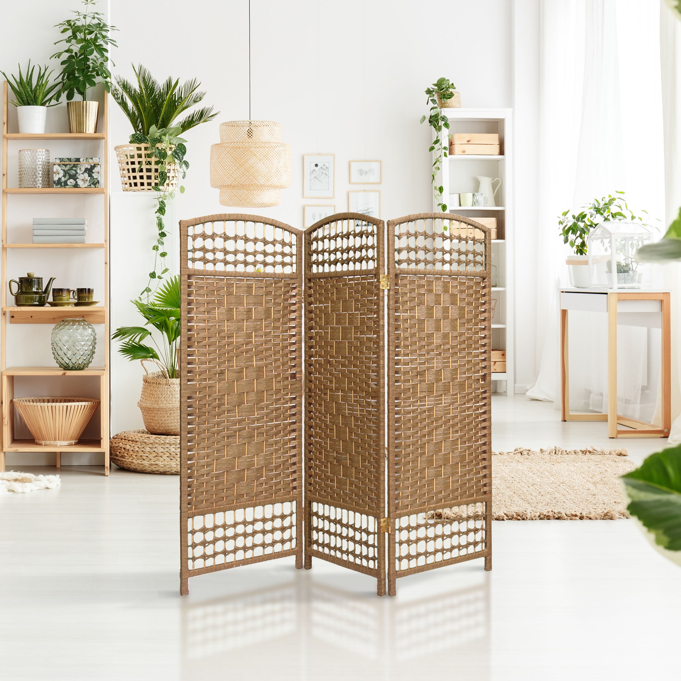 Red Lantern 4 ft. Short Fiber Weave Folding Screen – Natural – 3 Panels