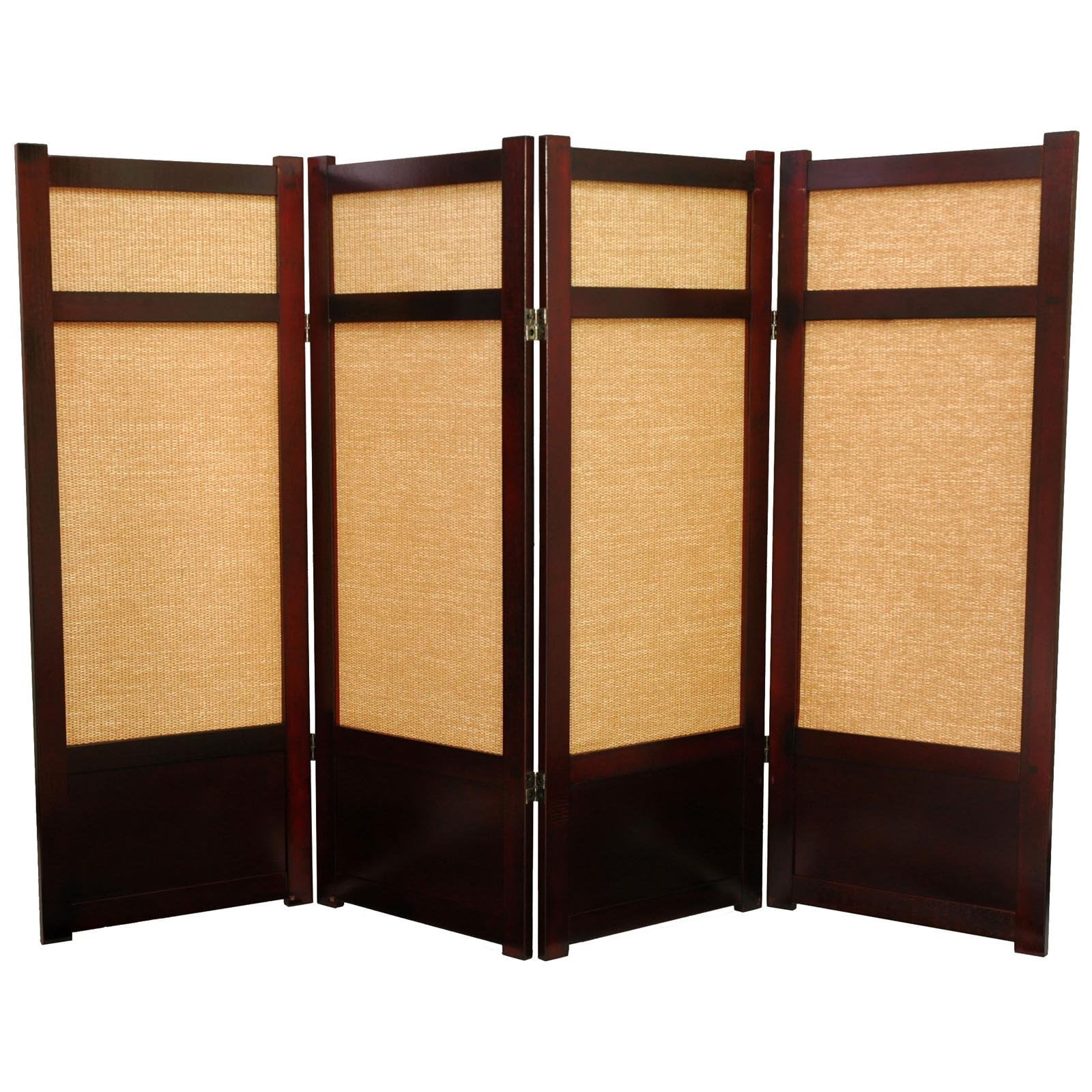 4′ Tall Jute Shoji Screen: This screen measures four feet tall Crafted from durable, lightweight Scandinavian Spruce, using Asian style mortise and tenon joinery Shade is strong, tightly woven jute panels to block light and provide complete privacy Color: rosewood Material: natural fiber