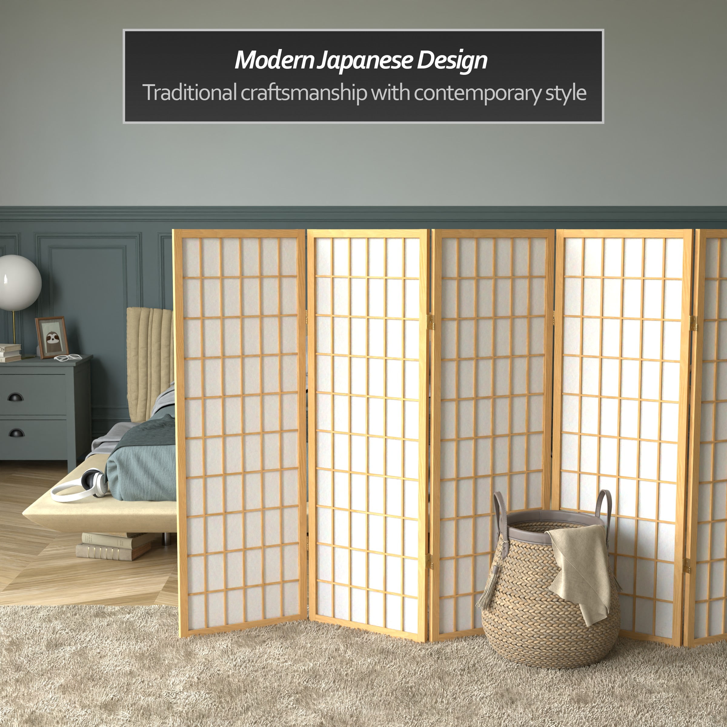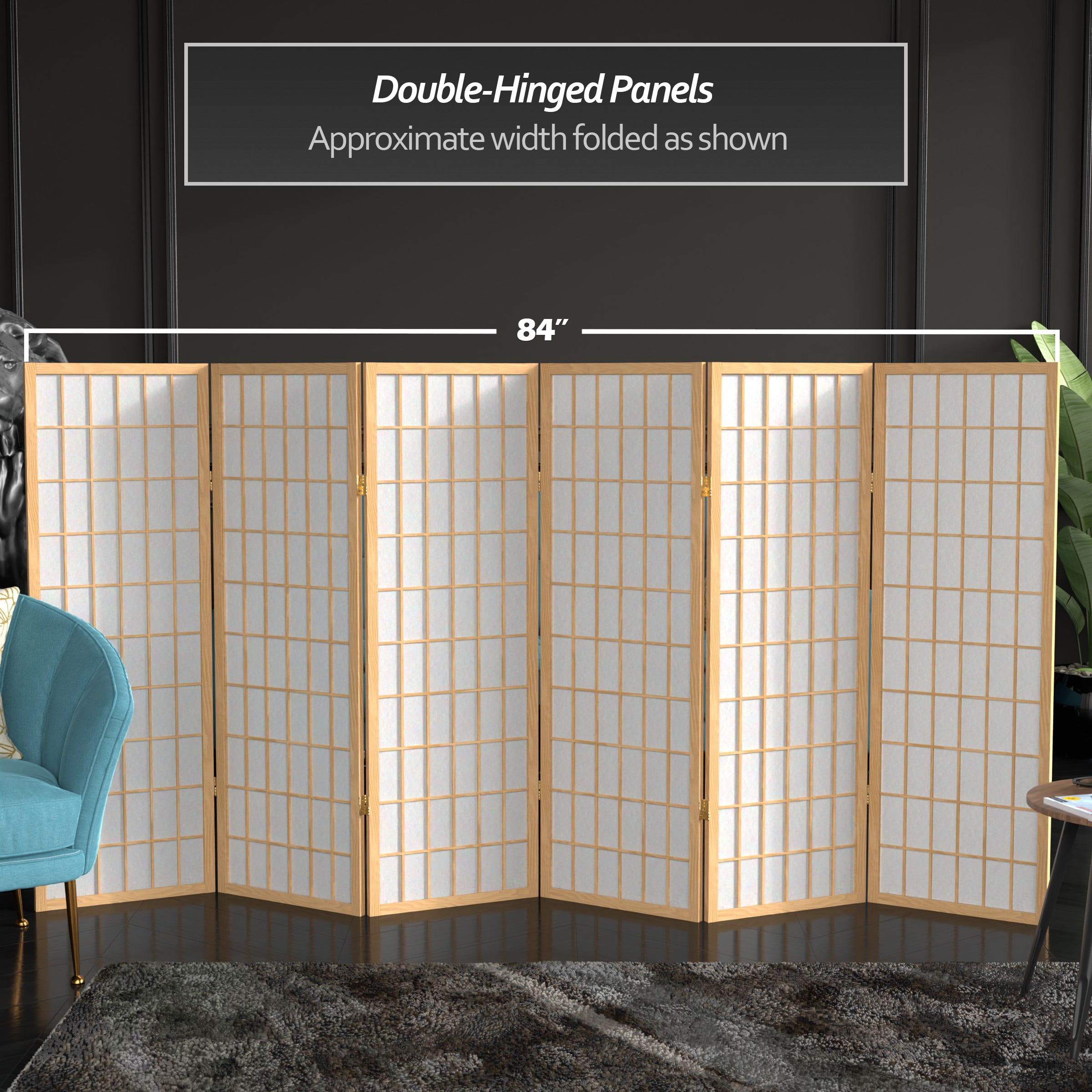 Red Lantern 4 ft. Short Window Pane Shoji Screen – Natural – 6 Panels