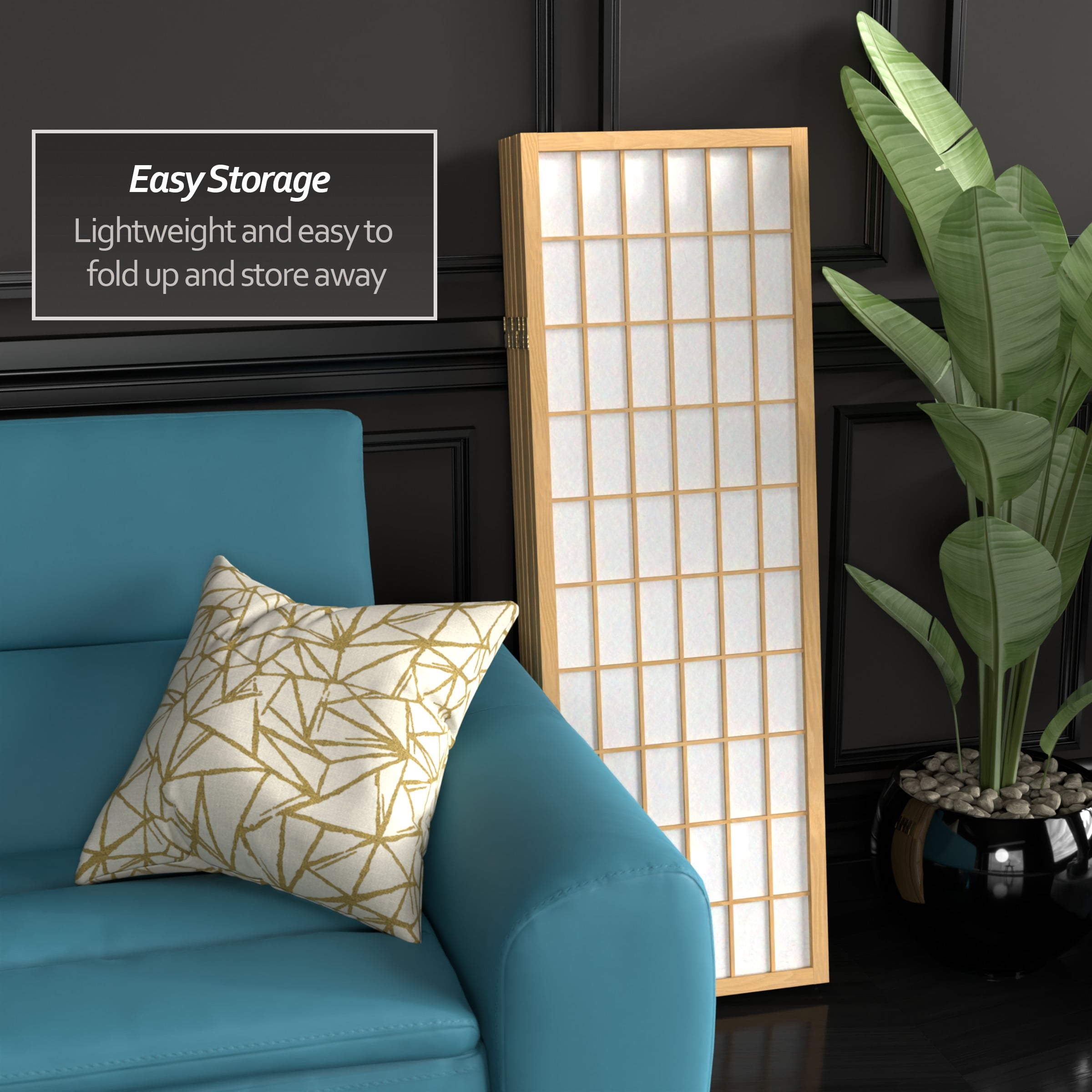 4′ Tall Window Pane Shoji Screen: Translucent Shoji paper provides privacy without blocking light Durable Scandinavian spruce frame is lightweight and portable Brass hinged panels fold in either direction Color: white Material: rice paper