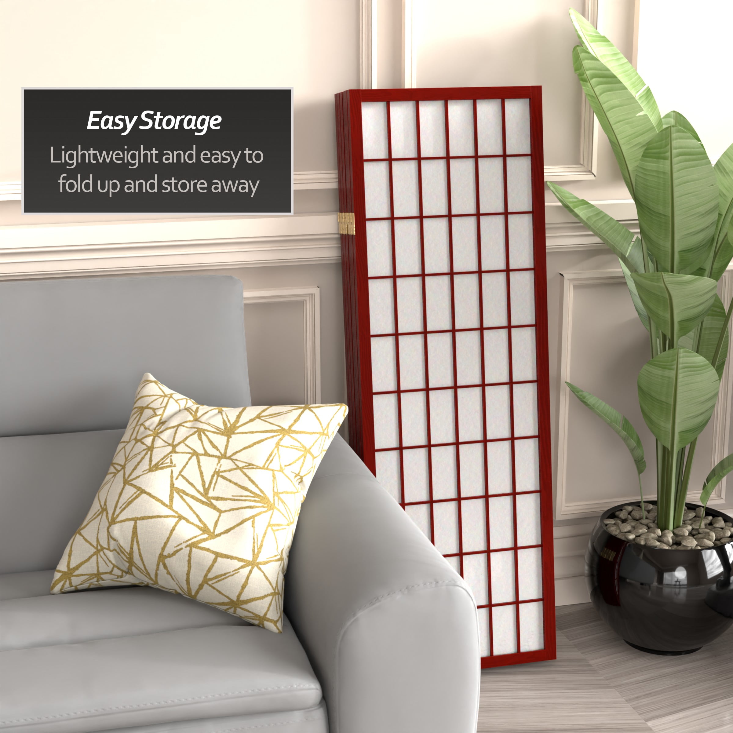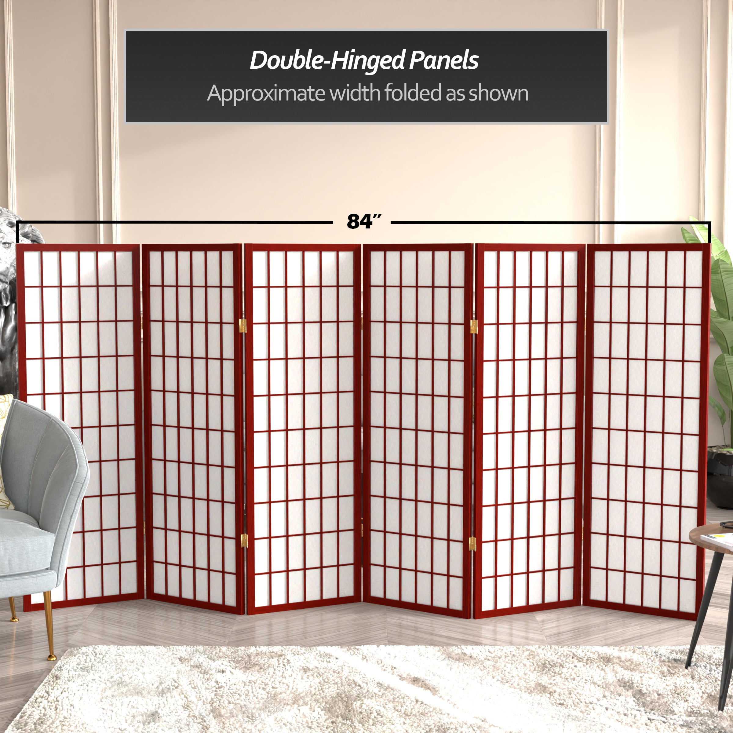 Red Lantern 4 ft. Short Window Pane Shoji Screen – Rosewood – 6 Panels