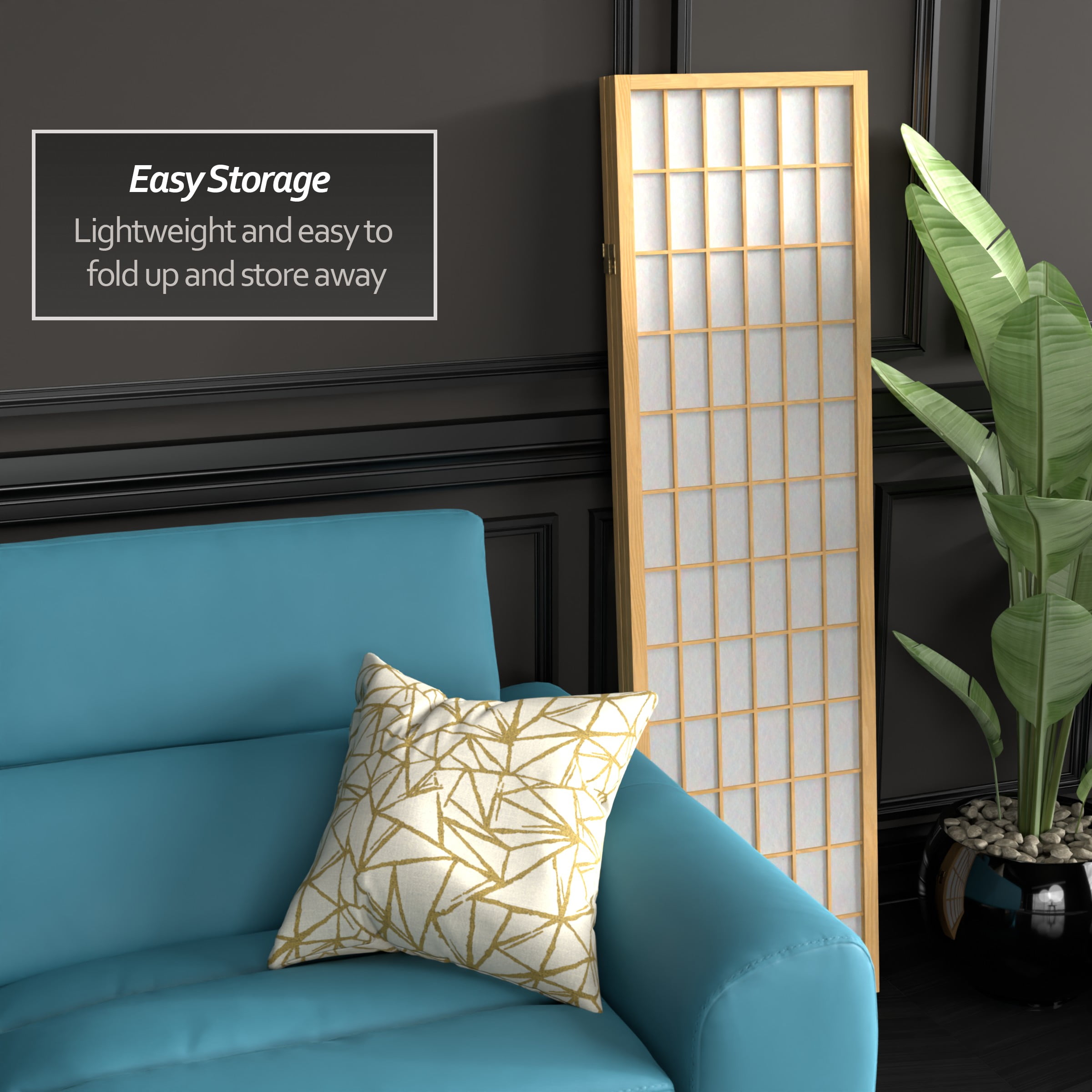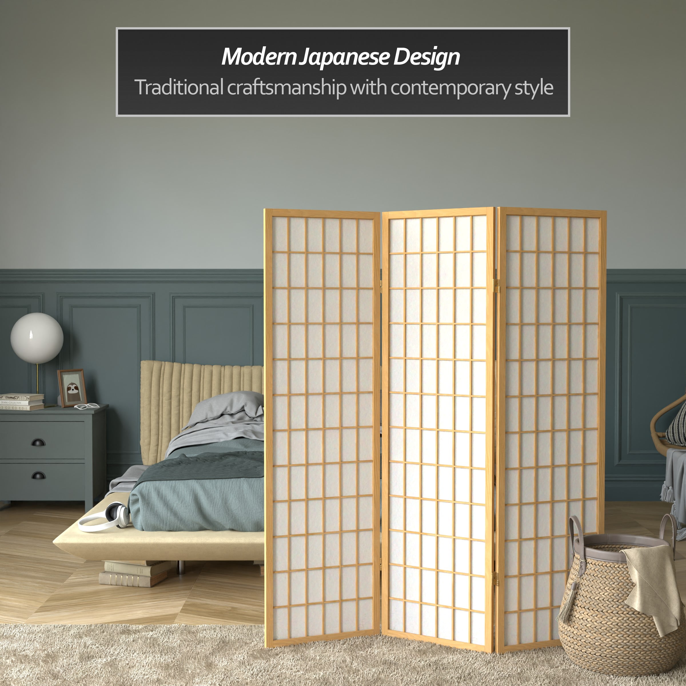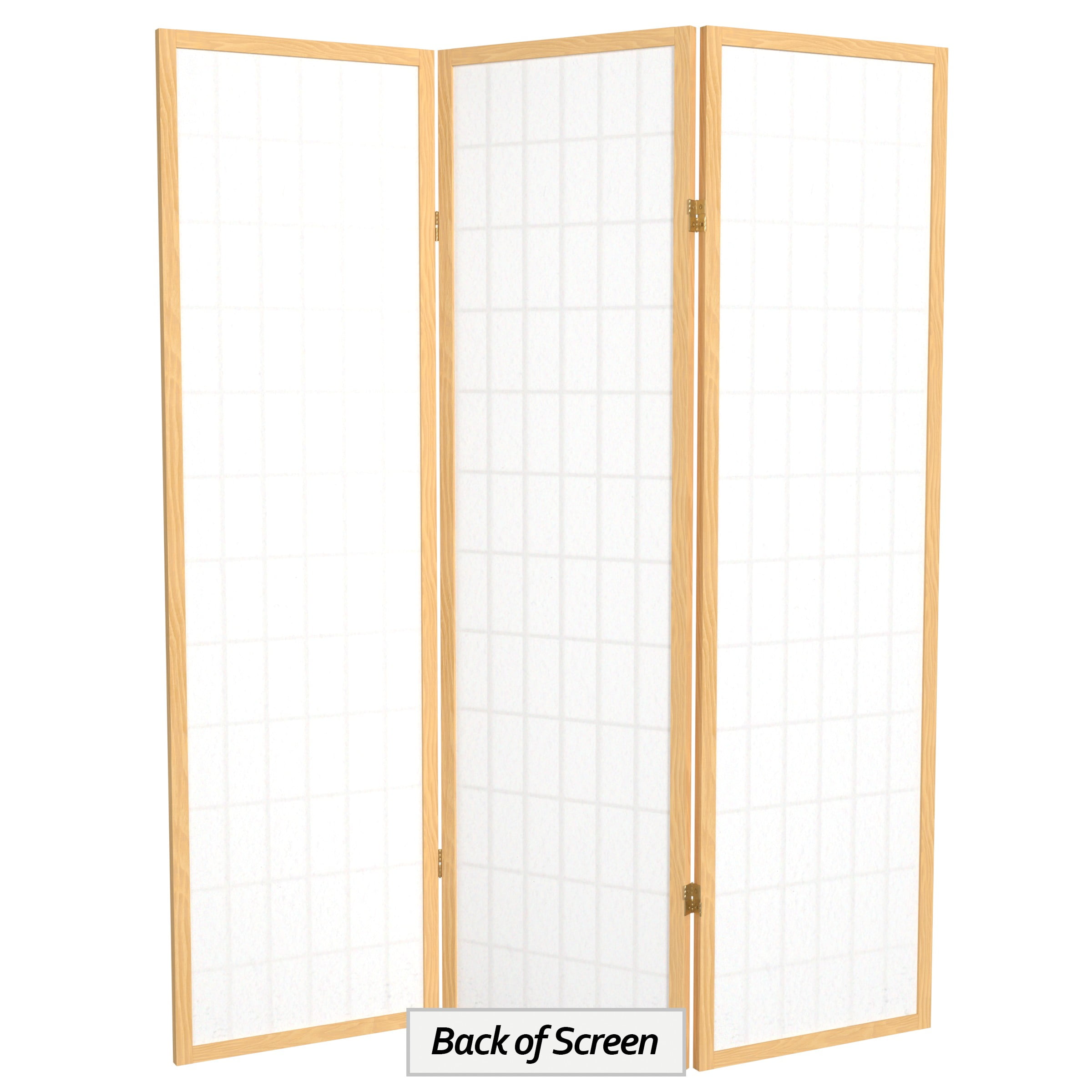 5′ Tall Window Pane Shoji Screen: Shoji rice paper and Scandinavian spruce design is sturdy and lightweight Allows diffused light while providing privacy 2-way hinges allow panels to fold in both directions Color: white Material: rice paper