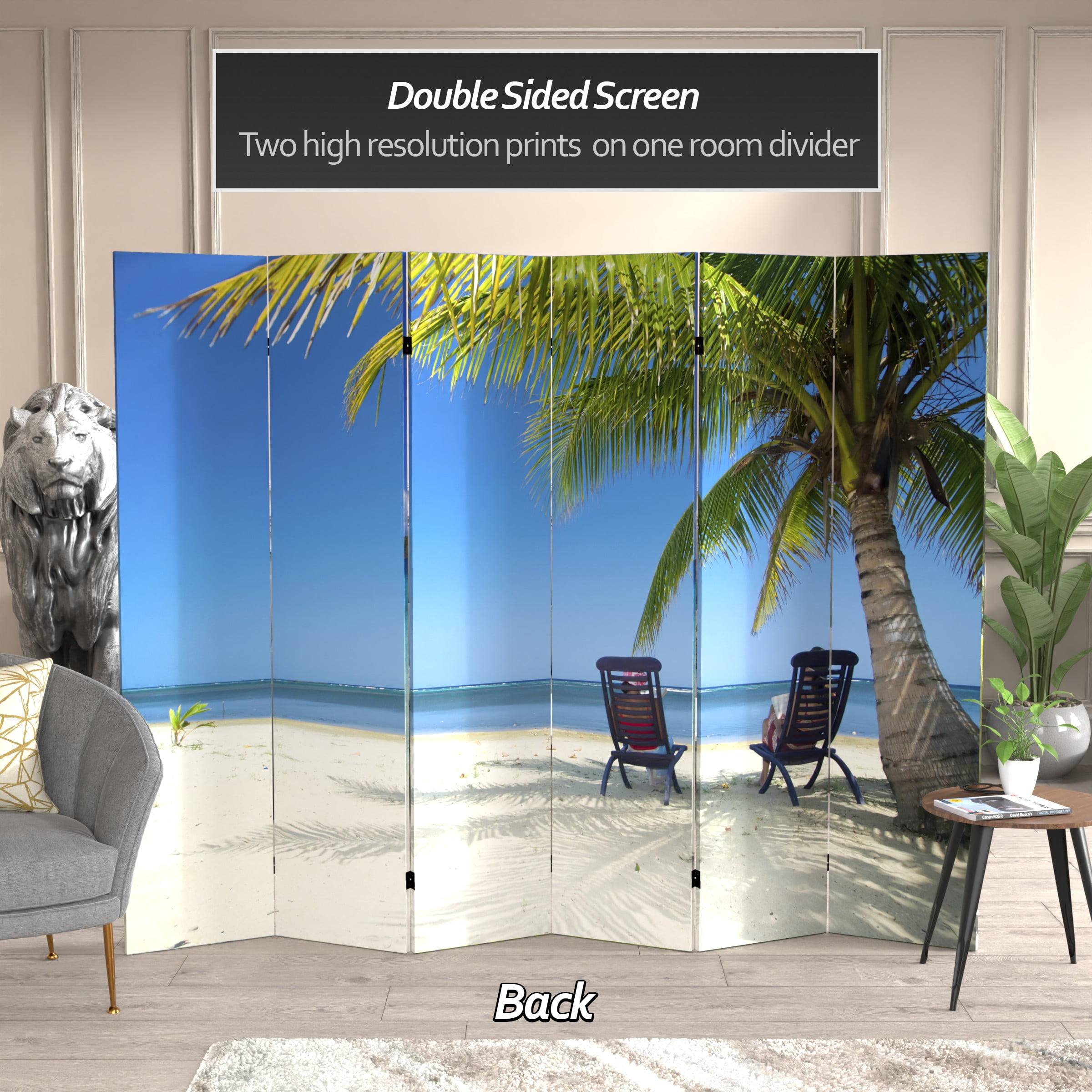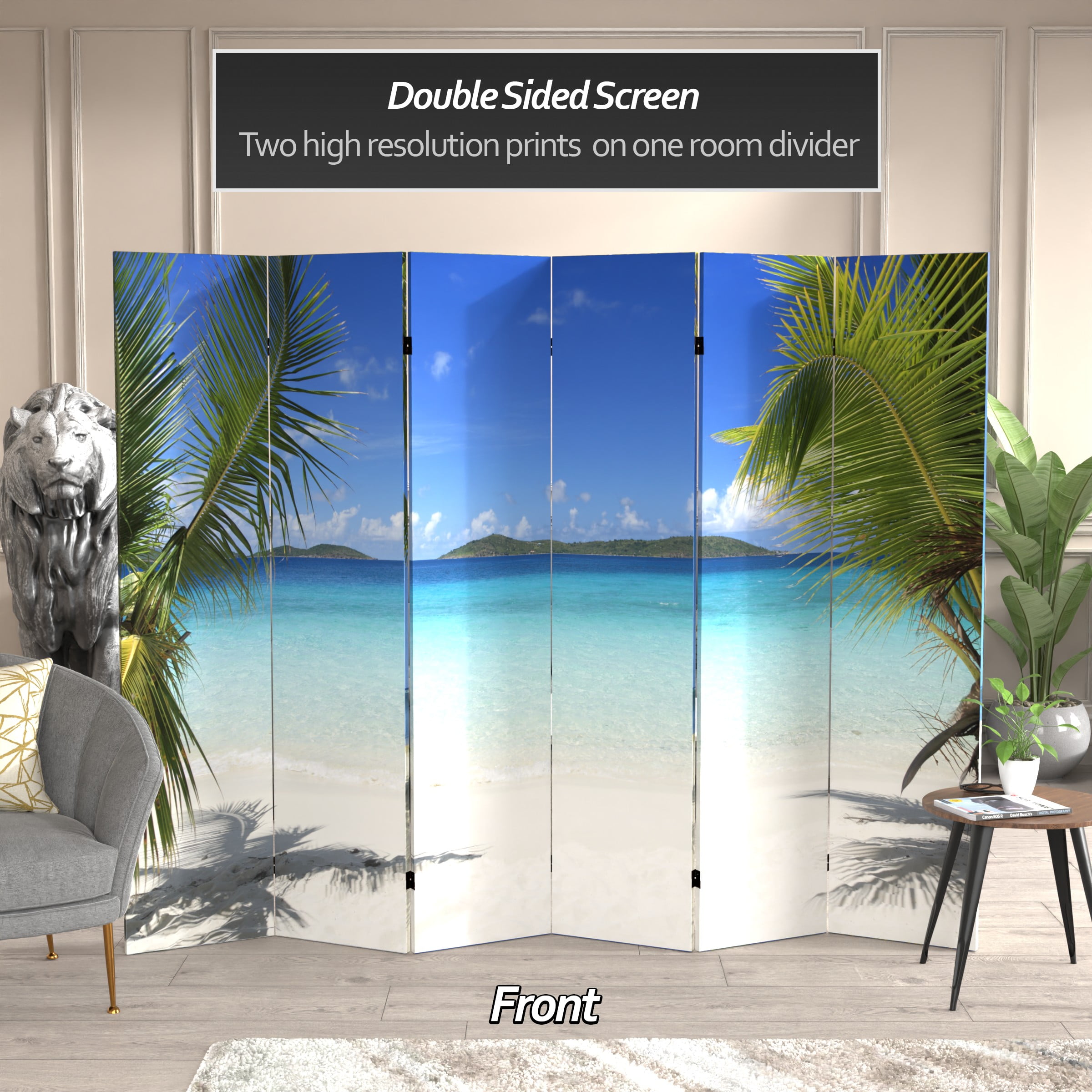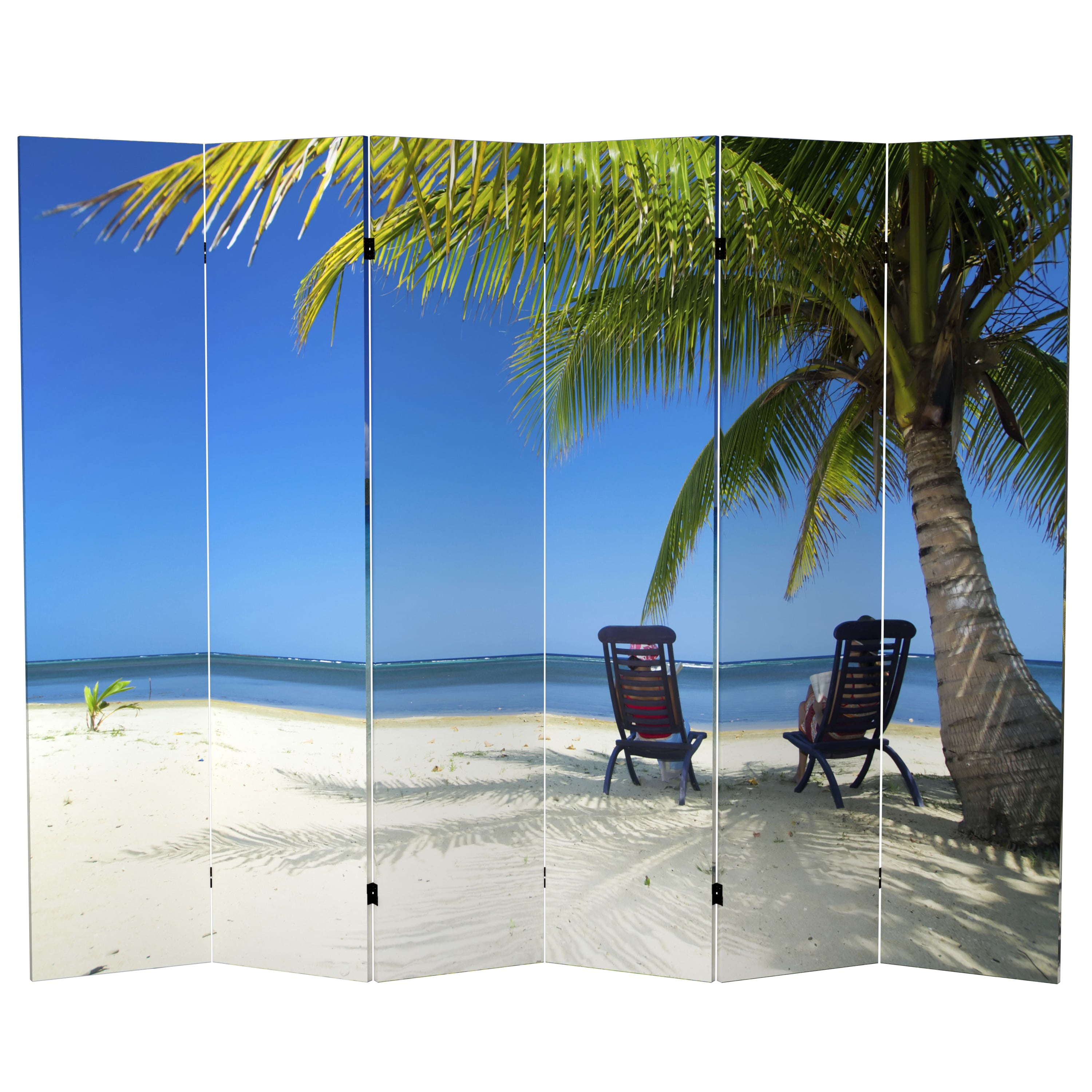 Oriental Furniture 6 ft. Tall Double Sided Beach Canvas Room Divider – 6 Panel