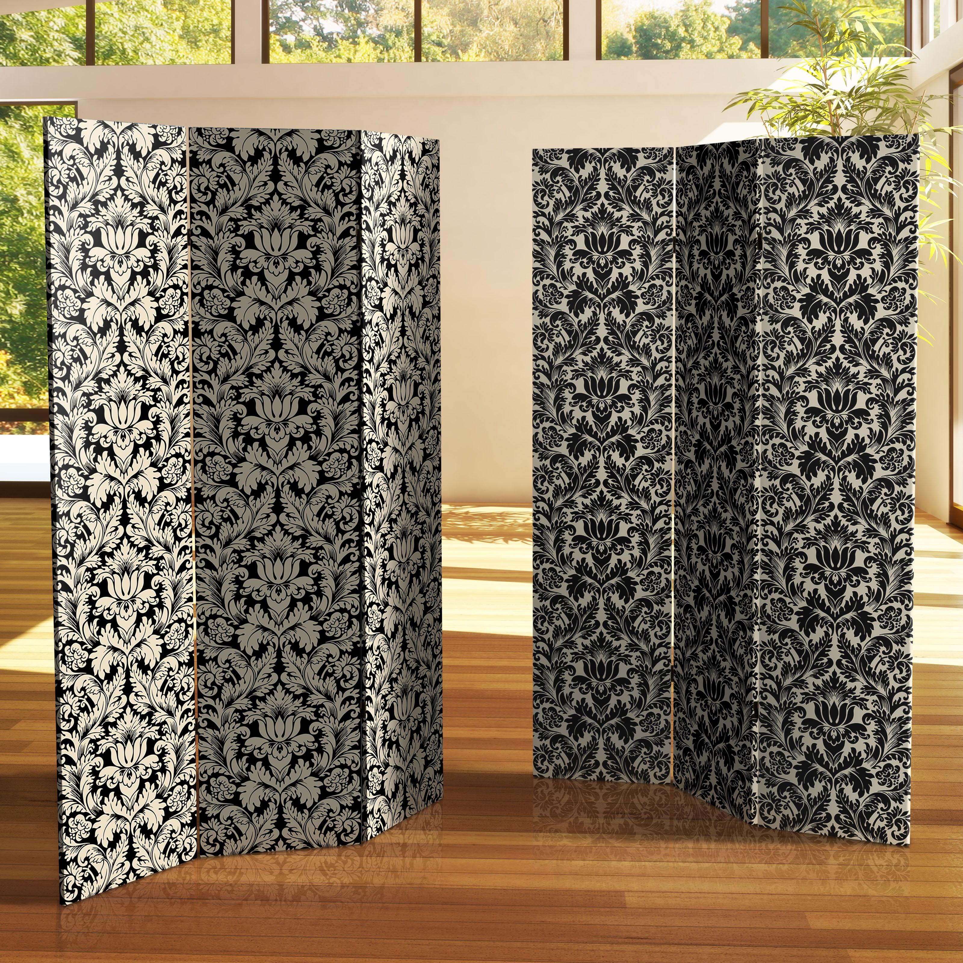Oriental Furniture 6 ft. Tall Ebony Damask Canvas Room Divider – 3 Panel
