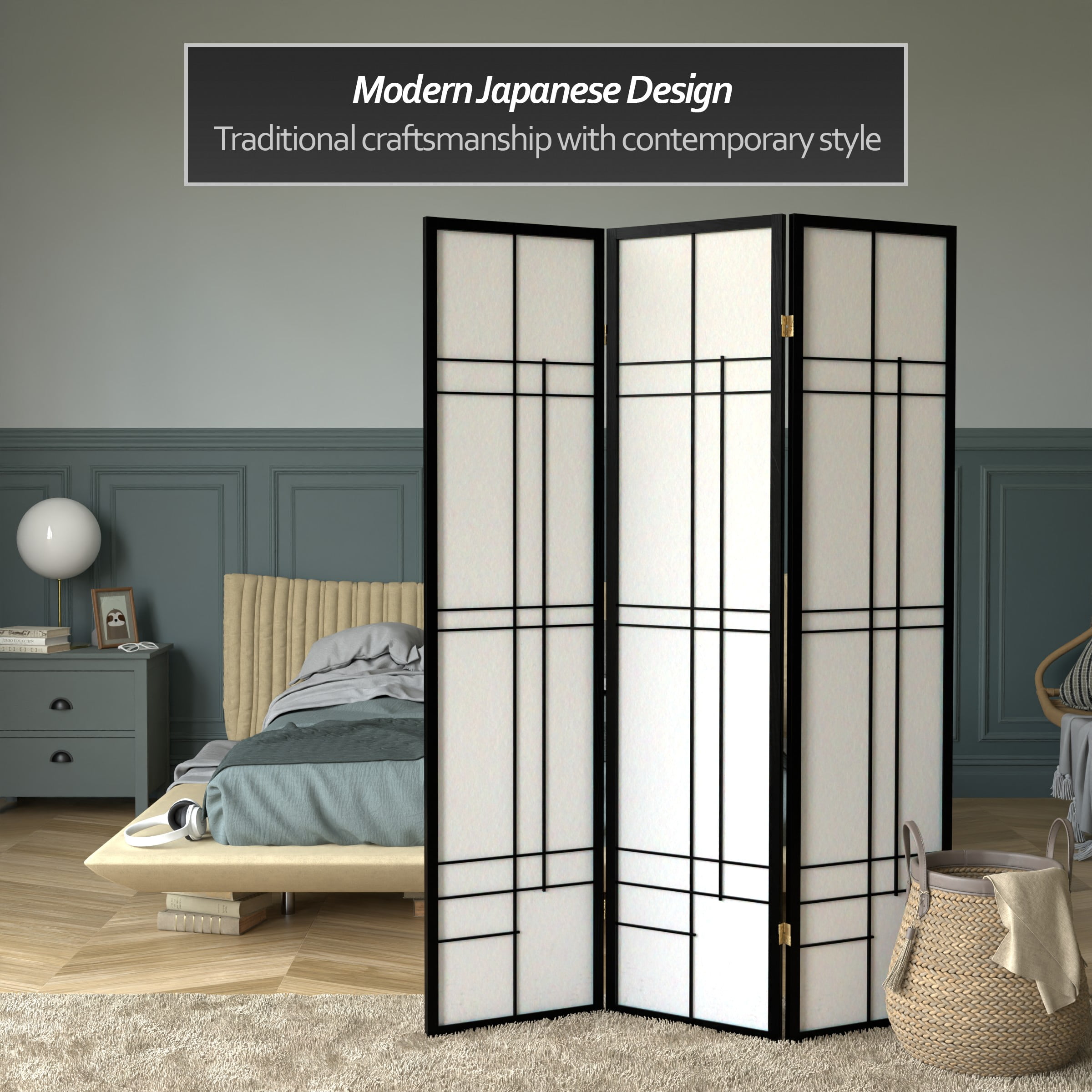 Red Lantern 6 ft. Tall Eudes Shoji Screen – Black – 3 Panels