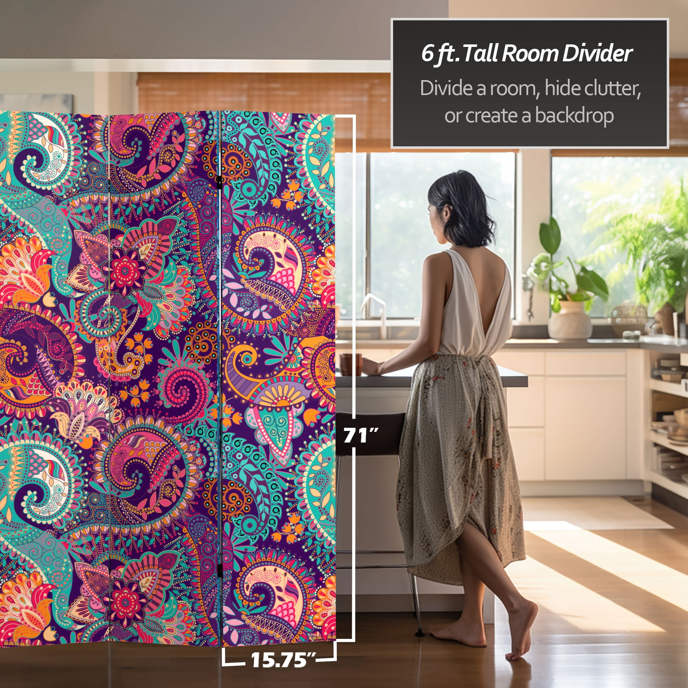 Oriental Furniture 6 ft. Tall Psychedelic Wallpaper Canvas Screen – 3 Panel