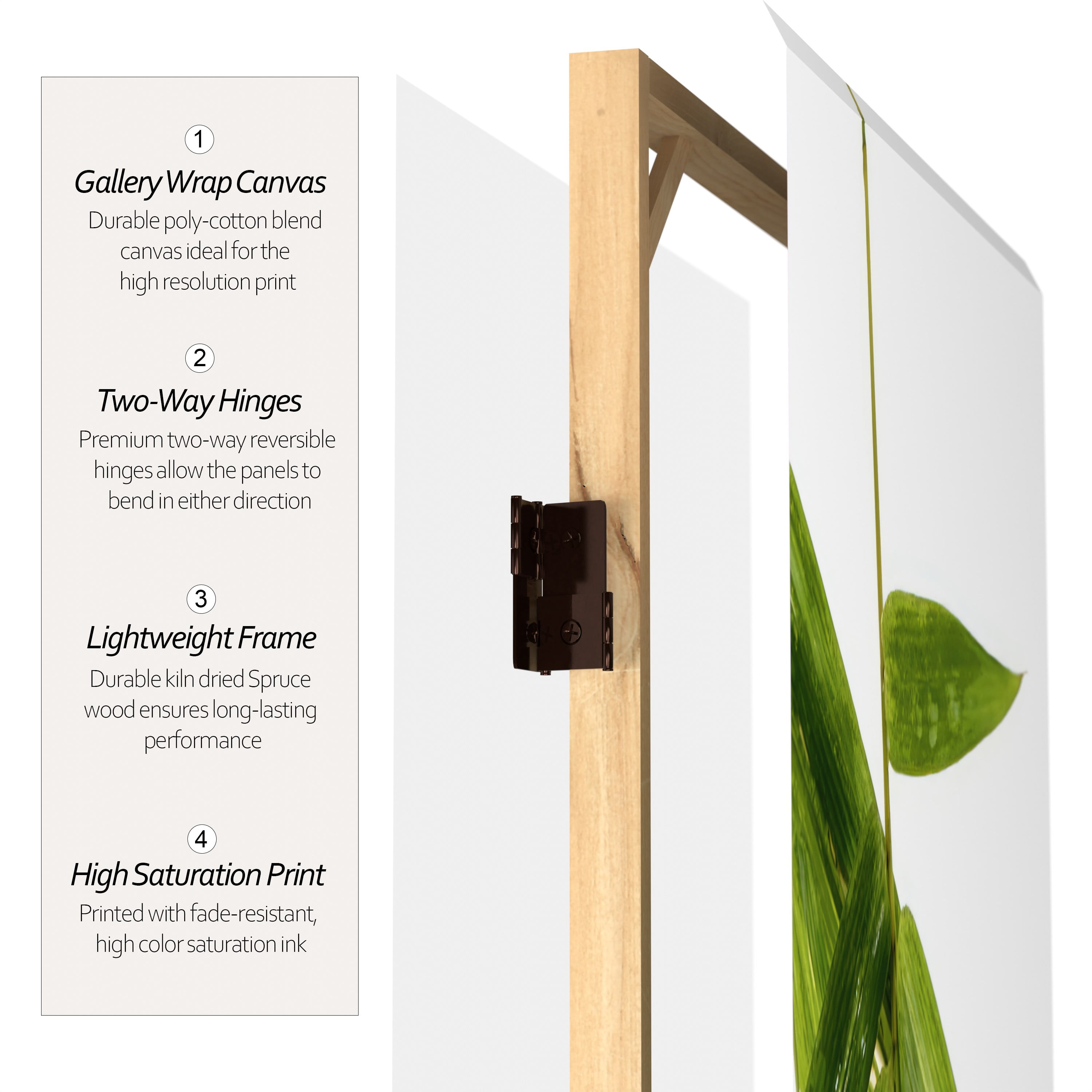 6′ Tall Double Sided Serenity Buddha Room Divider: Printed with high saturation ink to create a beautiful, long lasting image Primed canvas stretched over sturdy mitered wood frames Divide a space, define a cozy nook, shade sunlight or hide a messy area Color: multi Material: canvas, spruce wood