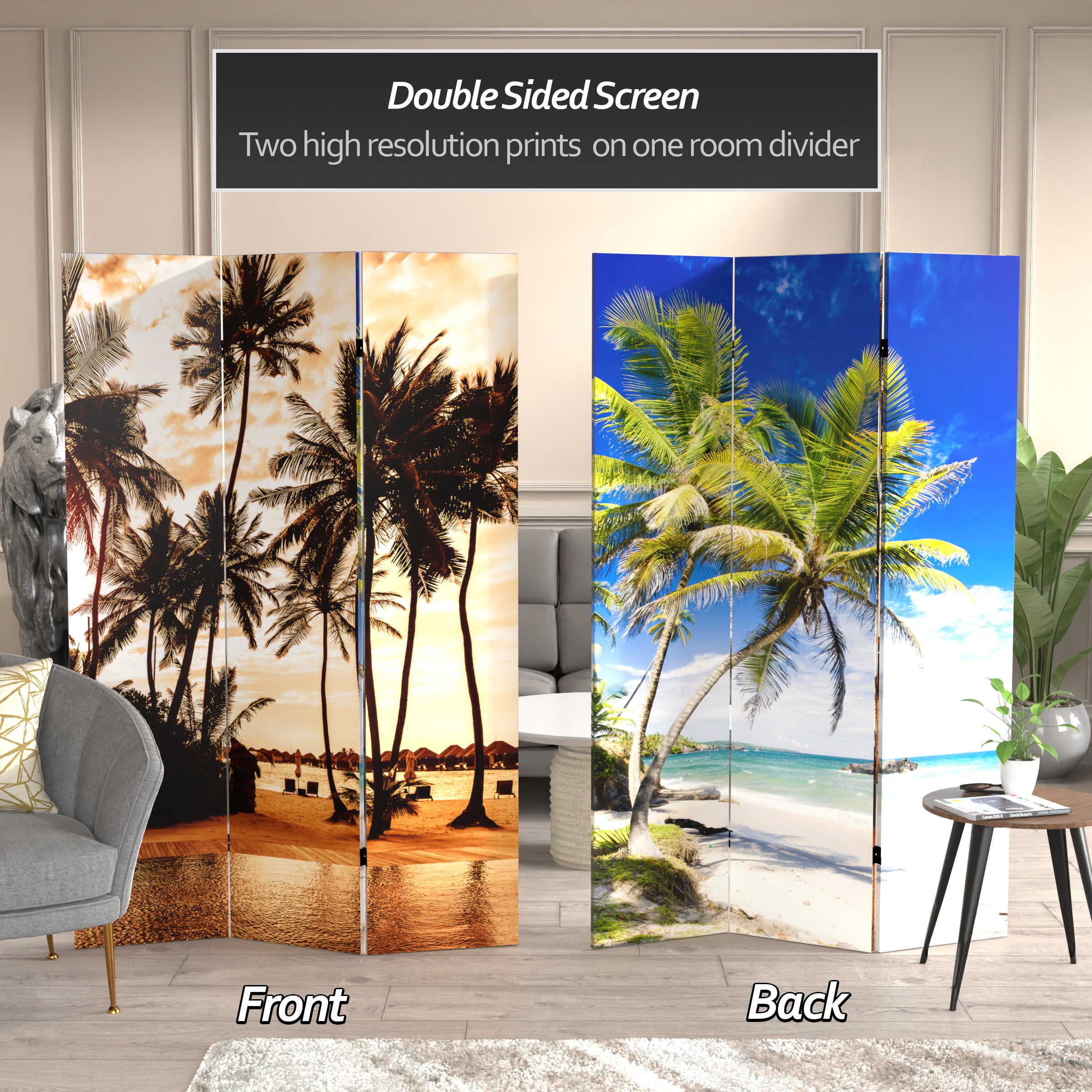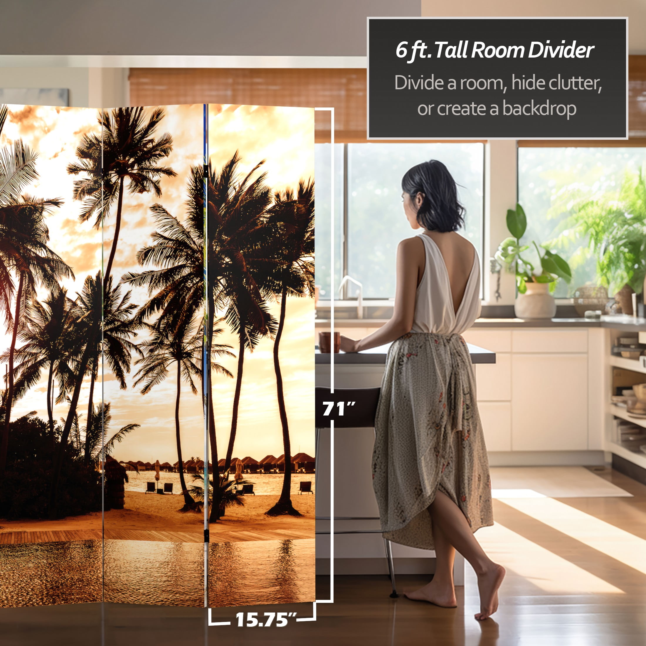 Oriental Furniture 6 ft. Tall Sunset Palms Canvas Room Divider – 3 Panel