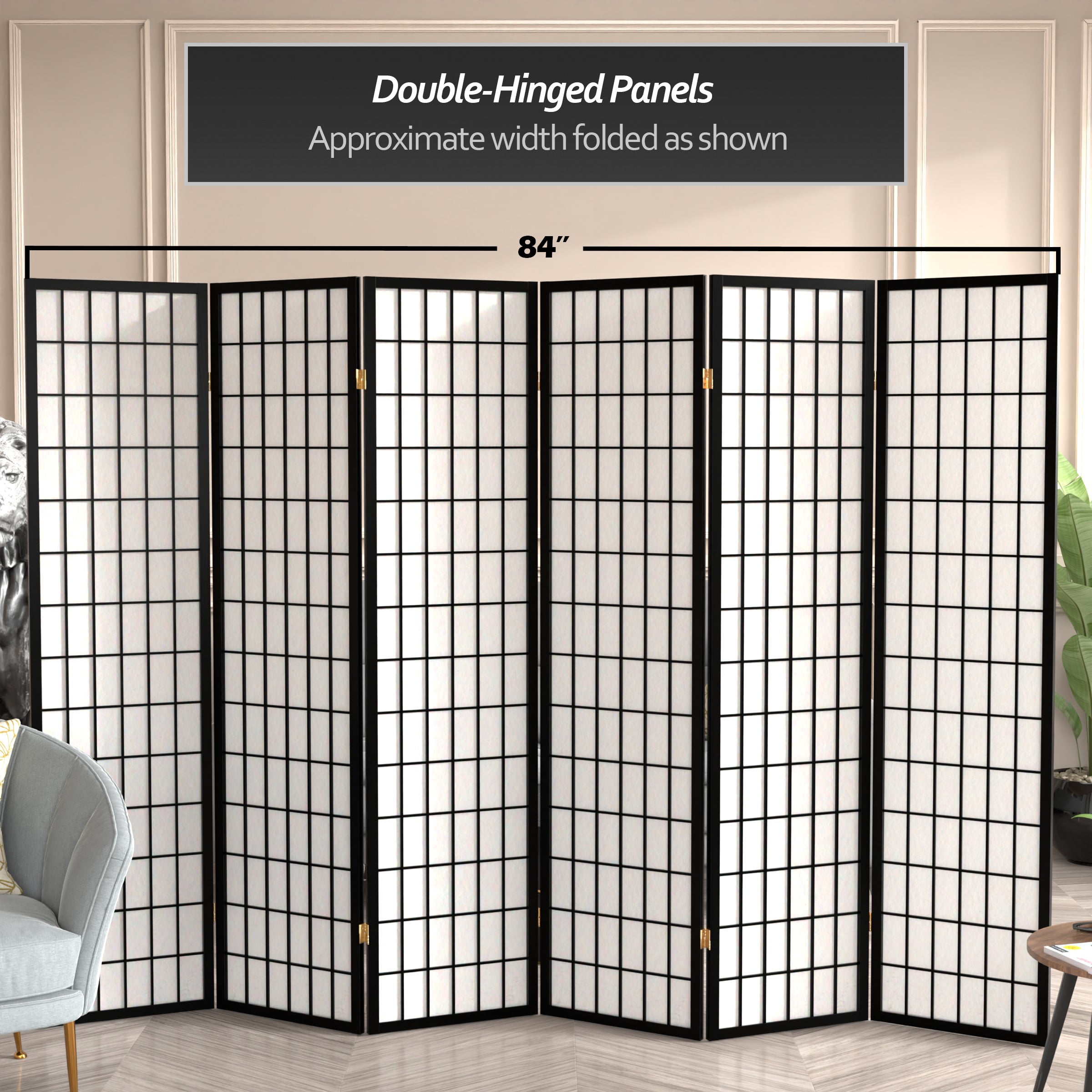 Red Lantern 6 ft. Tall Window Pane Shoji Screen – Black – 6 Panels