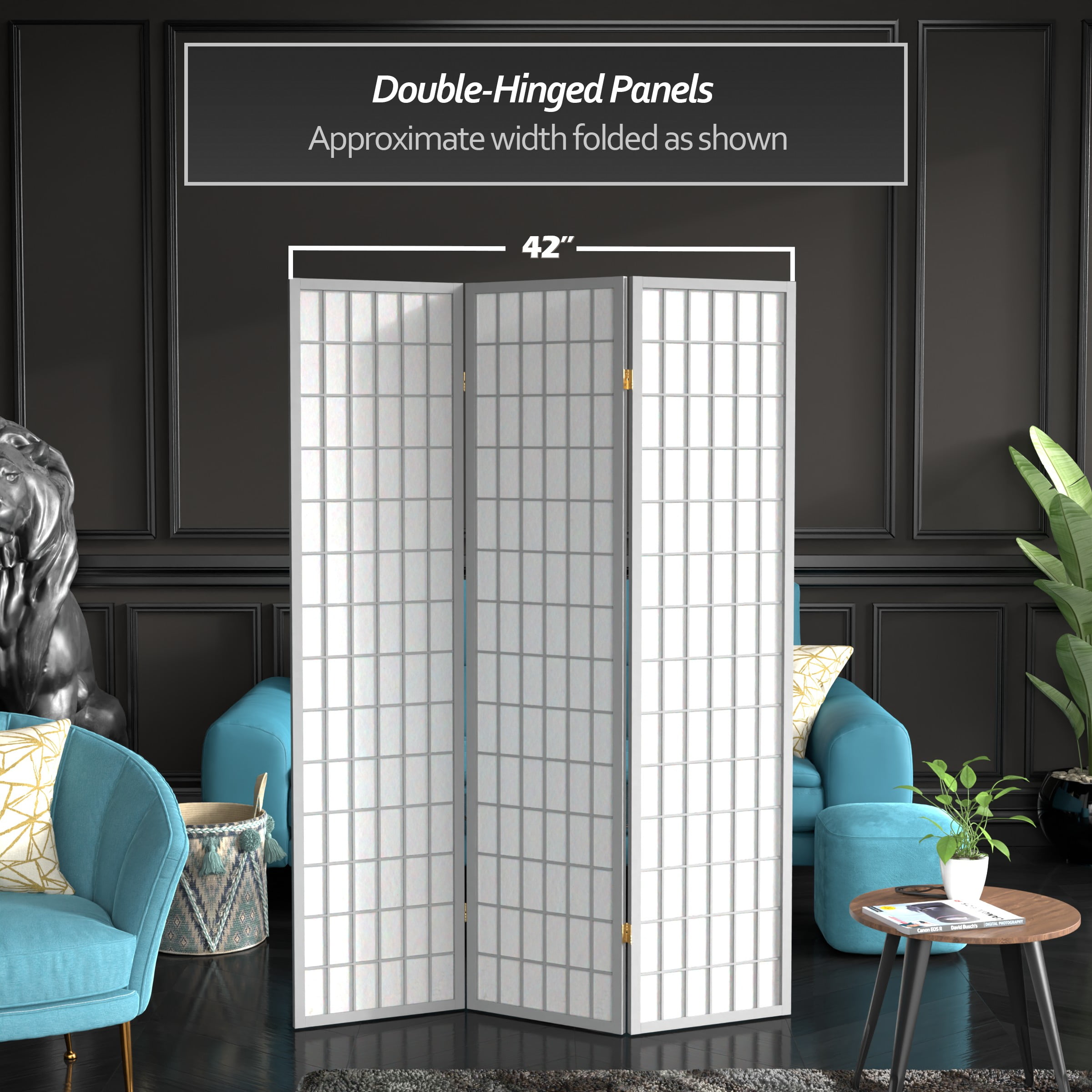 Red Lantern 6 ft. Tall Window Pane Shoji Screen – Grey – 3 Panels