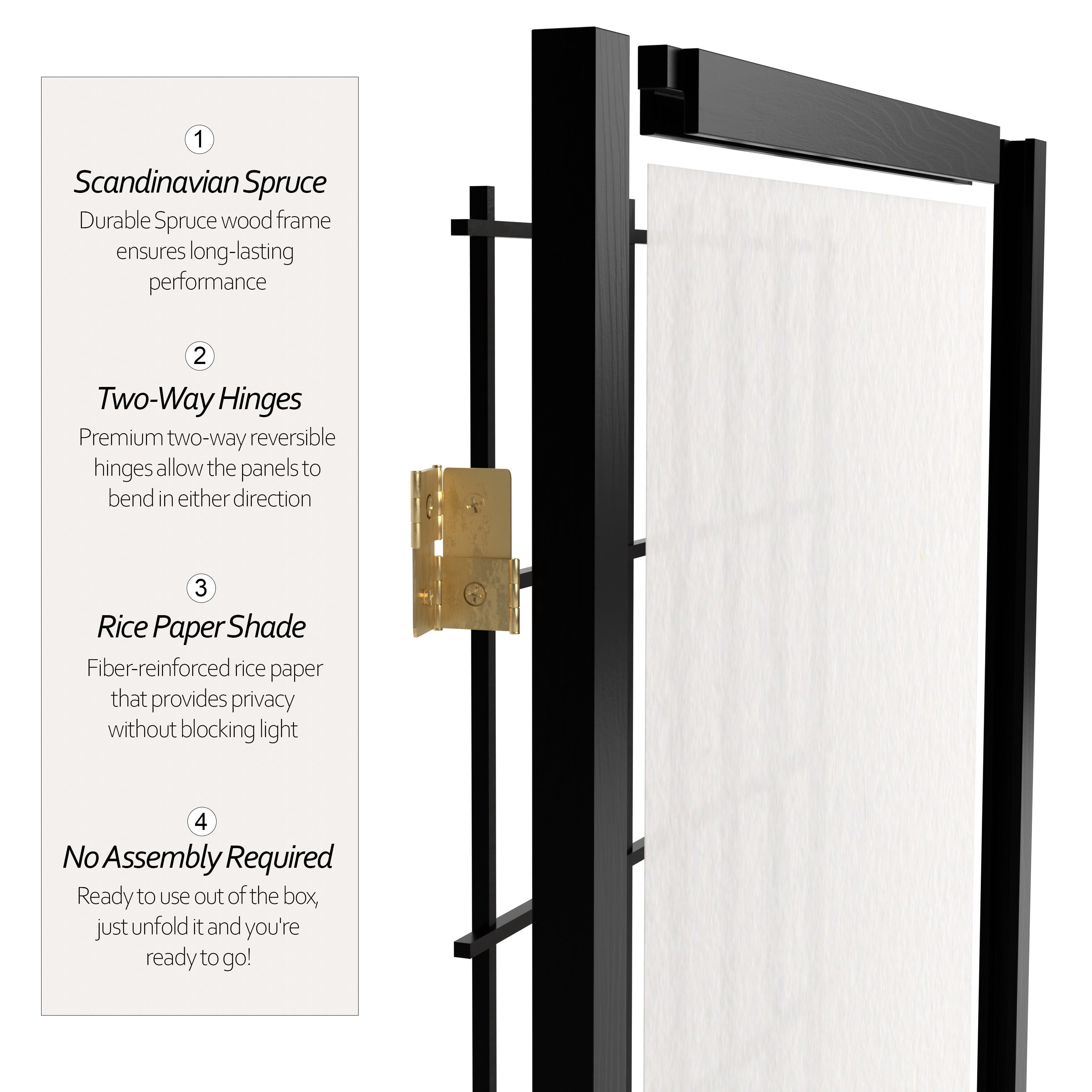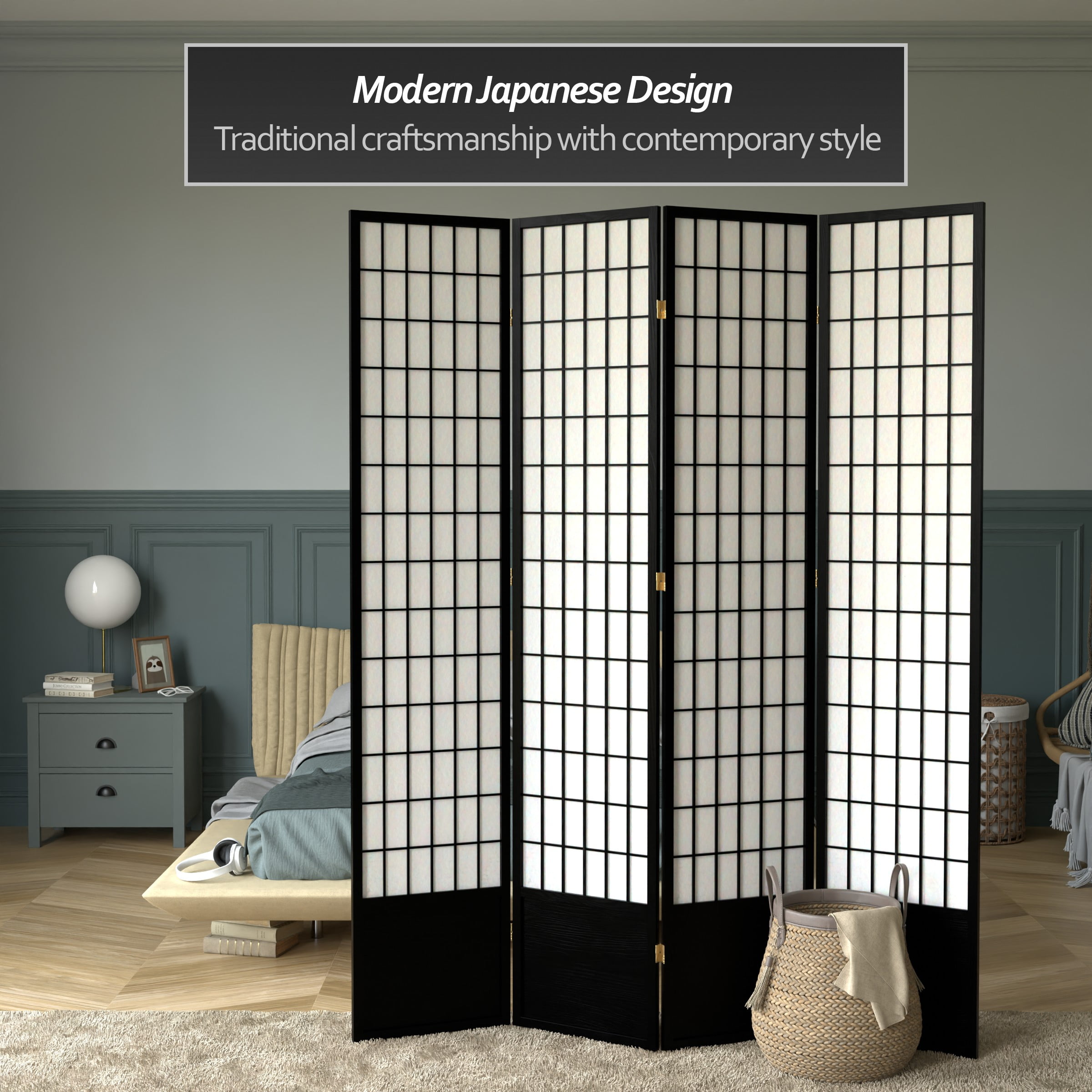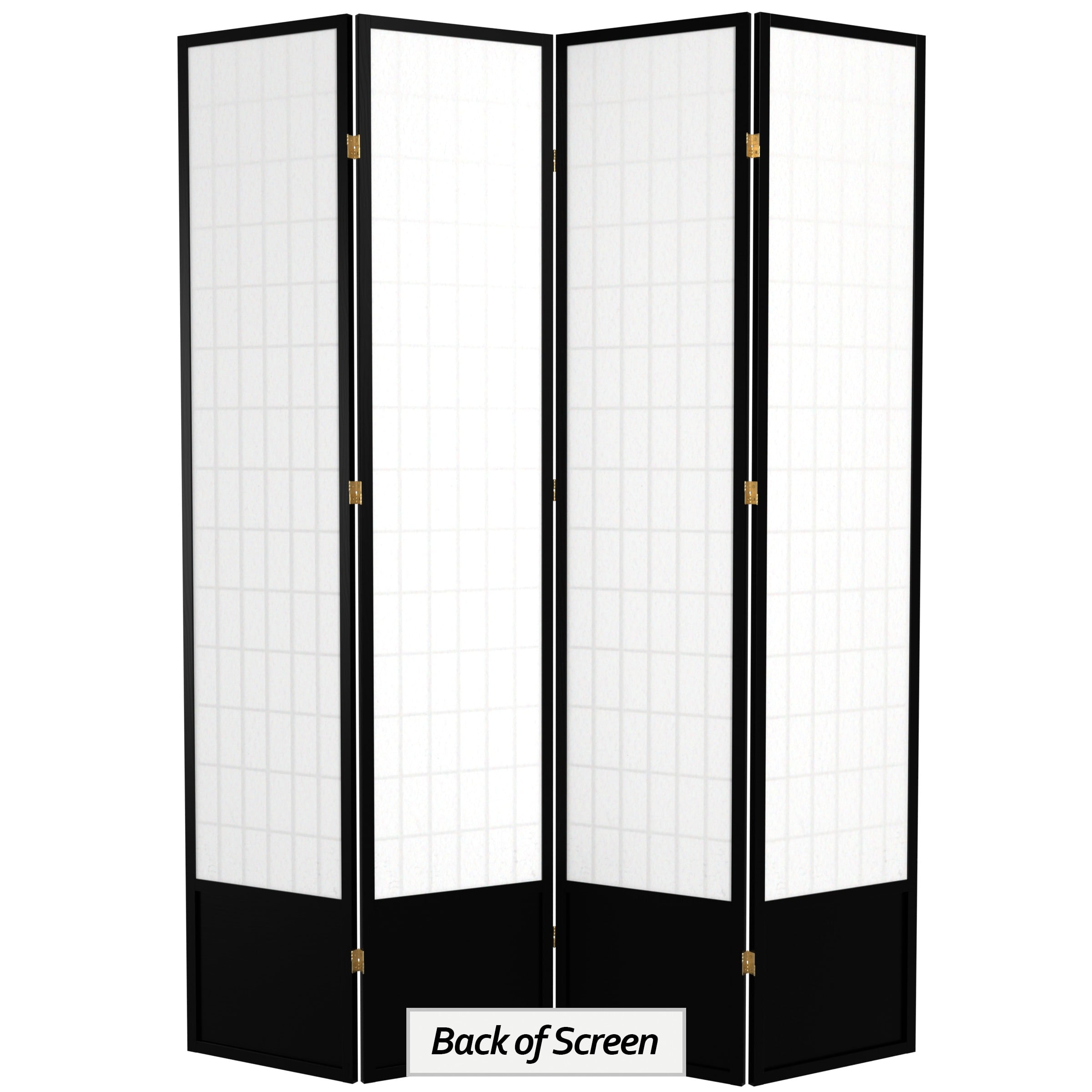 Red Lantern 7 ft. Tall Window Pane Shoji Screen – Black – 4 Panels