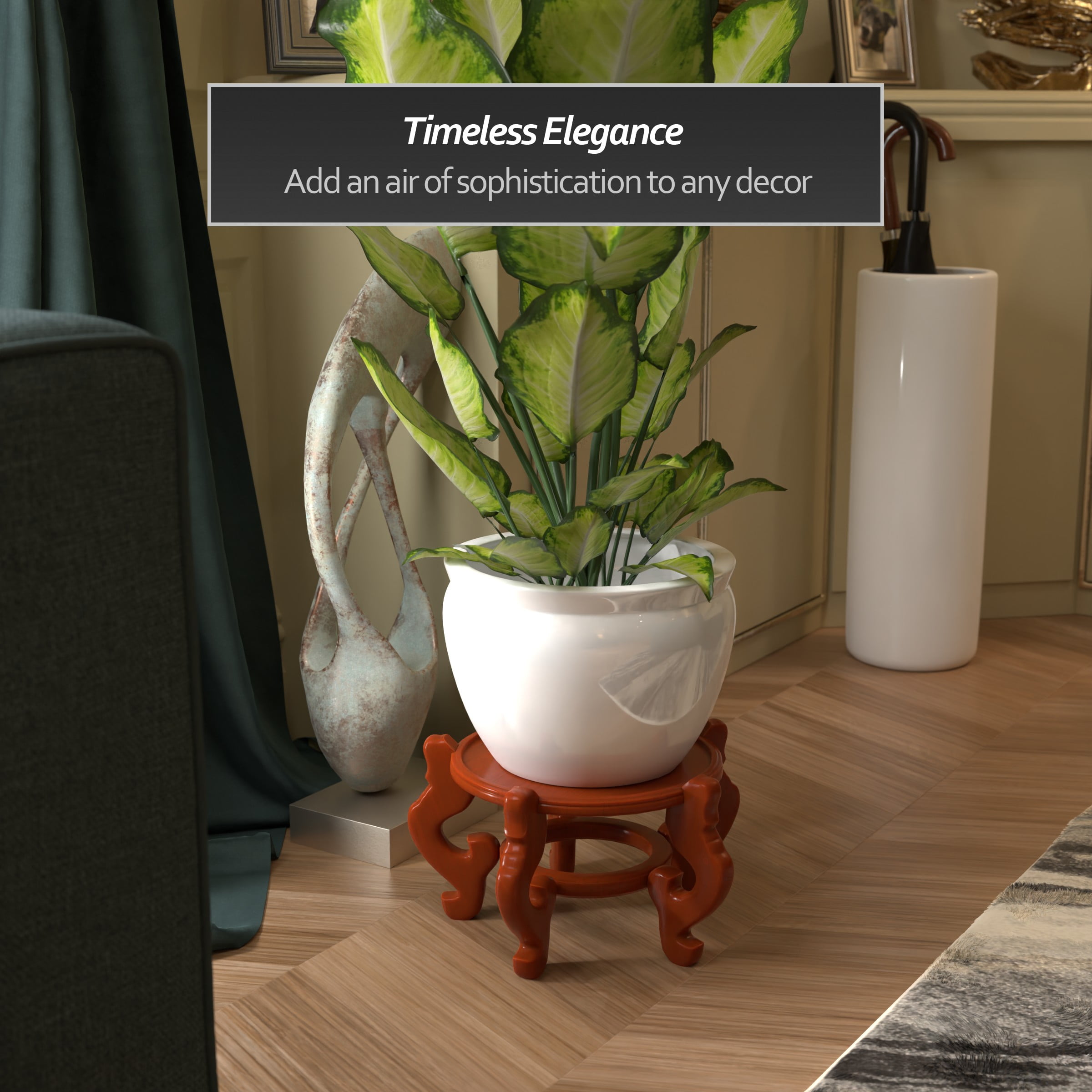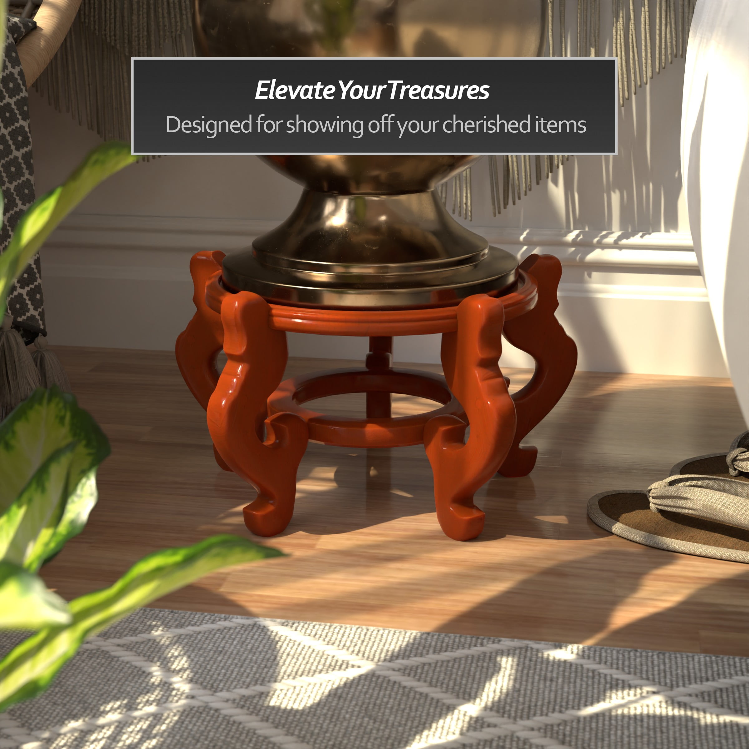 Rosewood Fishbowl Stand, Honey: Traditional Chinese fishbowl stand Rich honey finish Rests on 5 elegantly curved legs Color: honey Material: MDF