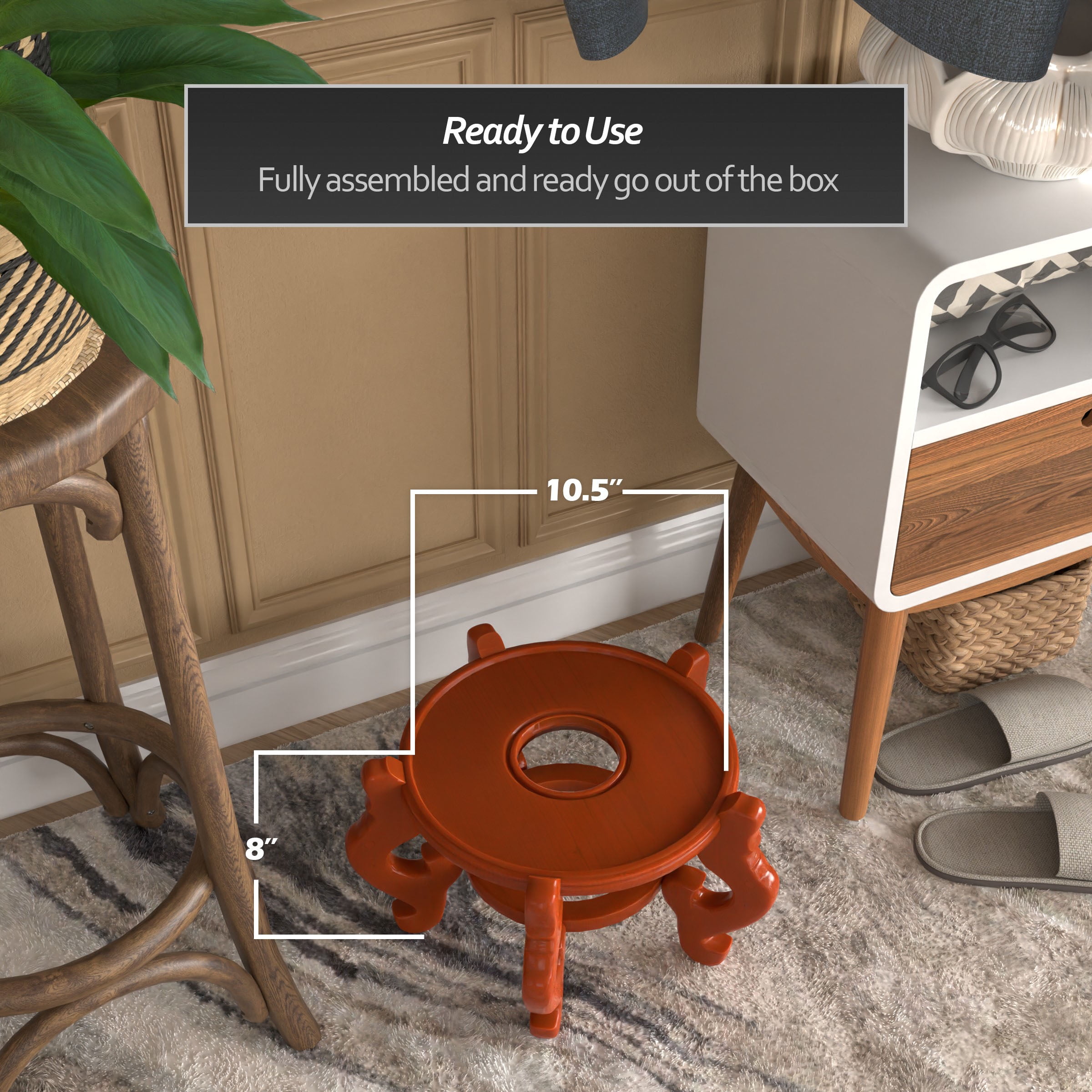 Red Lantern Fishbowl Stand – Honey – Size 10.5 in. Base Diameter