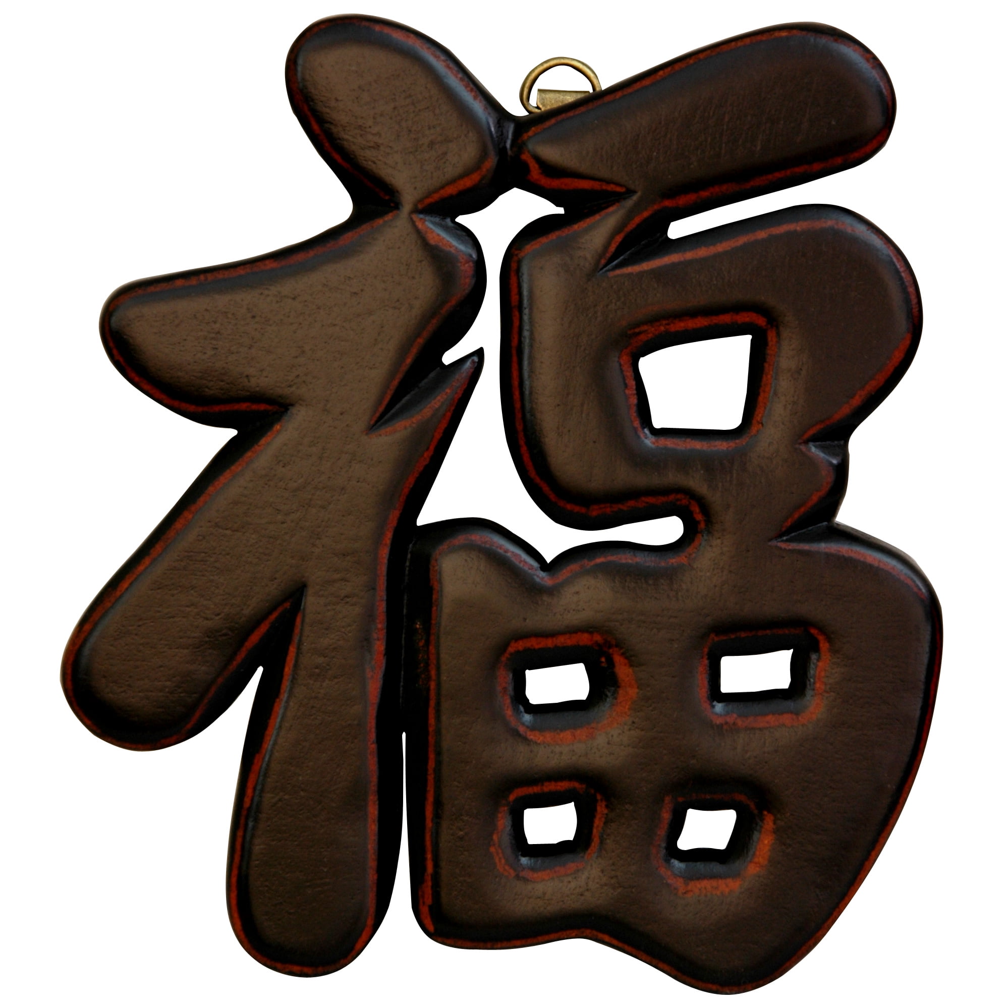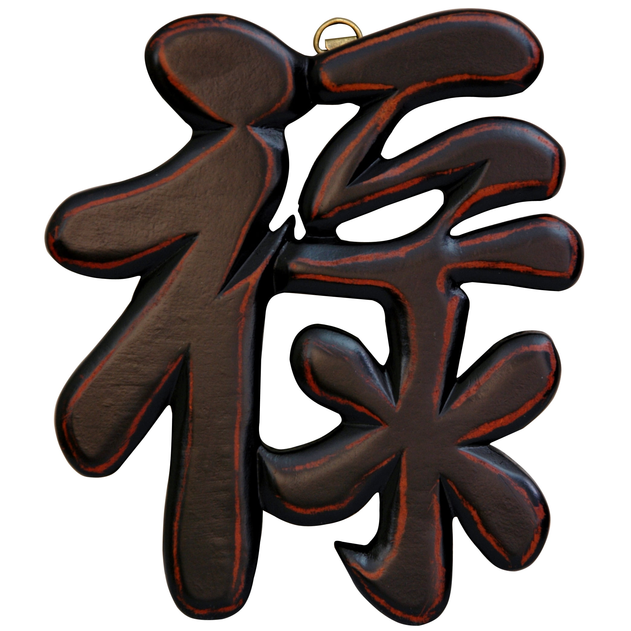 Set of 4 Wooden Symbols, Antique Black: Fine hand carved Rosewood decorative wall plaques Beautiful hand crafted, distressed black lacquer finish Each symbol expresses a blessing for the home or enterprises Color: black Material: wood