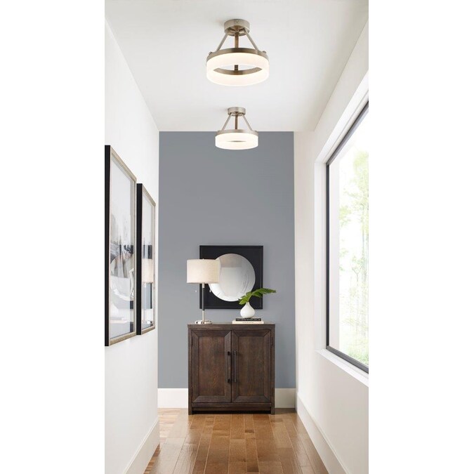 - Brushed nickel finish semi-flush mount ceiling light from the Lynnpark collection offers a modern a refined look
