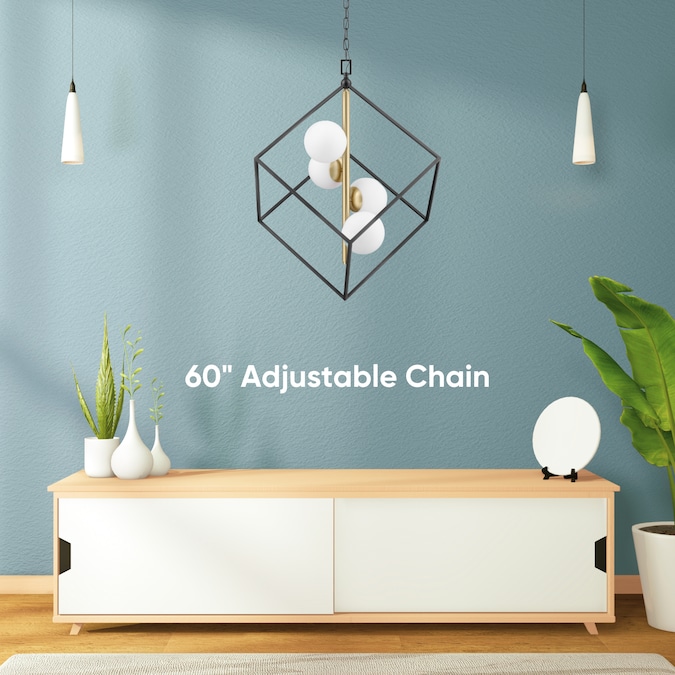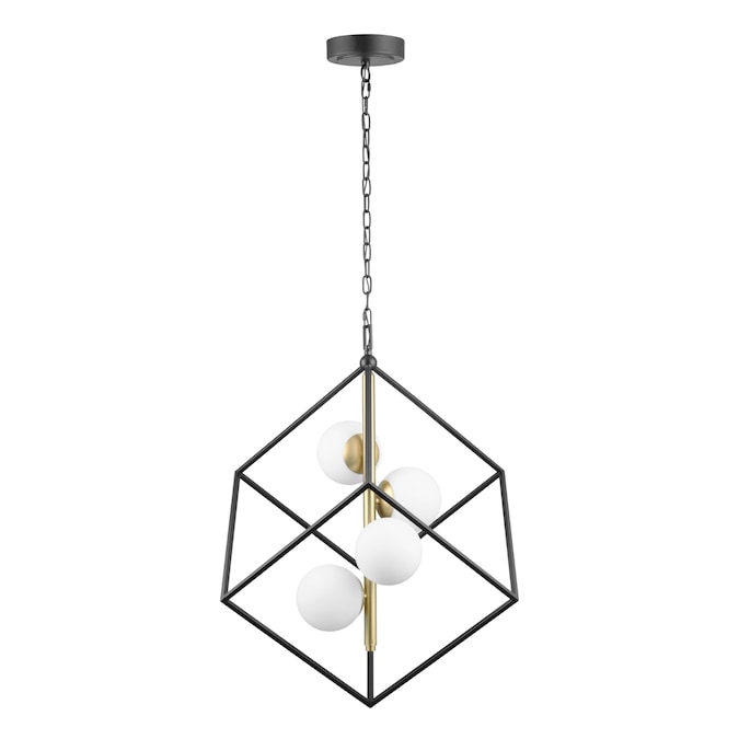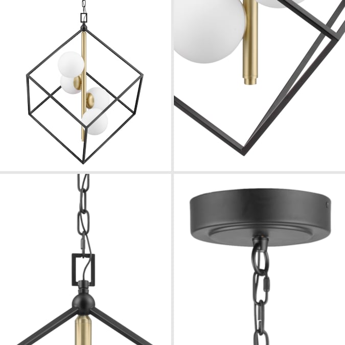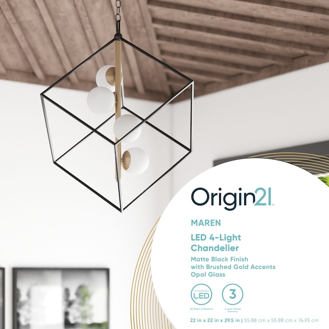 Add a sleek, yet dynamic look to your entryway, main living space or dining room with this modern chandelier from the Maren Collection. This LED chandelier features matte black framework with a touch of brushed gold, perfectly comlementing white opal shades.