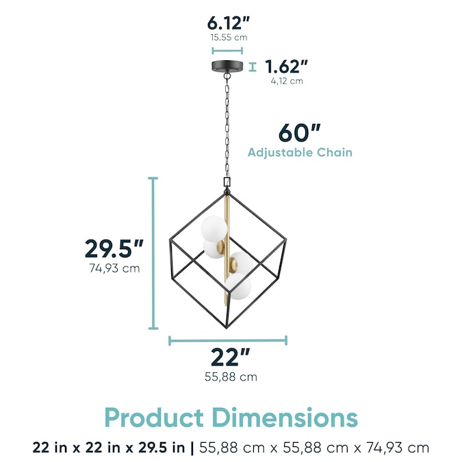 - Standard ceiling mount, 60″(5′) adjustable chain, 72″(6′) lead wire
