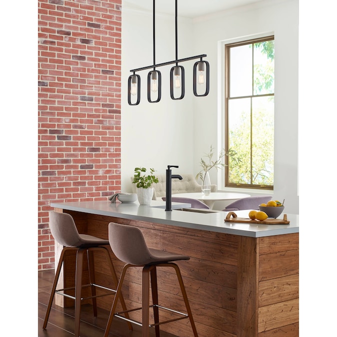 - Stunning matte black chandelier that creates an elevated focal point for your room