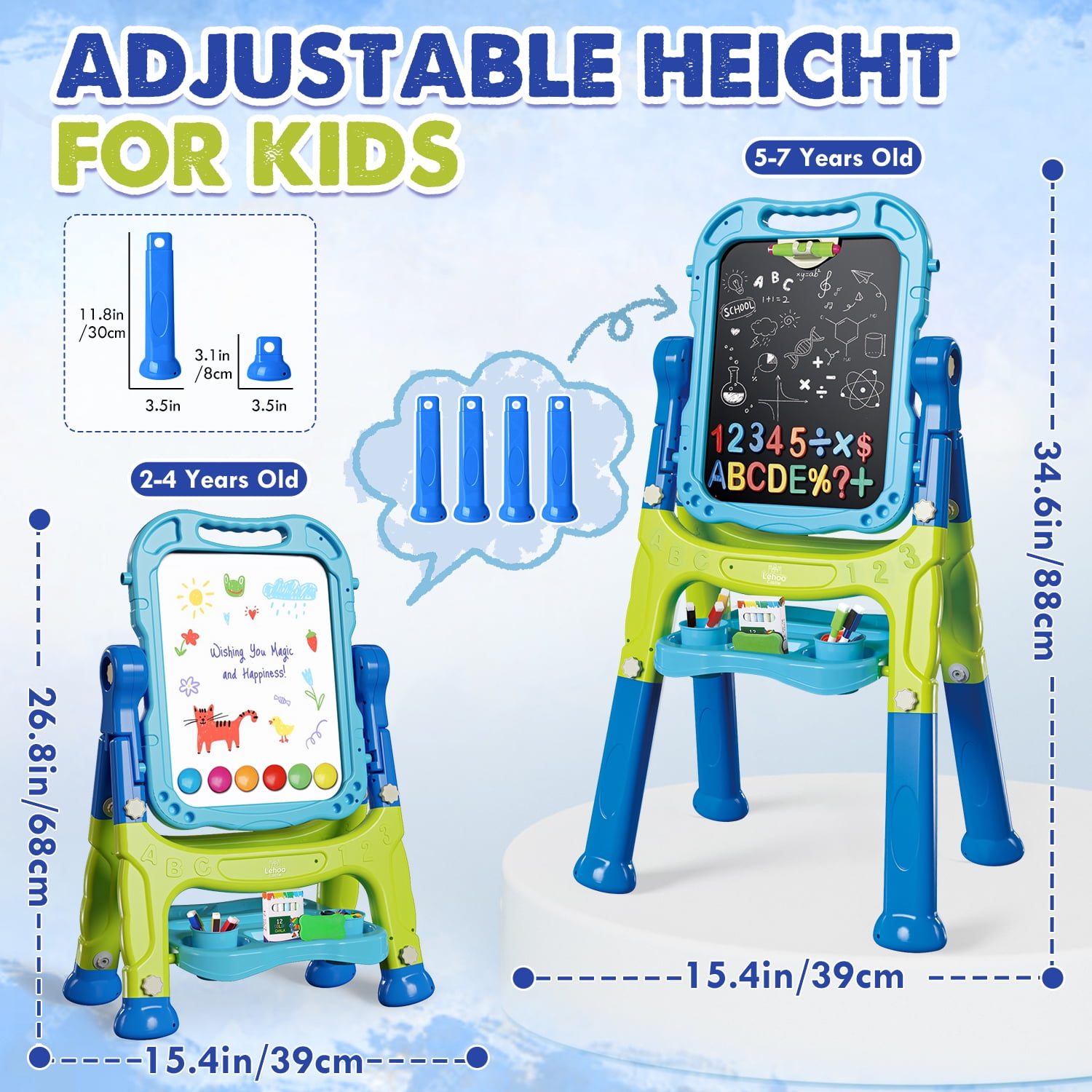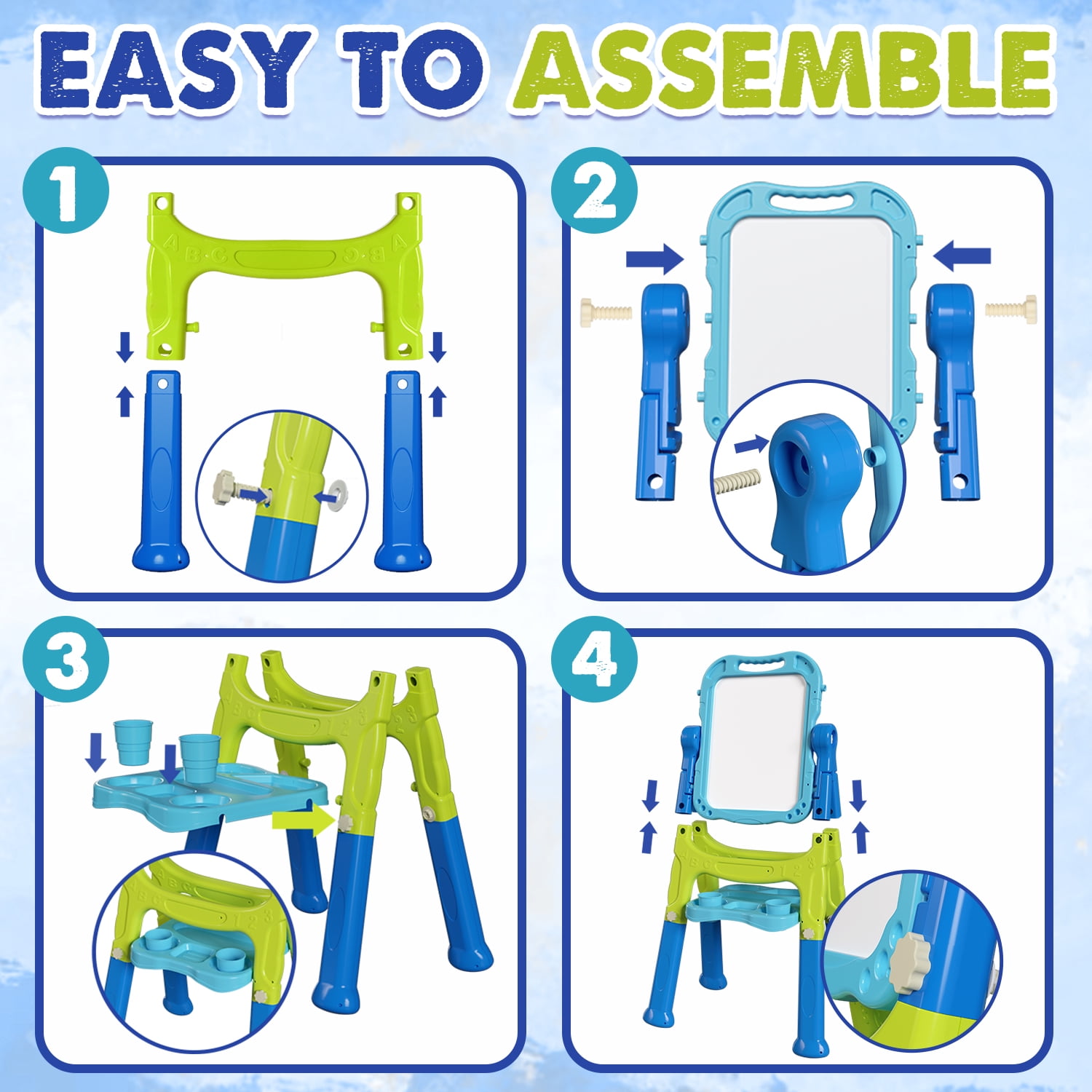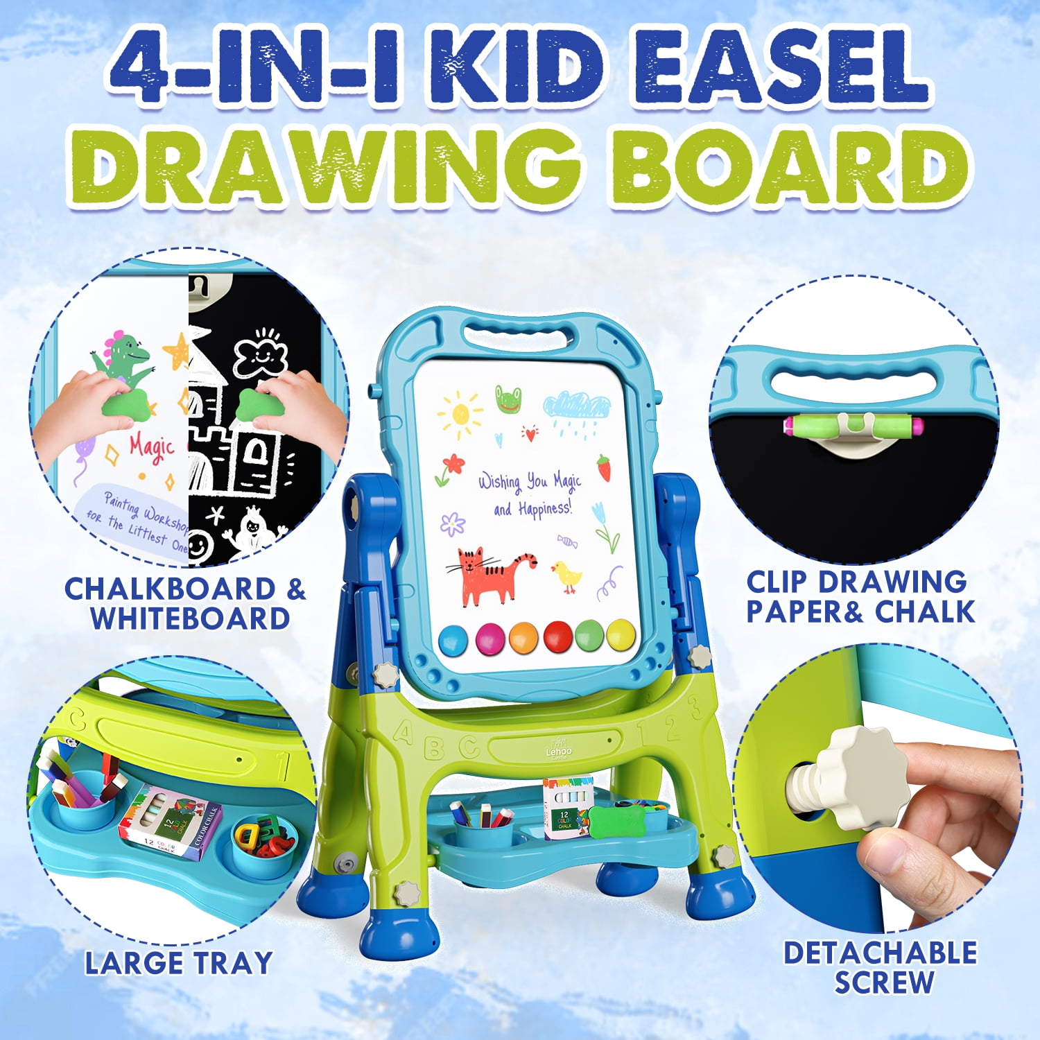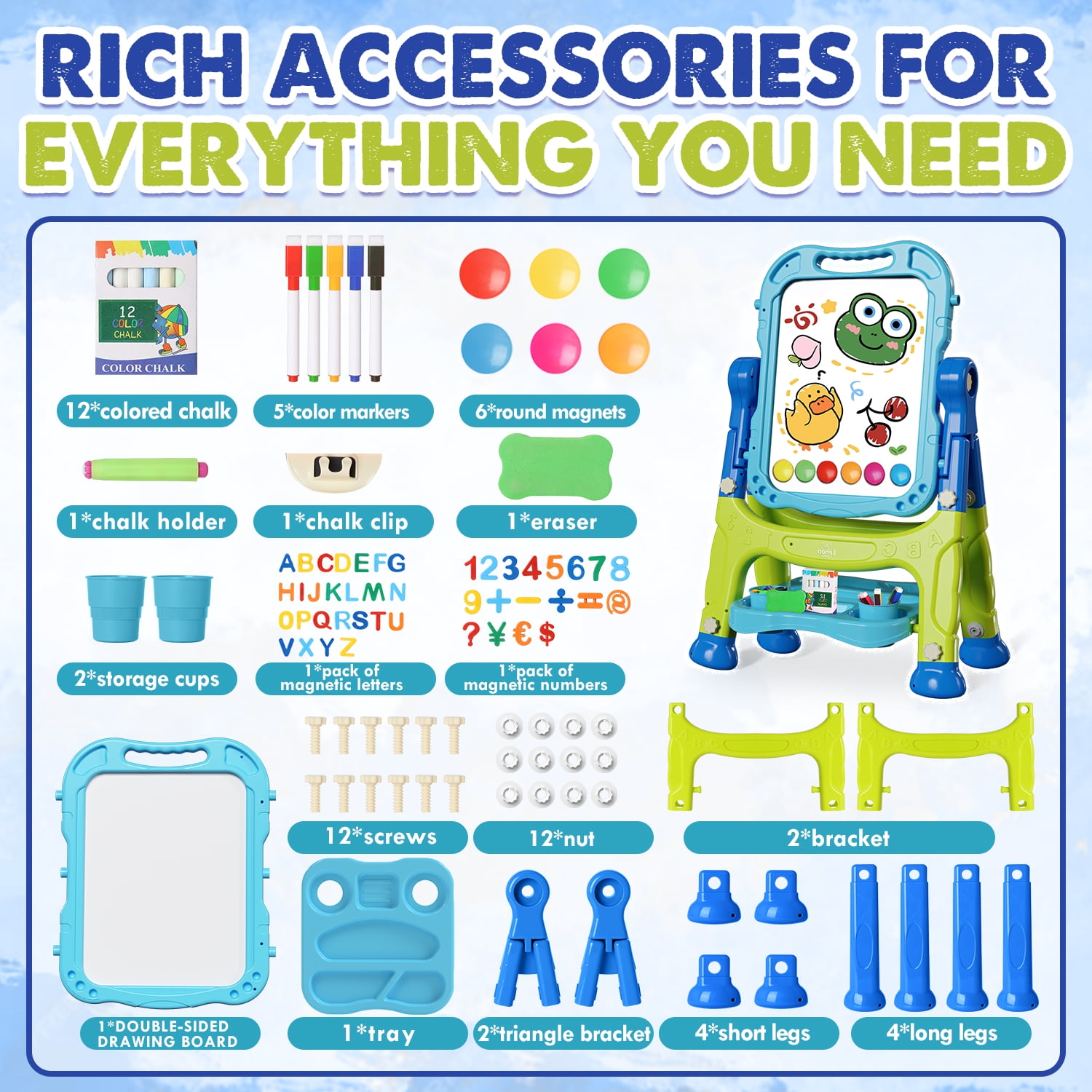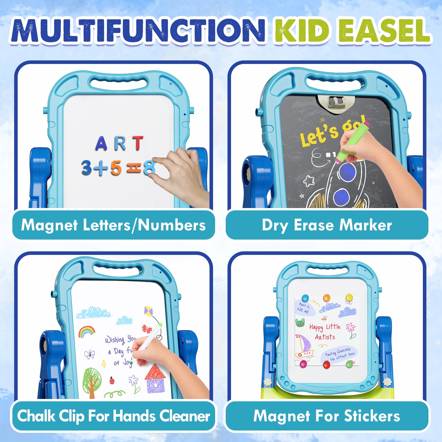 Easel for Kids,4 in 1 Double Sided Kids Art Easel Drawing Board with Painting Accessories – Blue