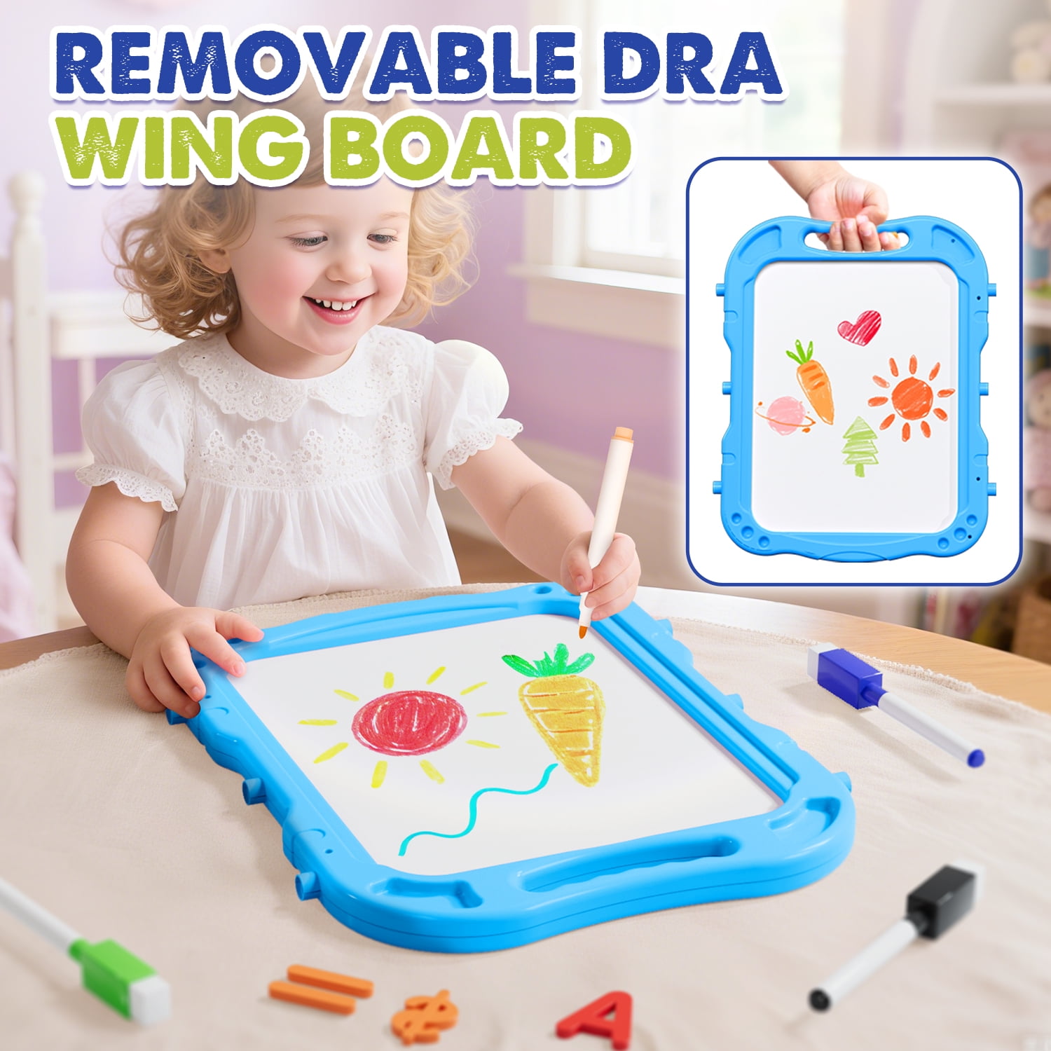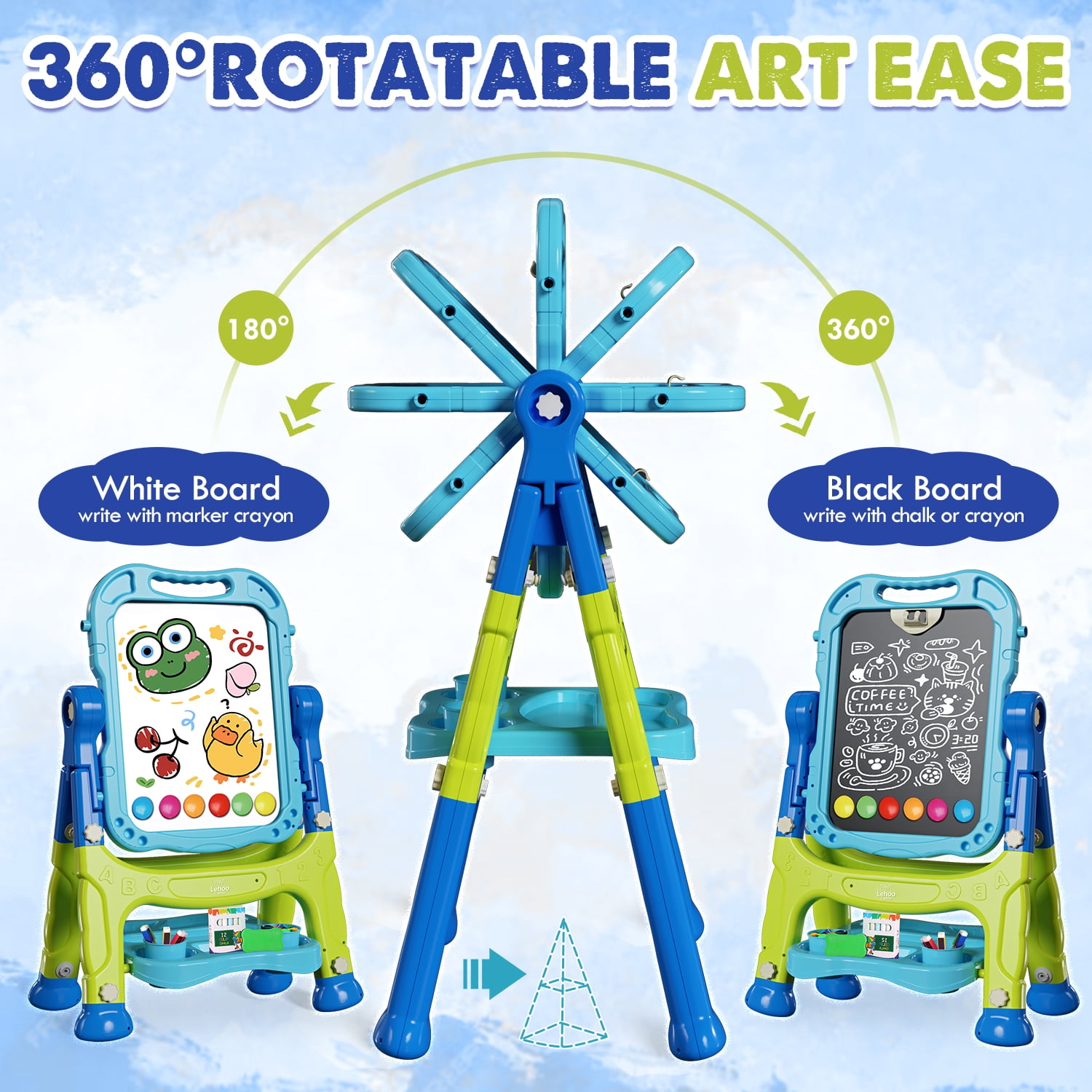 OROLIVING Drawing Board Plastic Double Sided Art Easels with Painting Accessories 360° DoubleSided Rotatable Enjoy double the creativity with a drawing board that effortlessly rotates 360 degrees, providing children with two distinct surfaces to explore their artistic talents Flexible Height Adjustment Accommodate children of all ages with adjustable height settings: 268″ (low) and 346″ (high), ensuring comfortable and ergonomic drawing sessions for growing artists Stable, Light & Portable Designed for convenience, this drawing board strikes the perfect balance between stability and portability, making it easy to set up anywhere and transport between rooms or even outdoors Positive Gift for Kids Inspire creativity and learning with a thoughtful gift that encourages artistic expression, problemsolving skills, and imaginative play, fostering positive development in children OneStop Easel With both a whiteboard and a chalkboard surface, this drawing board serves as a versatile easel, providing children with diverse mediums for their artistic endeavors all in one convenient package Durable Construction Crafted from highquality materials, this drawing board is built to withstand the rigors of children’s play while maintaining its stability and functionality over time