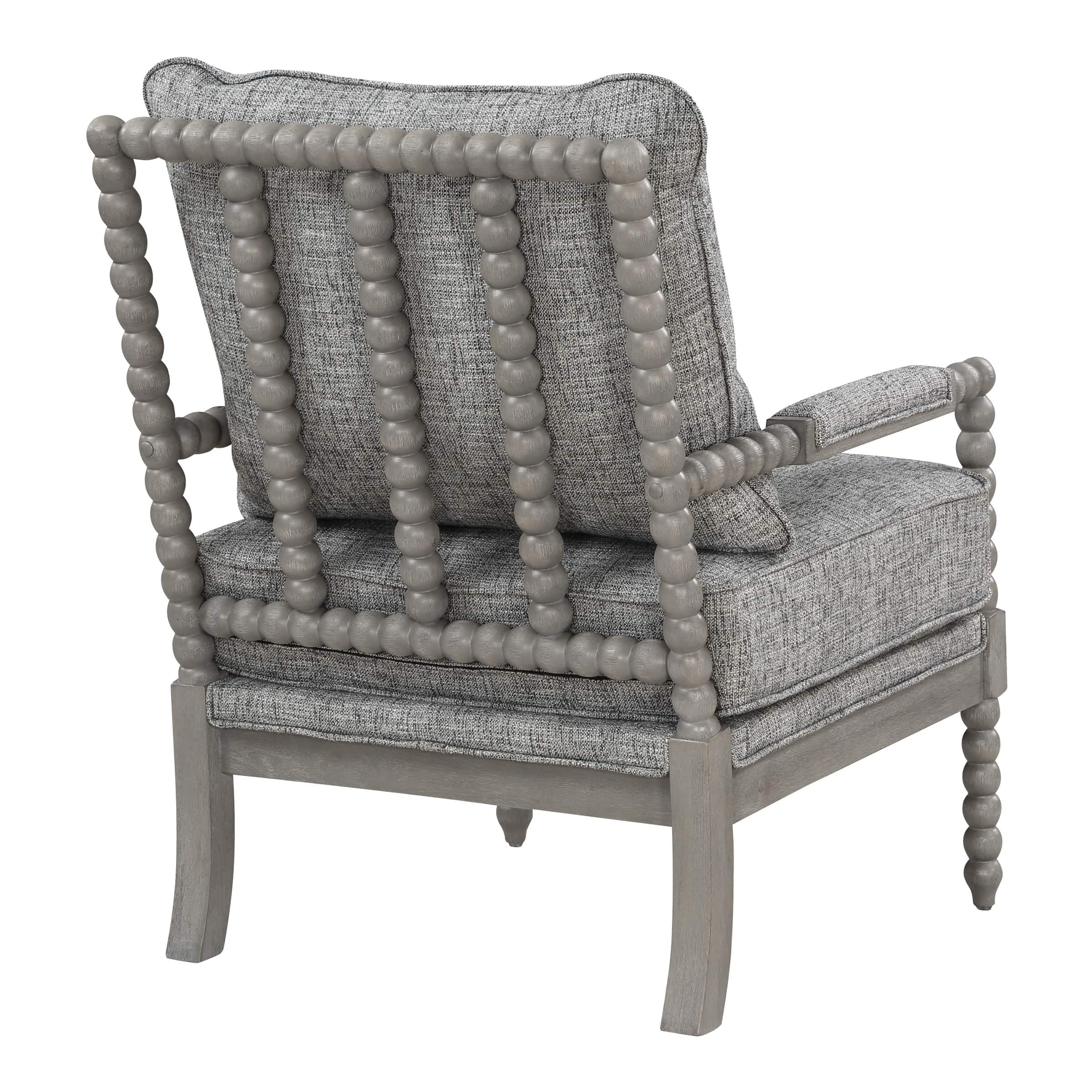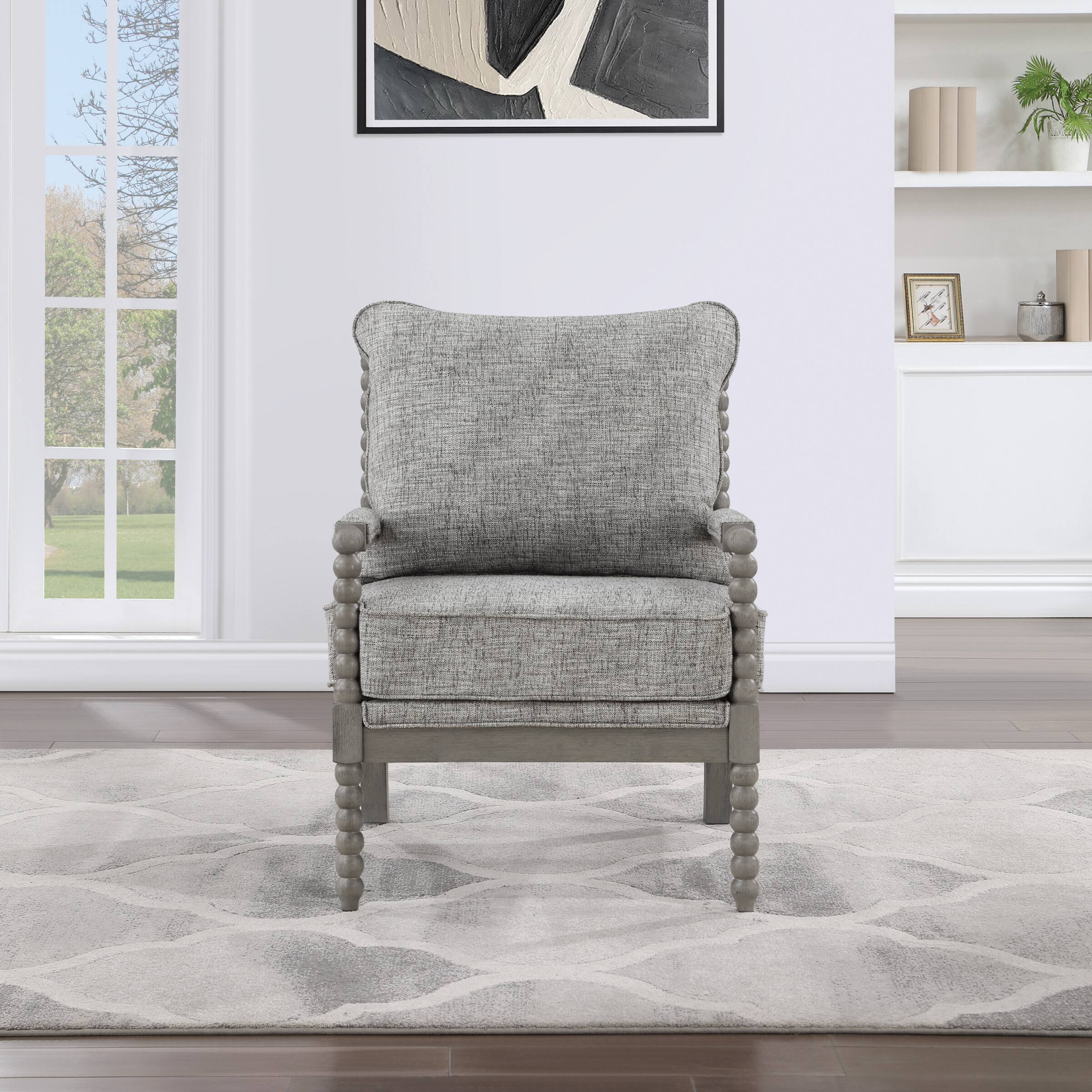 The Abbott Chair transforms the living room with a chic farmhouse design. The chair is characterized by its turned spindle detailing, padded armrests, and distressed wire brush finish. Blending a hardwood frame with a reversible plush seat, the Abbott is perfect for those cozy moments at home.