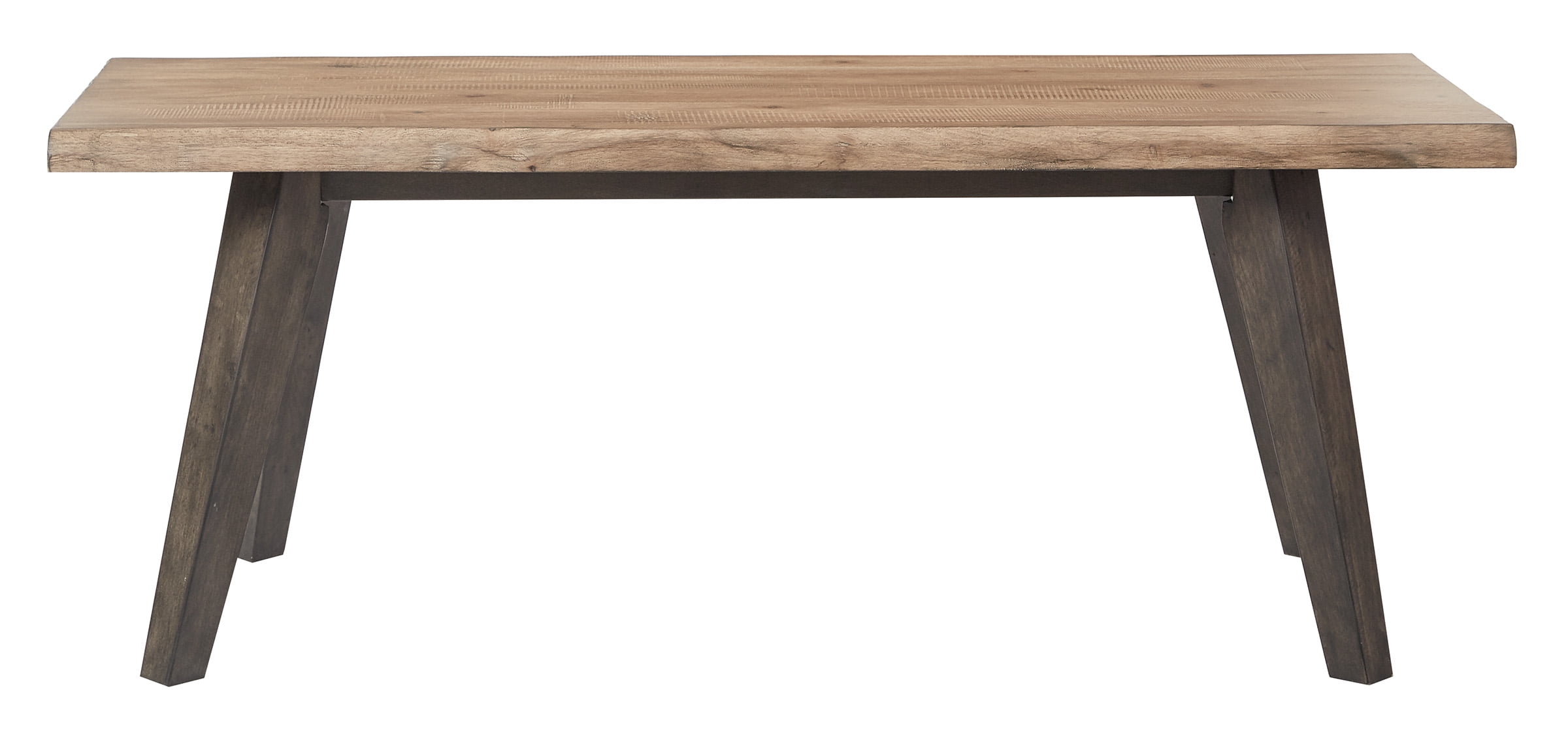Add extra seating in your dining room with this live edge style wood bench. A modern look that works with a variety of decor. Pair with a dining table and a mix of chairs for a unique look. Solid acacia wood legs support a beautiful wood veneer bench top with a rustic sand finish. Get the live edge look at a fraction of the price with the OSP Designs Oakridge Dining Bench.