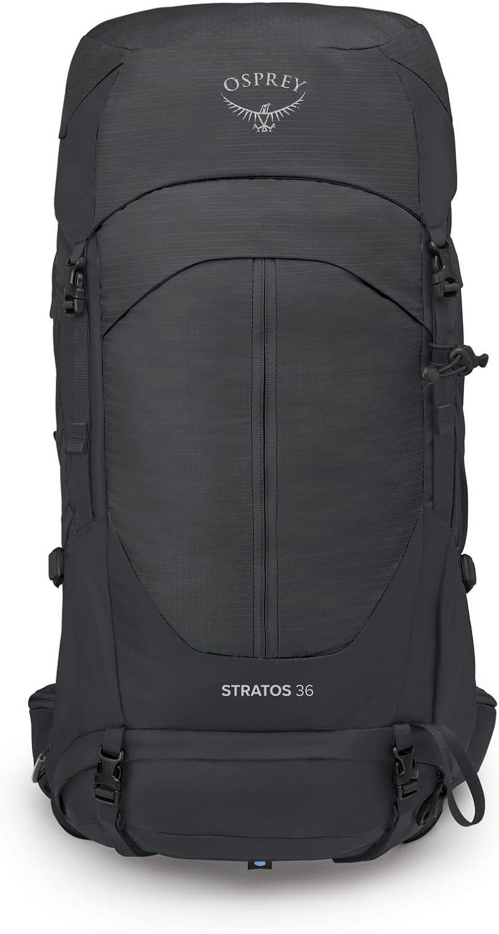 When day hikes stretch out into more committing endeavors the Stratos 36 is the perfect size for your essentials and then some. Its top-loading design topped by a fixed top lid helps make packing a breeze. Plus with its highly ventilated AirSpeed suspensions system and just enough volume to empower your bigger pursuits it inspires long days and lightweight nights exploring our more rugged trails rain or shine. Made with 100% recycled materials. Included raincover made with PFC/PFAS-free DWR and bluesign approved materials. Zippered front stash pocket. Dual zippered hipbelt pockets. Side stretch mesh bottle pockets. Internal hydration sleeve with hose port in backpanel. Stow-on-the-Go trekking pole attachment with new soft-touch tubes. Dual side compression straps. Single ice axe loop with bungee tie-offs. Front panel lash loops for attaching extra gear. Top loading design with a secure drawcord closure. Fixed top lid with large main compartment and underlid zippered mesh pocket with key clip. Hidden vertical side zip access into main compartment for quick access to contents. Zippered access lower compartment with a floating liner keeps contents organized and accessible. Accessory straps on lower front panel are perfect for pads or blankets.