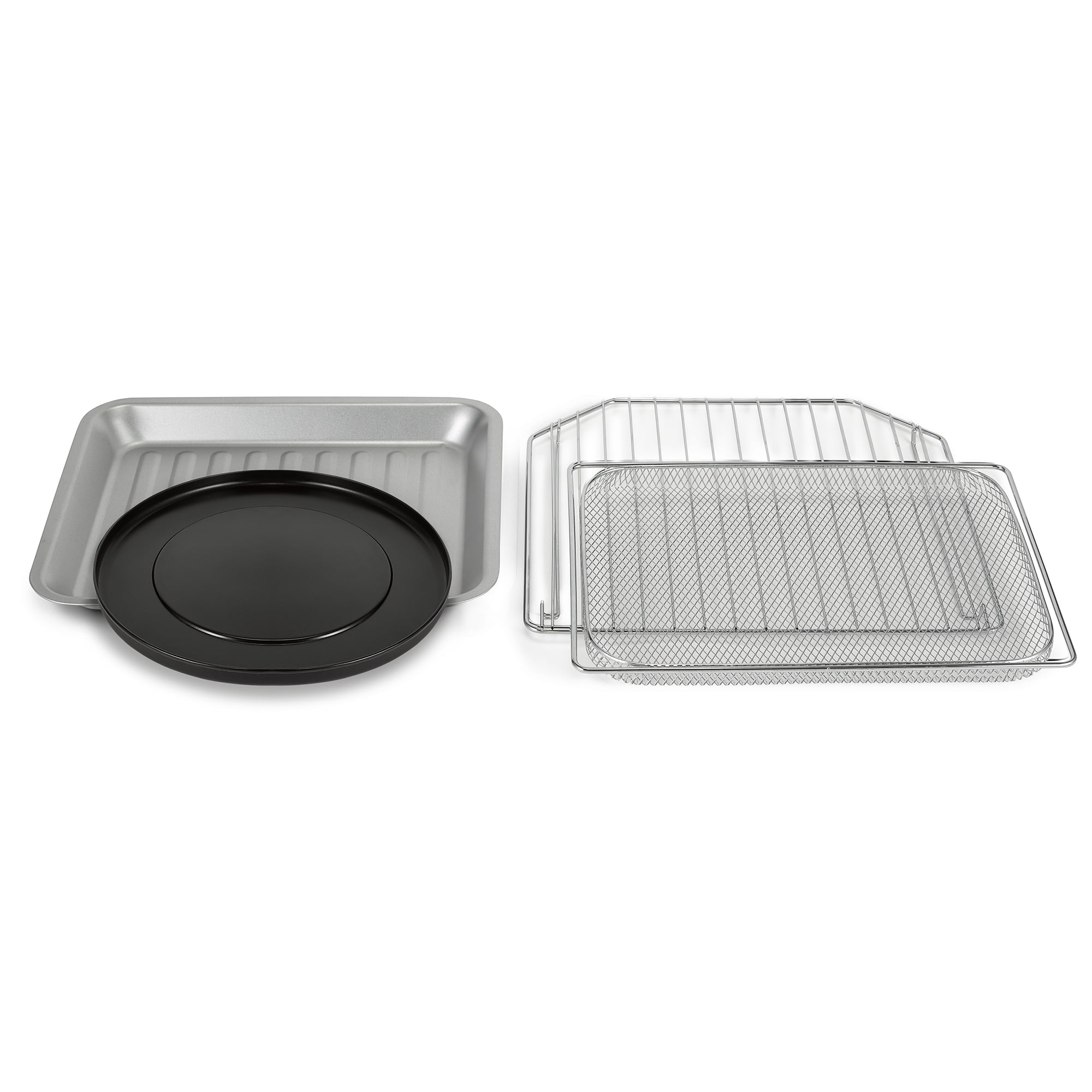 Toaster oven features toasting, baking, and broiling capabilities within the extra-large interior Conveniently open both French oven doors with a 1 hand single-door pull Turbo convection baking and adjustable temperature accelerate cook time and allow for a more even browning Automatic 60-minute shutoff timer will make sure nothing gets overcooked Experience flexibility with 2 oven-baking racks Extra-large interior can fit 2 large take-and-bake pizzas Easily removable racks and crumb trays make for simple, time-saving cleaning Material: Stainless Steel Color: Black Dimensions (L x W x H): 19.29 x 21.65 x 12.91 inches Weight: 22.04 pounds