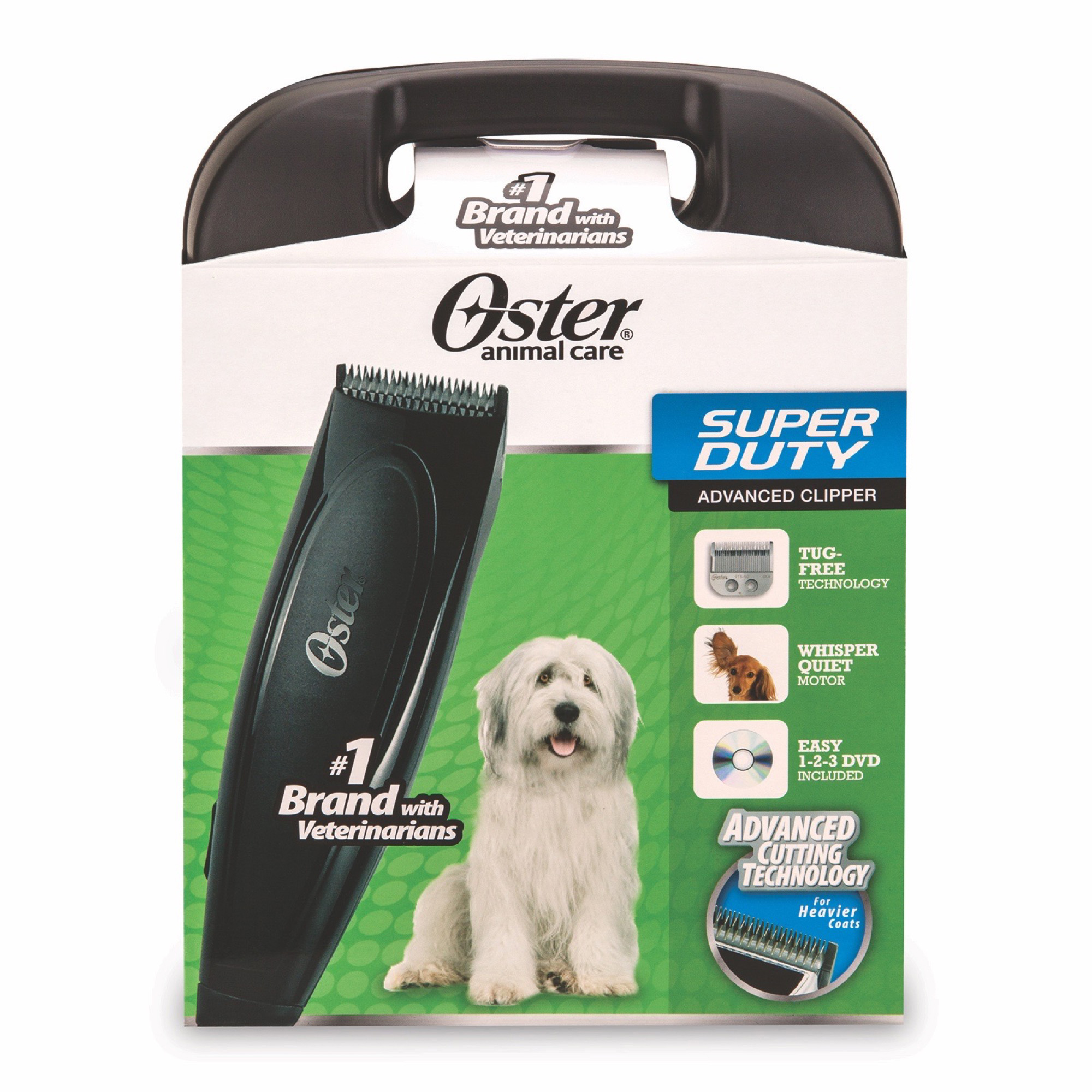 These Oster super heavy-duty advanced pet clippers feature a powerful pivot-motor design as well as tug-free technology for your dog’s comfort These dog clippers also feature a whisper-quiet motor to help your pet stay calm during grooming Clippers are effective on all coat types, even heavily matted fur This complete kit comes with clippers, a cleaning brush, lubricating oil to extend the life of the clippers, four preset safety comb attachments, and a durable storage case Also includes a 1-2-3- grooming DVD to help you learn the best grooming technique for your pet