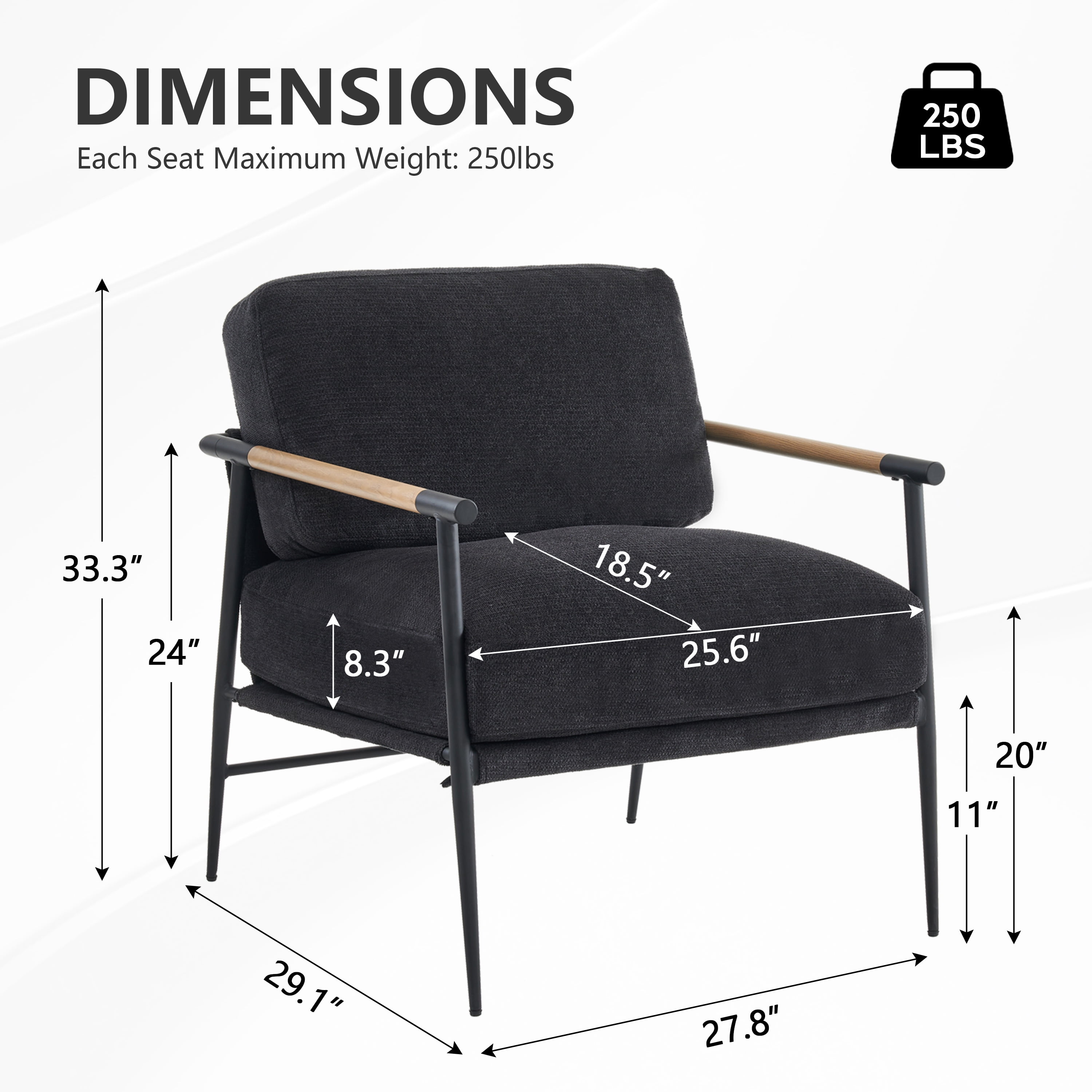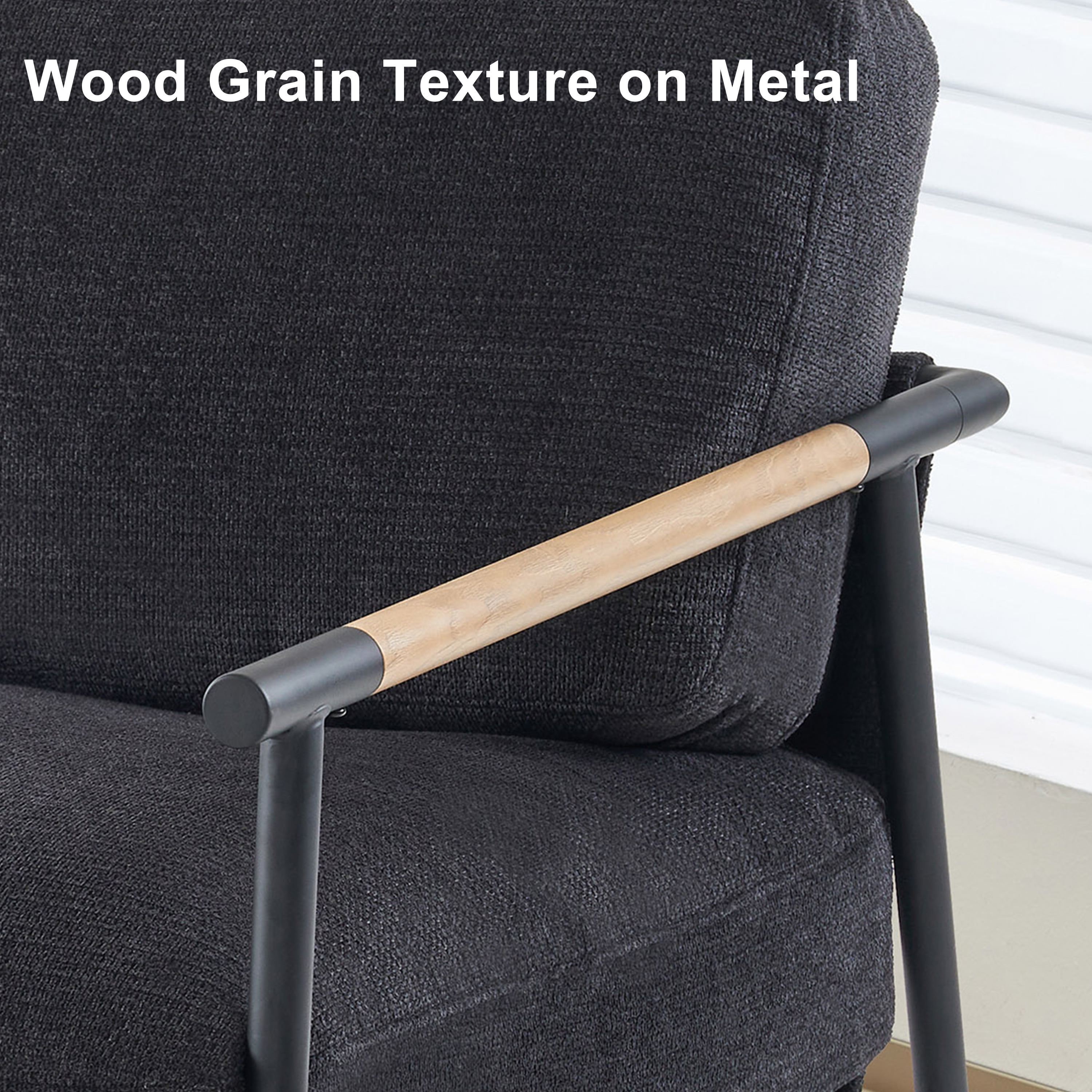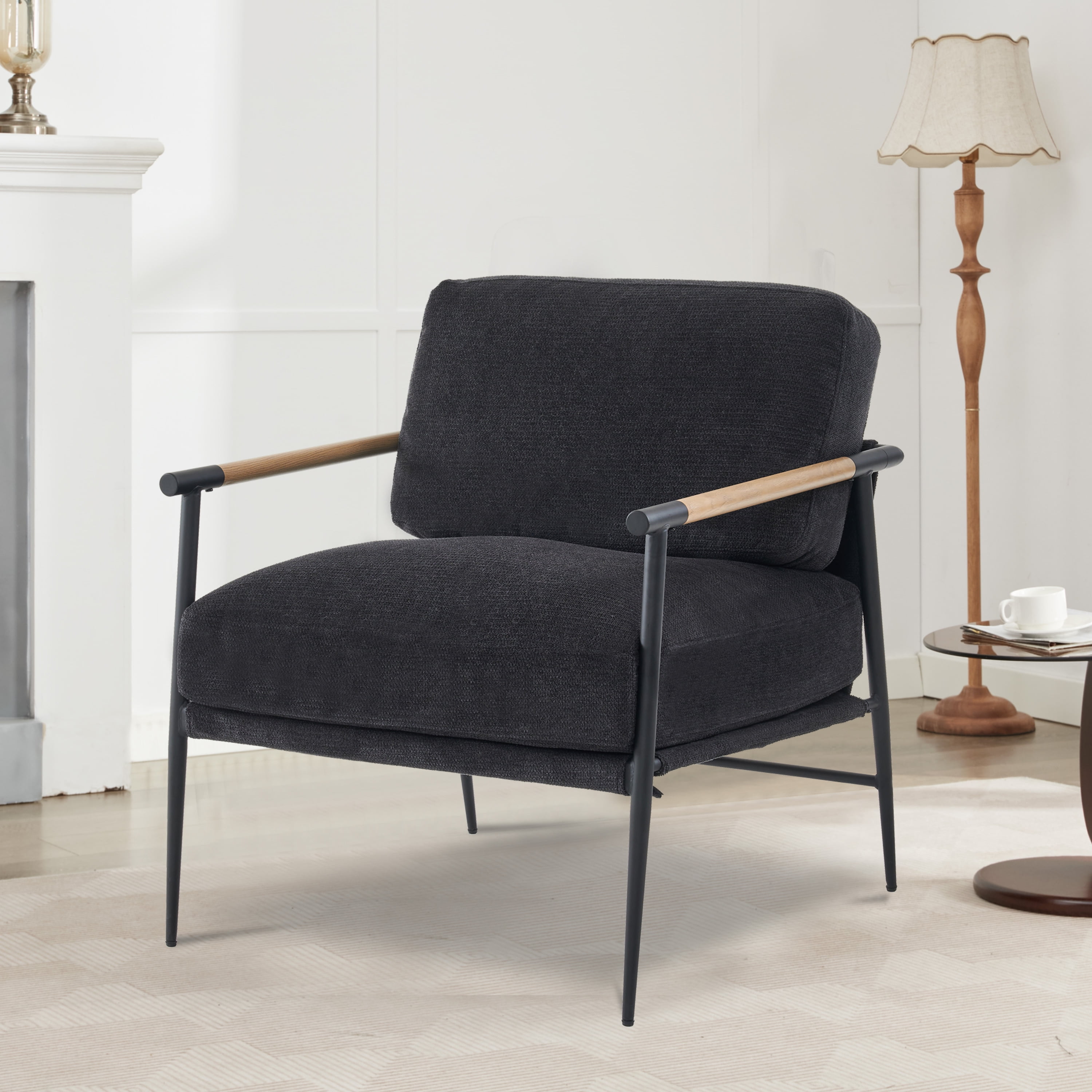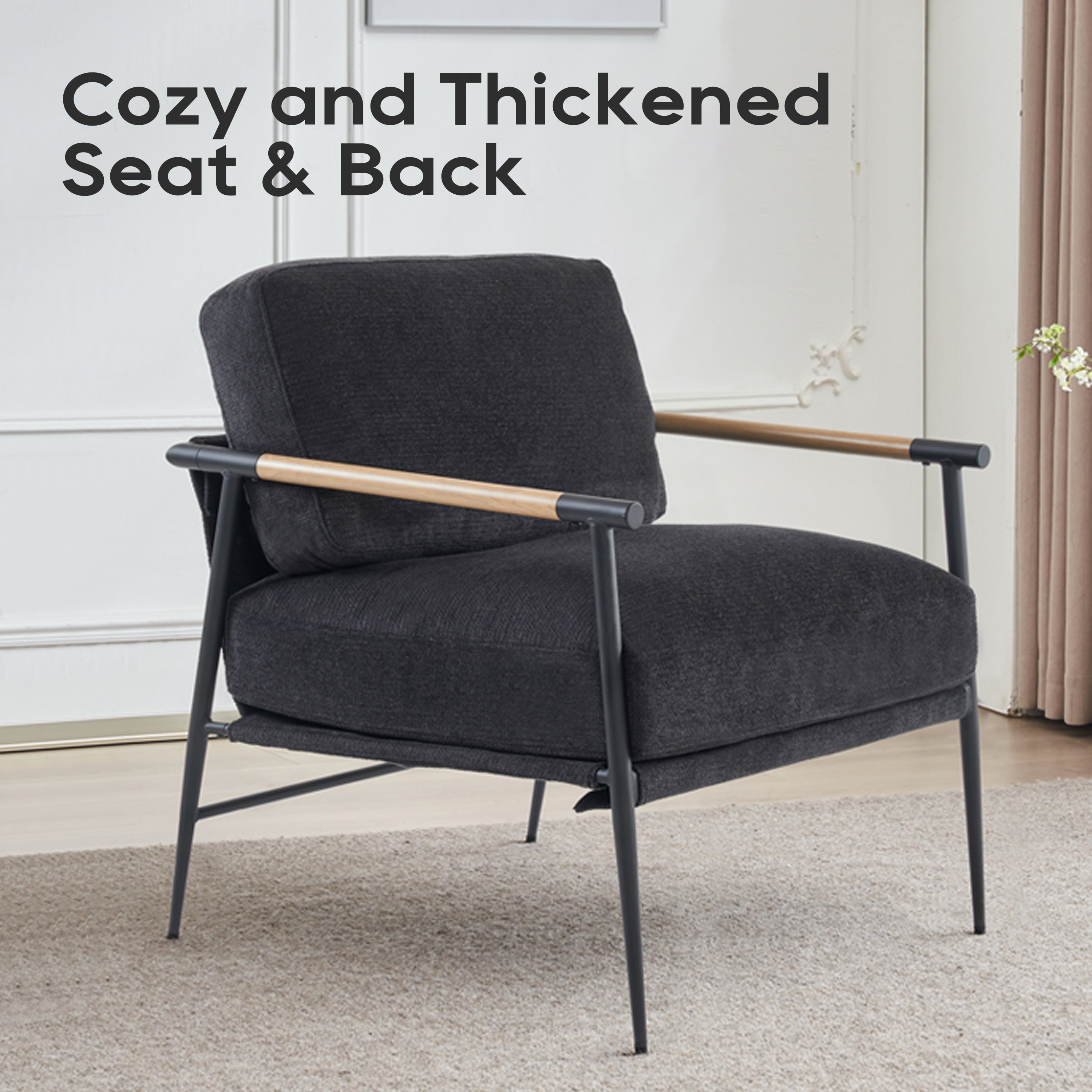 Othniel 2PCS Black Accent Chair Armchair Chenille Mid Century Modern Accent Chair Metal Leg Comfy Cushion