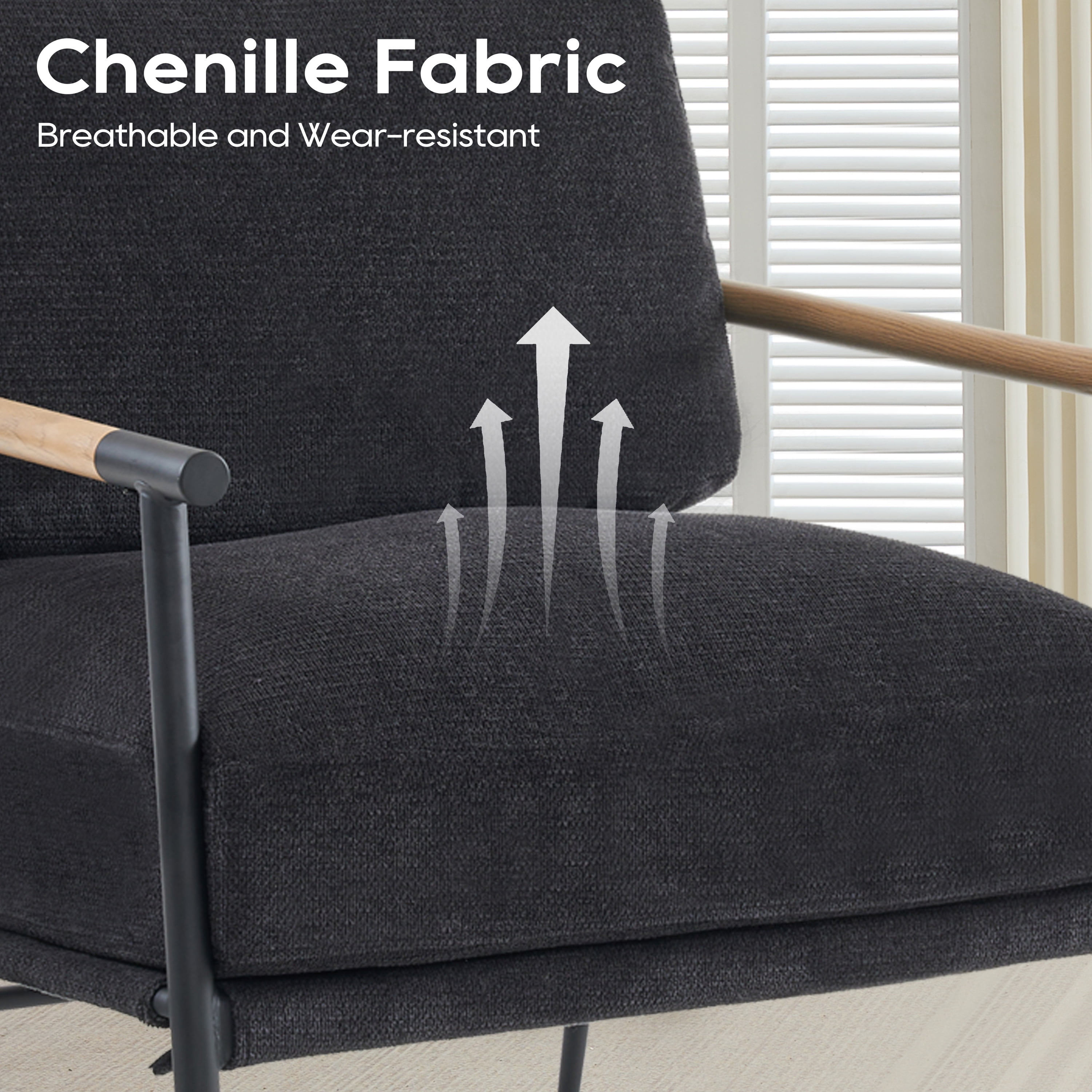 Luxurious Chenille Fabric: Upholstered in soft, high-quality chenille material, this accent chair offers a plush and comfortable seating experience that is both stylish and inviting. Durable Metal Arms and Legs: The sturdy metal arms and legs provide robust support and a modern aesthetic, ensuring that the chair not only looks great but also stands the test of time. Comfy Cushion: The generously padded cushion offers exceptional comfort, making it the perfect spot to relax, read, or enjoy a cup of coffee. Versatile Design: With its sleek and contemporary design, this accent chair complements a wide range of interior decor styles, adding a sophisticated touch to any space. Available in Multiple Colors: Choose from elegant green, classic black, or pristine white to match your personal style and home decor.