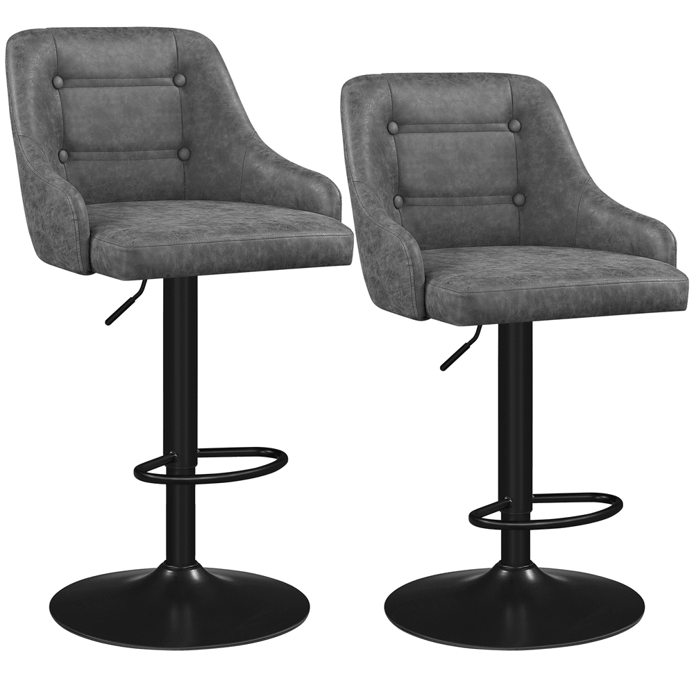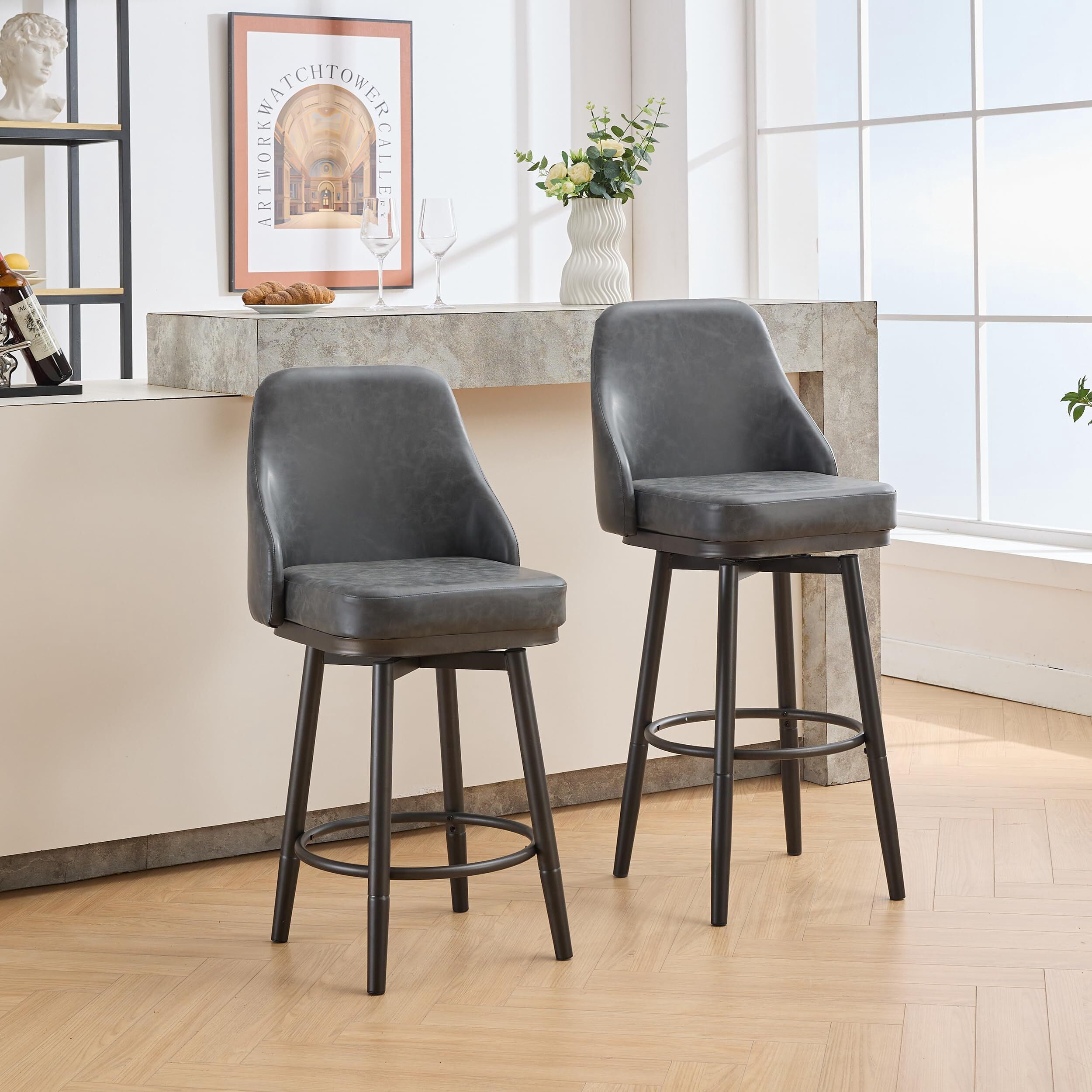 OTHNIEL Bar Stools Set of 2 Adjustable PU Leather Swivel Barstool,Metal Leg,24 to 29 Inch,Gray