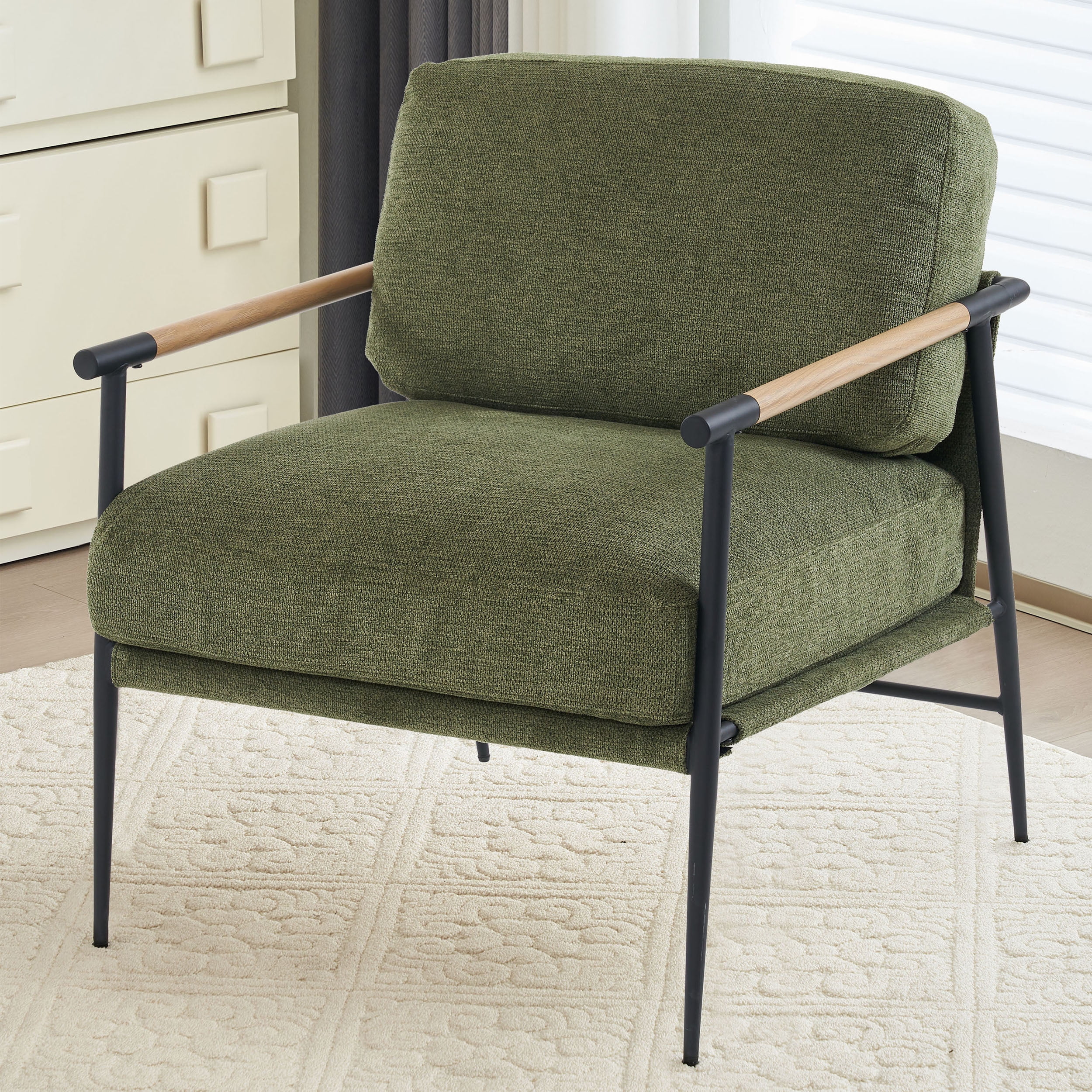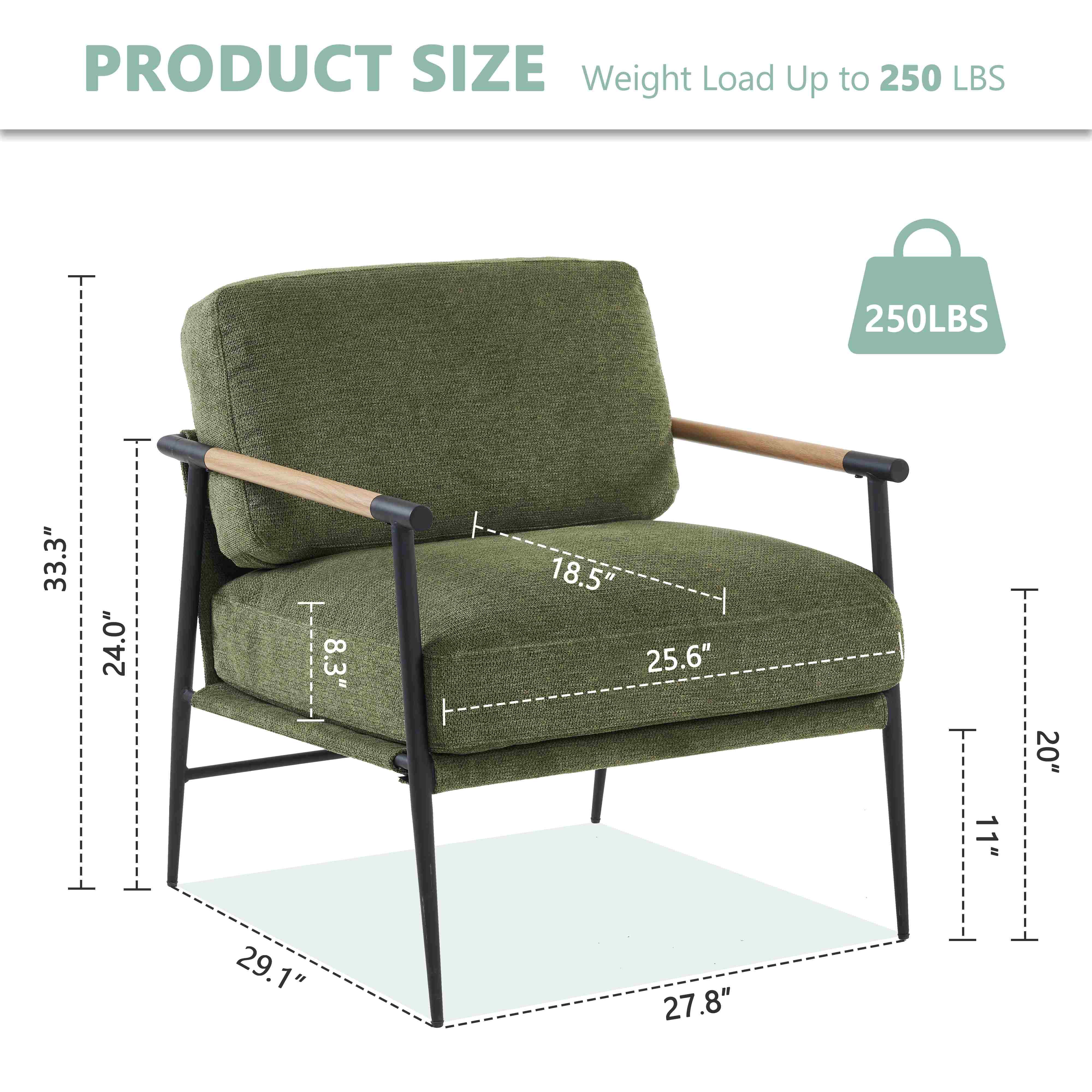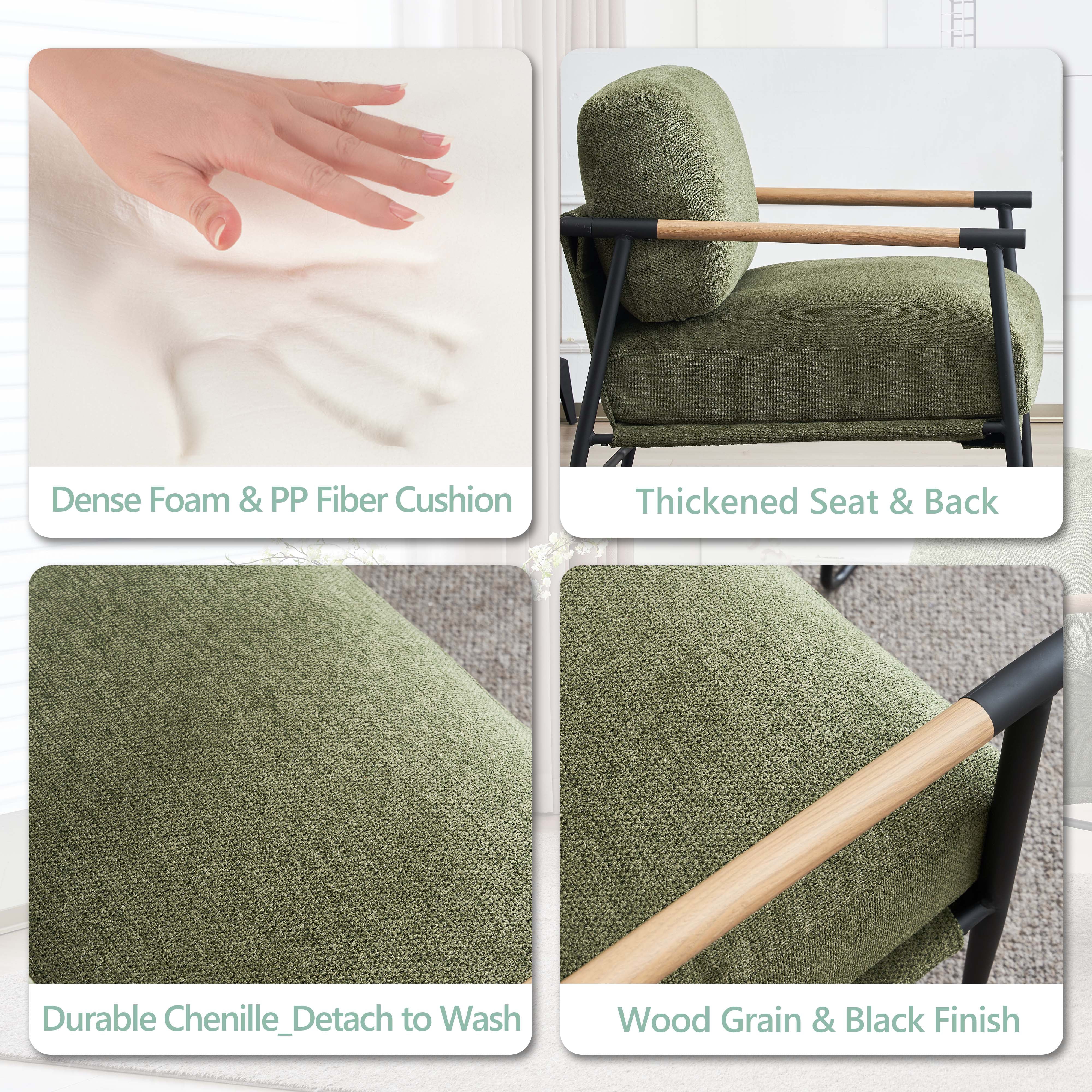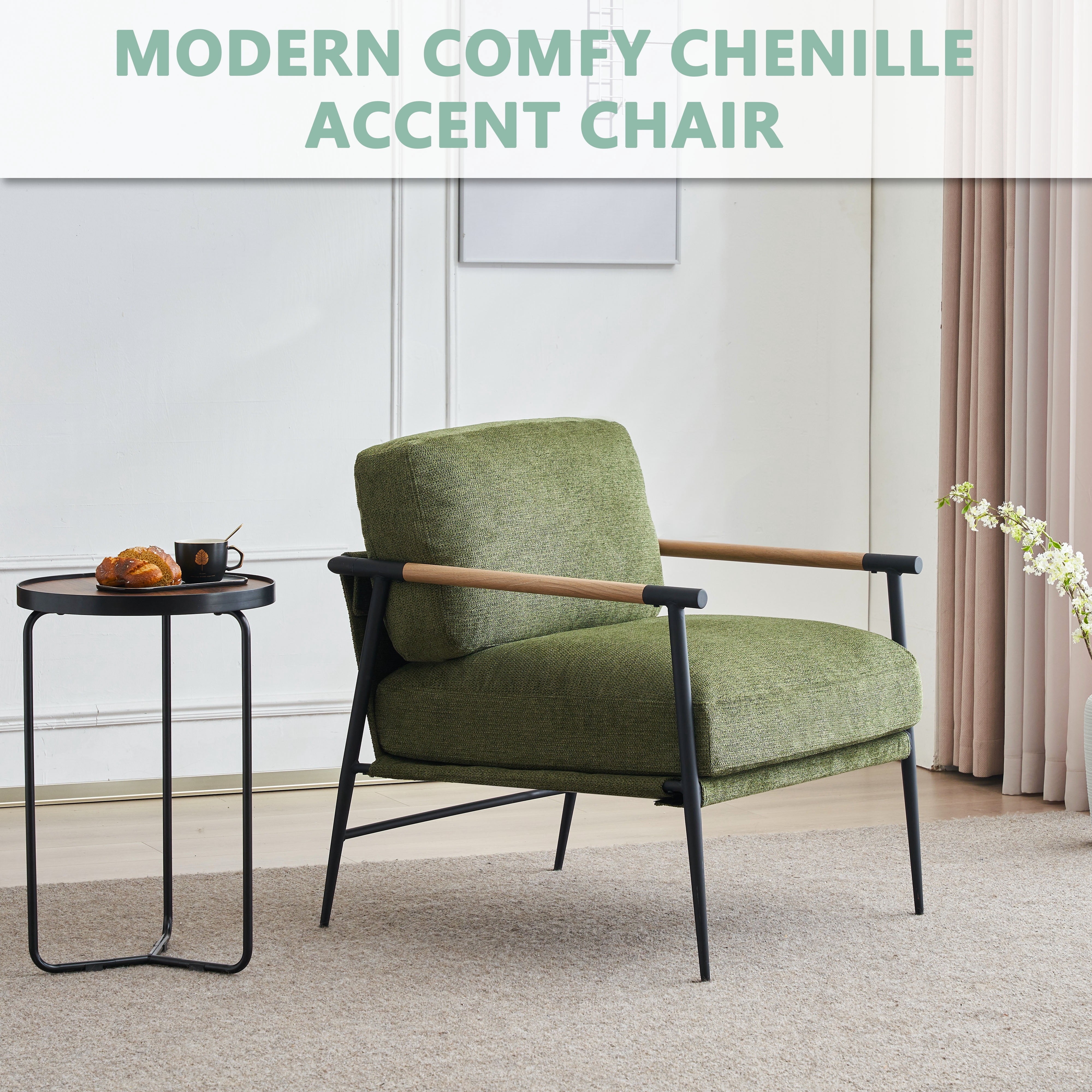 Othniel Green Accent Chair Armchair Chenille Mid Century Modern Accent Chair Metal Leg Comfy Cushion for Living Room