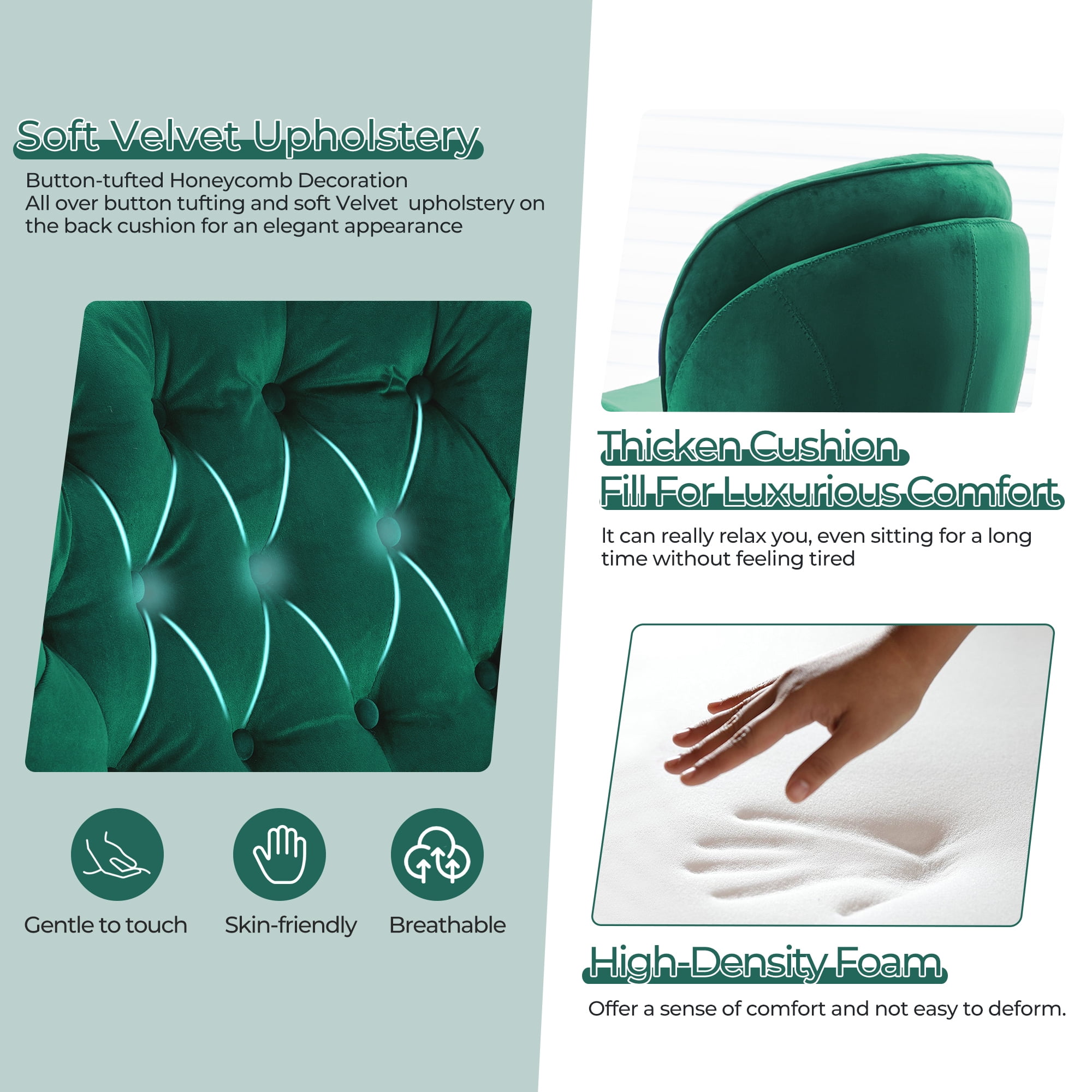 Premium Velvet Material: Upholstered in high-quality velvet, this accent chair offers a plush and comfortable seating experience, adding a touch of sophistication to any room. Sturdy Construction: Built with a solid metal base and engineered wood frame, this chair provides stability and durability, ensuring long-lasting use. 360-Degree Swivel: The smooth swivel feature allows you to rotate 360 degrees, offering flexibility and convenience for any activity, whether you’re reading, watching TV, or simply relaxing. Includes Ottoman: The matching ottoman provides additional comfort and support, allowing you to kick up your feet and relax fully. Multiple Color Options: Available in a variety of colors including deep green, black, teal, brown, pink, gray, burgundy, apple green, and blue, this chair can seamlessly fit into any decor style.