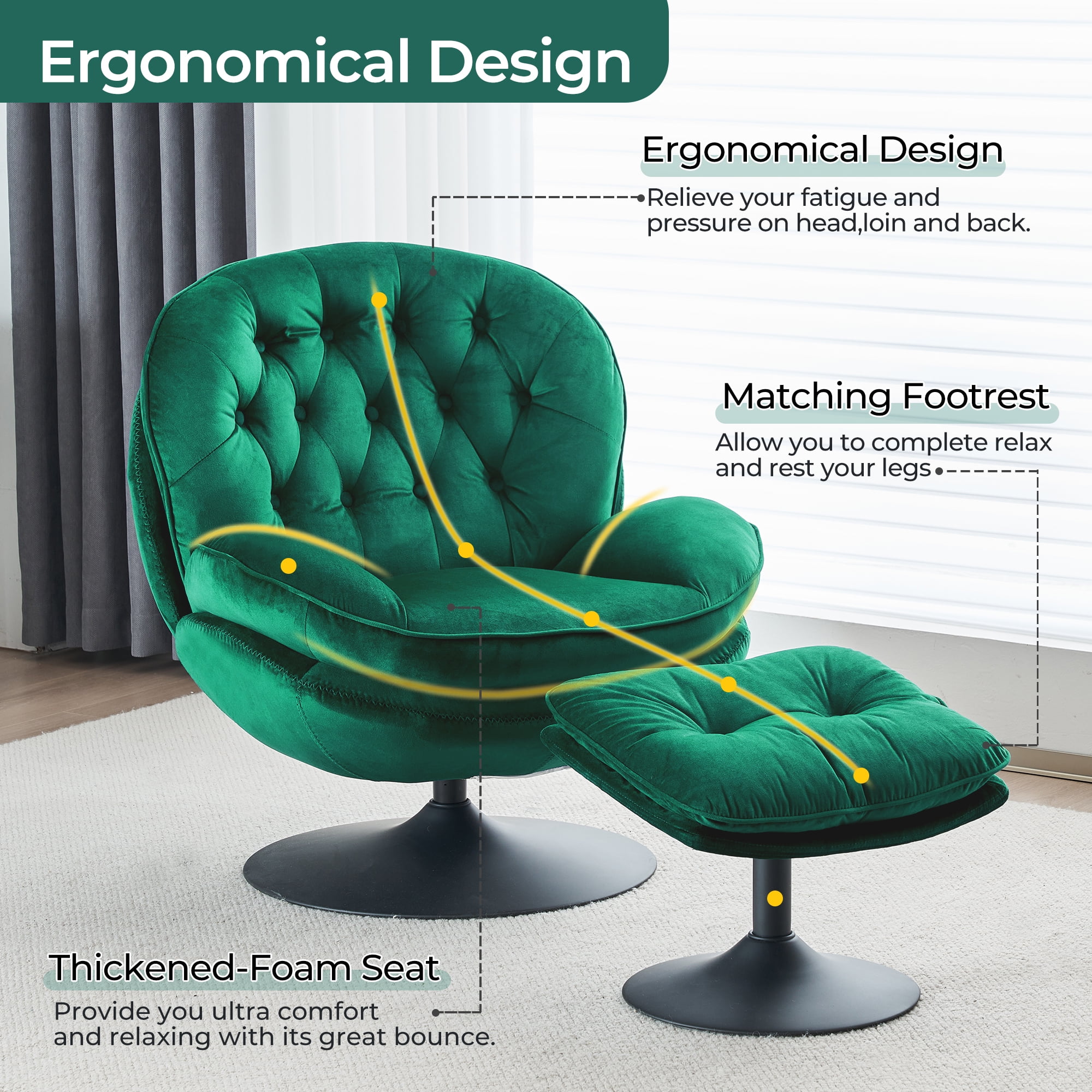 OTHNIEL Velvet Swivel Accent Chair with Ottoman Round Reading Chair with Foot Stool Set Deep Green