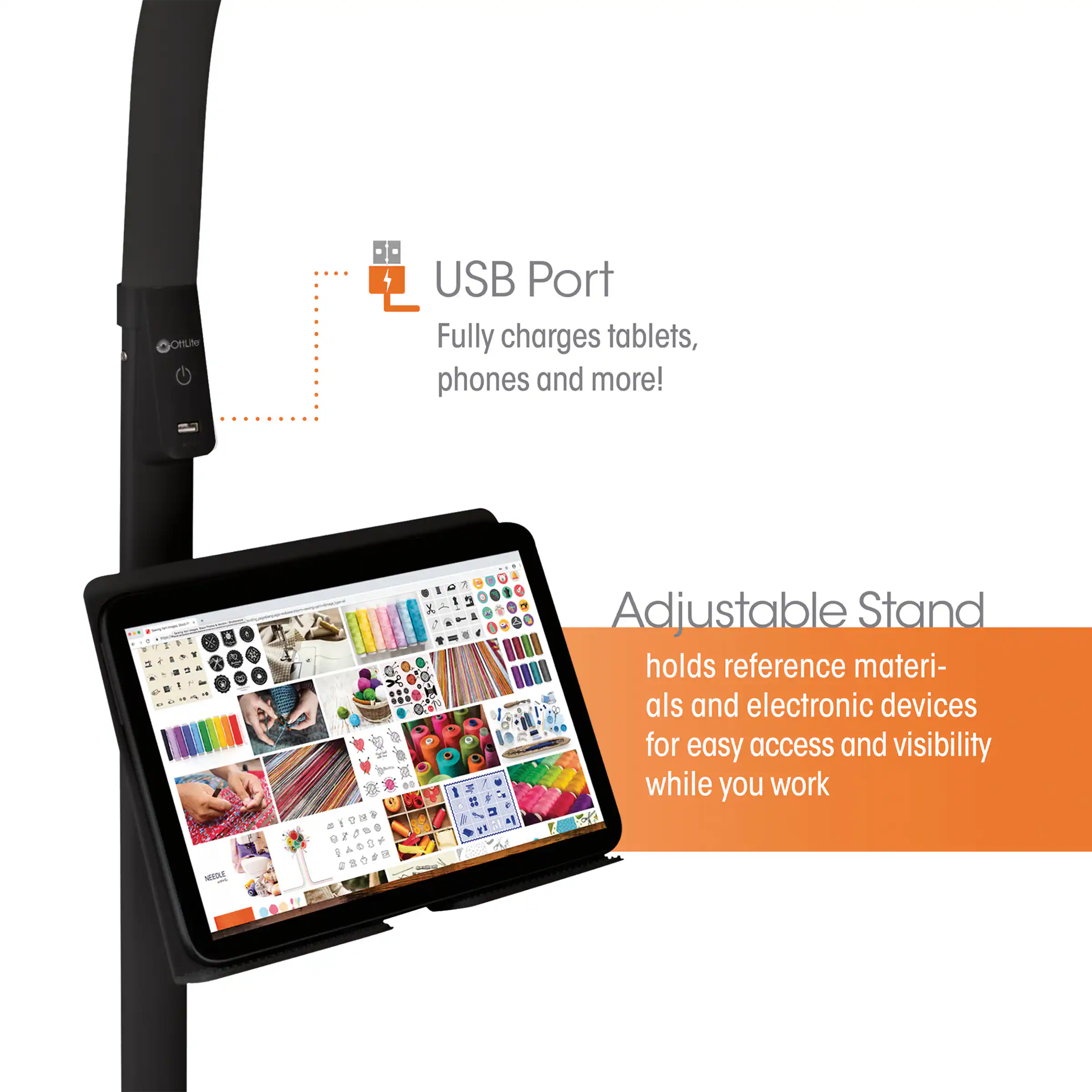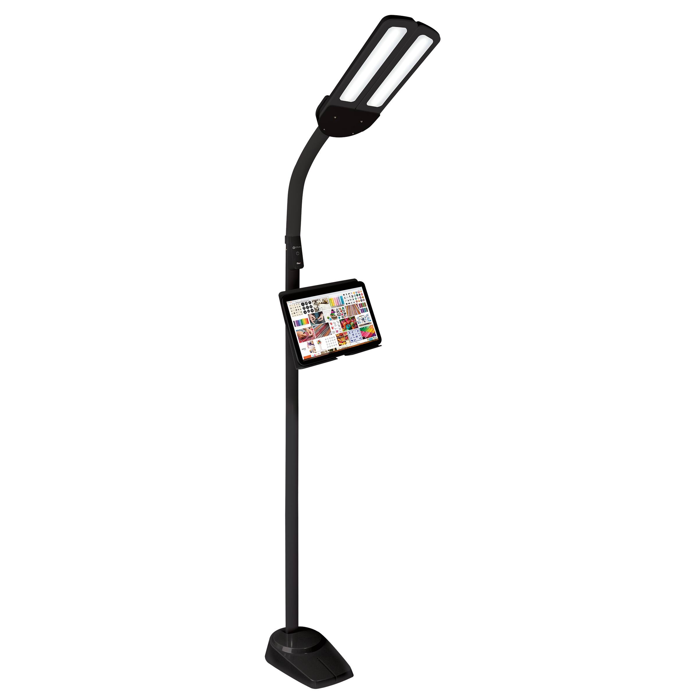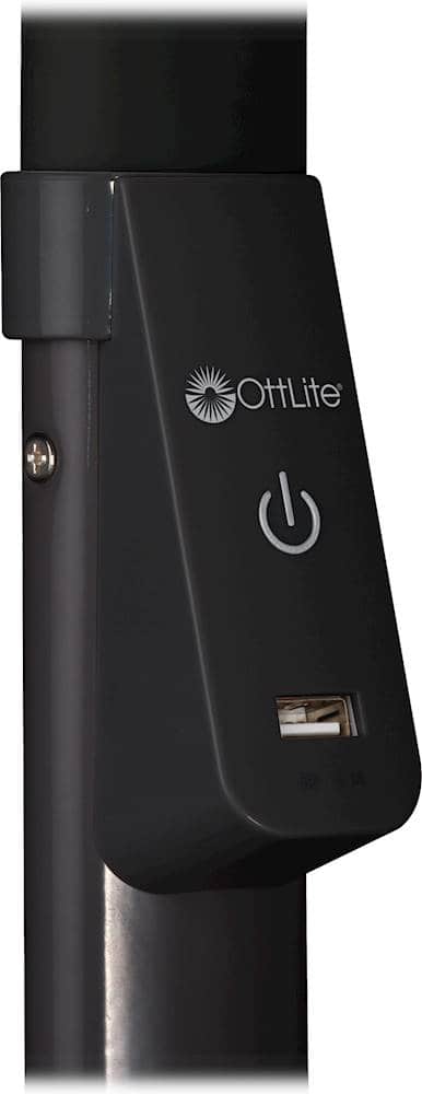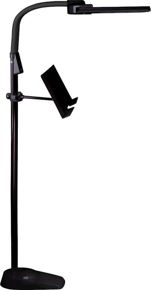 Brighten up your space with this OttLite dual shade LED floor lamp. The included charging station lets you power tablets and phones, while the height-adjustable stand supports customization. The bright LEDs provide up to 40,000 hours of use. Boasting four brightness levels, this OttLite dual shade LED floor lamp offers flexible illumination, and the wide base ensures stability.