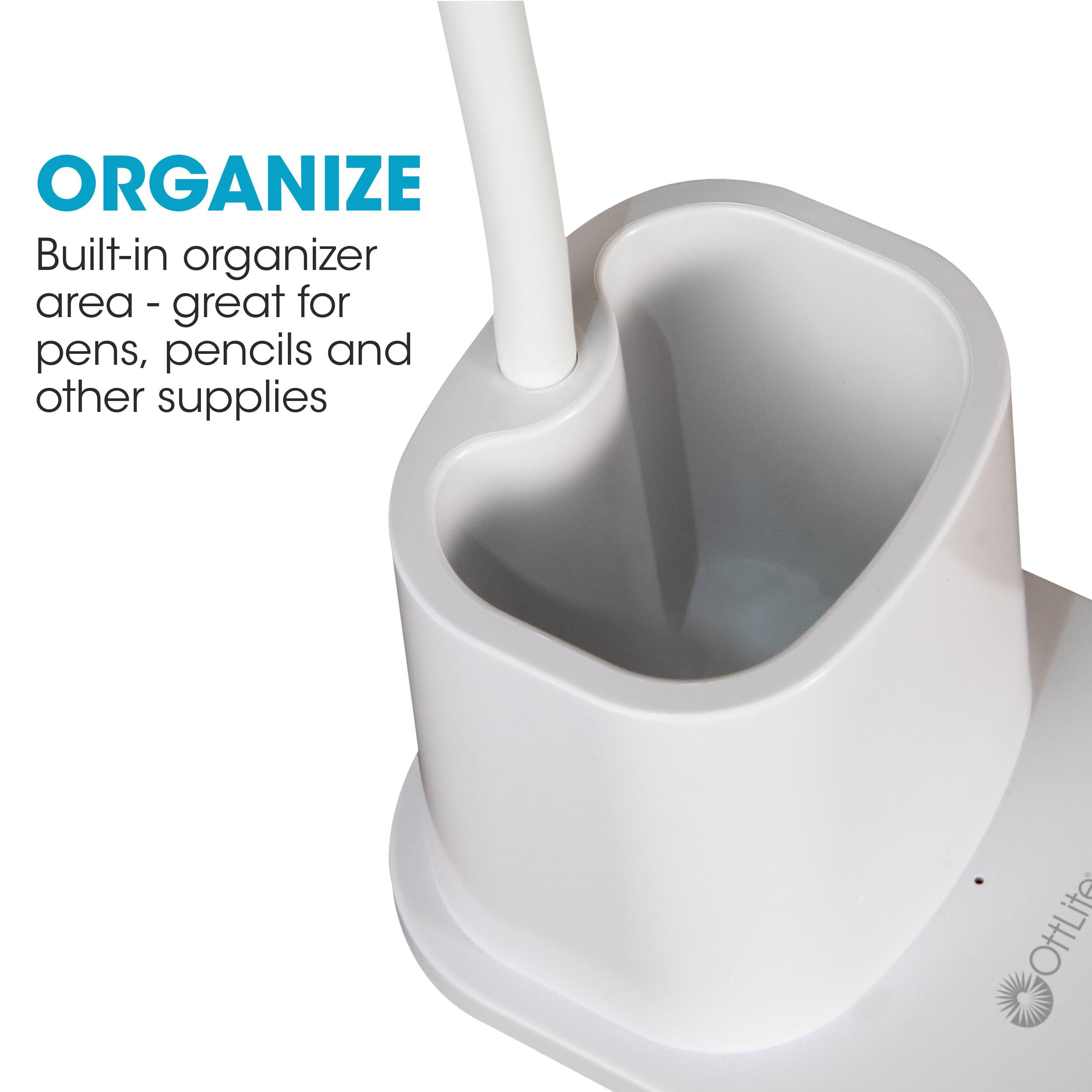 Set yourself and your student up for success with the OttLite Organizer LED Desk Lamp w/Wireless Charging. With OttLite’s clear LED light you’ll enjoy dramatically reduced eyestrain for hours of focused, productive learning. Having a dedicated study area with healthy lighting and reduced distractions is a perfect formula for student success. This OttLite lamp features three brightness settings and a flexible neck to easily adjust the crisp, clear, balanced OttLite illumination right where you need it. 5W Wireless Charging capabilities in the base support those wireless charging enabled phones.