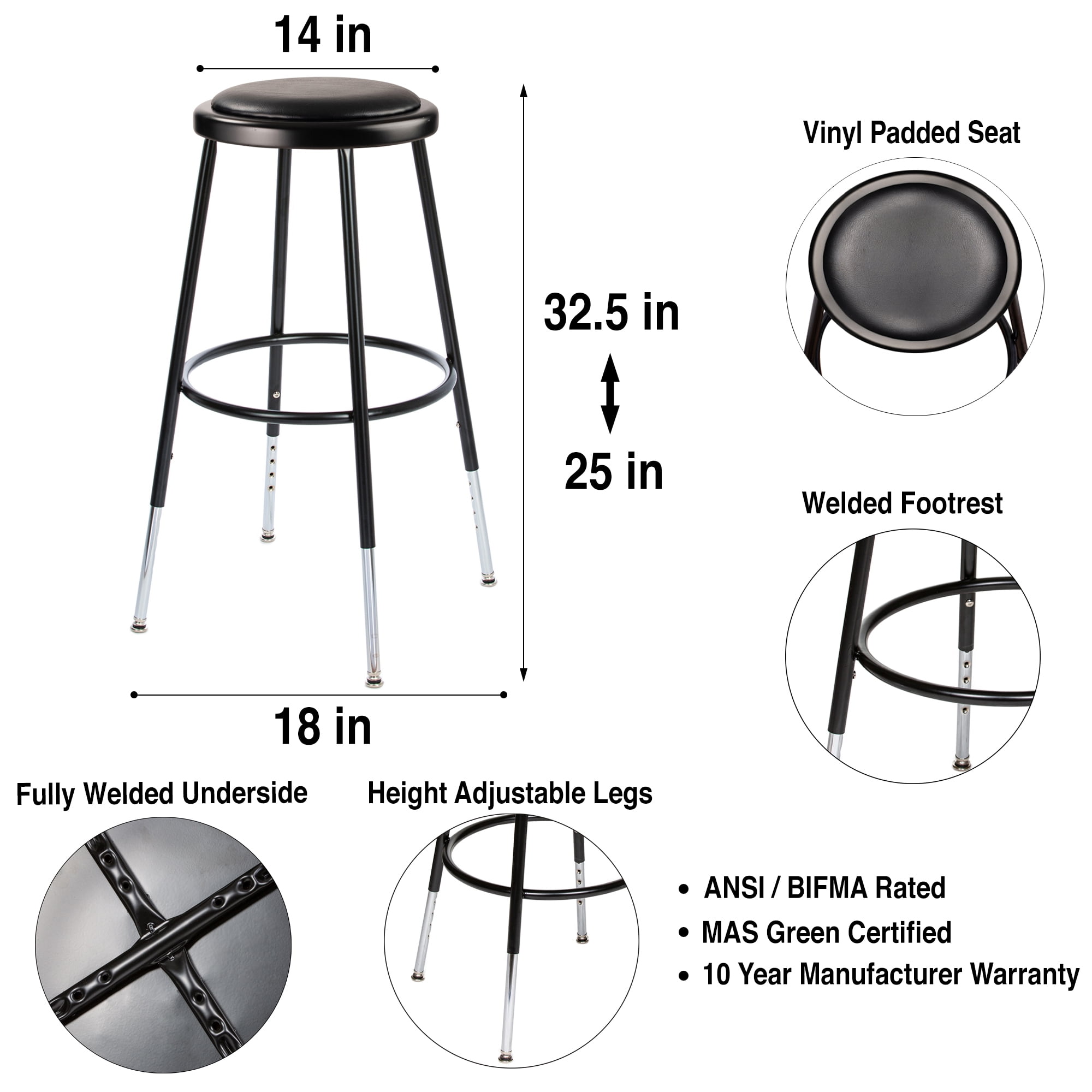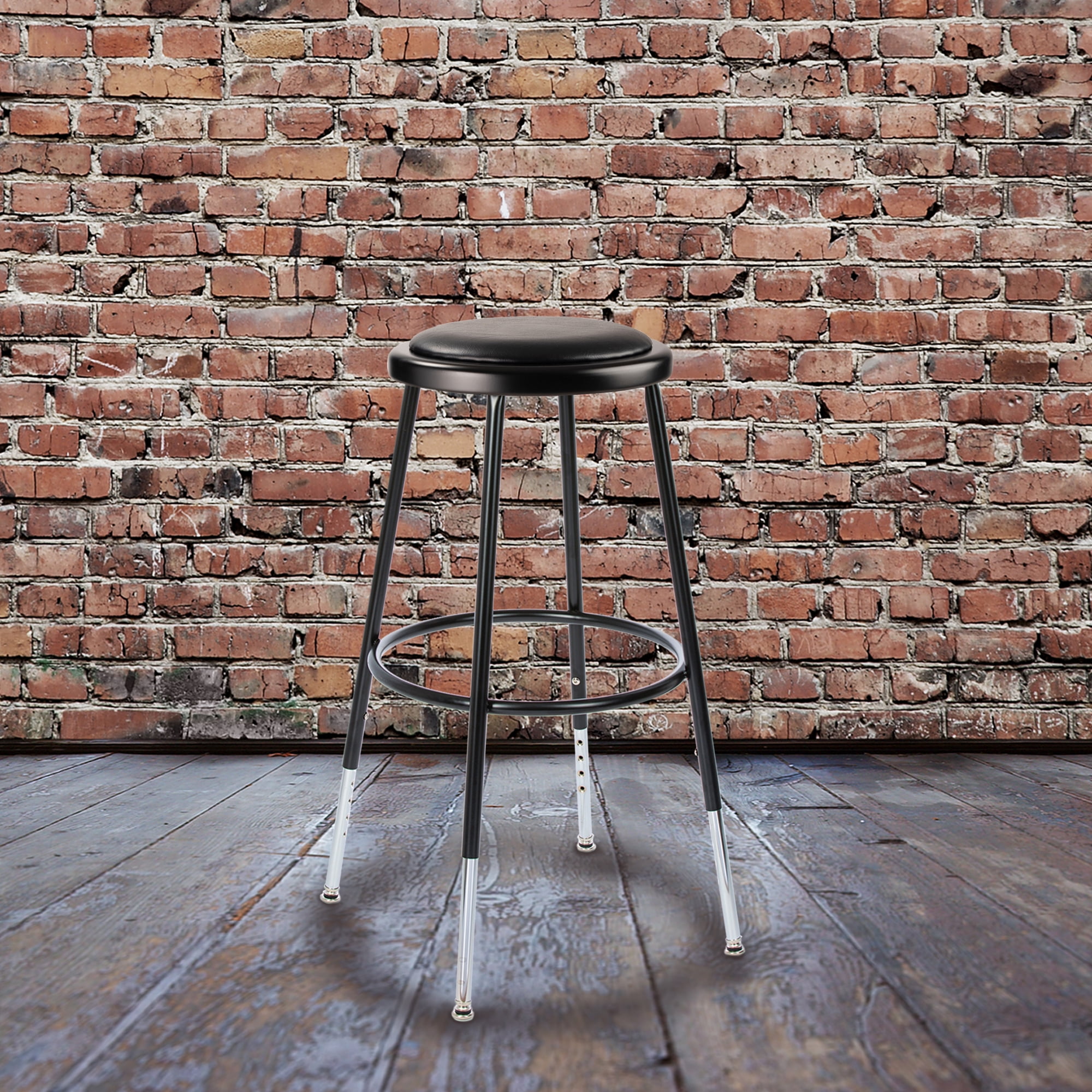 Versatility: The Otto 24 Inch Stool is perfect for any room in your home or office; use it as a seat at your office, study, or even as extra seating for guests, and great for kids to use at the table, counter, art/homework desk, making use of the adjustable legs which extend the stool up to 31 inches tall Durability: Made from sturdy 18-gauge steel and strong thick vinyl, the Otto 24 Inch Stool can withstand the wear and tear of everyday use Comfort: The Otto 24 Inch Stool has a comfortably padded seat and a footrest ring that provides added stability and comfort as you sit