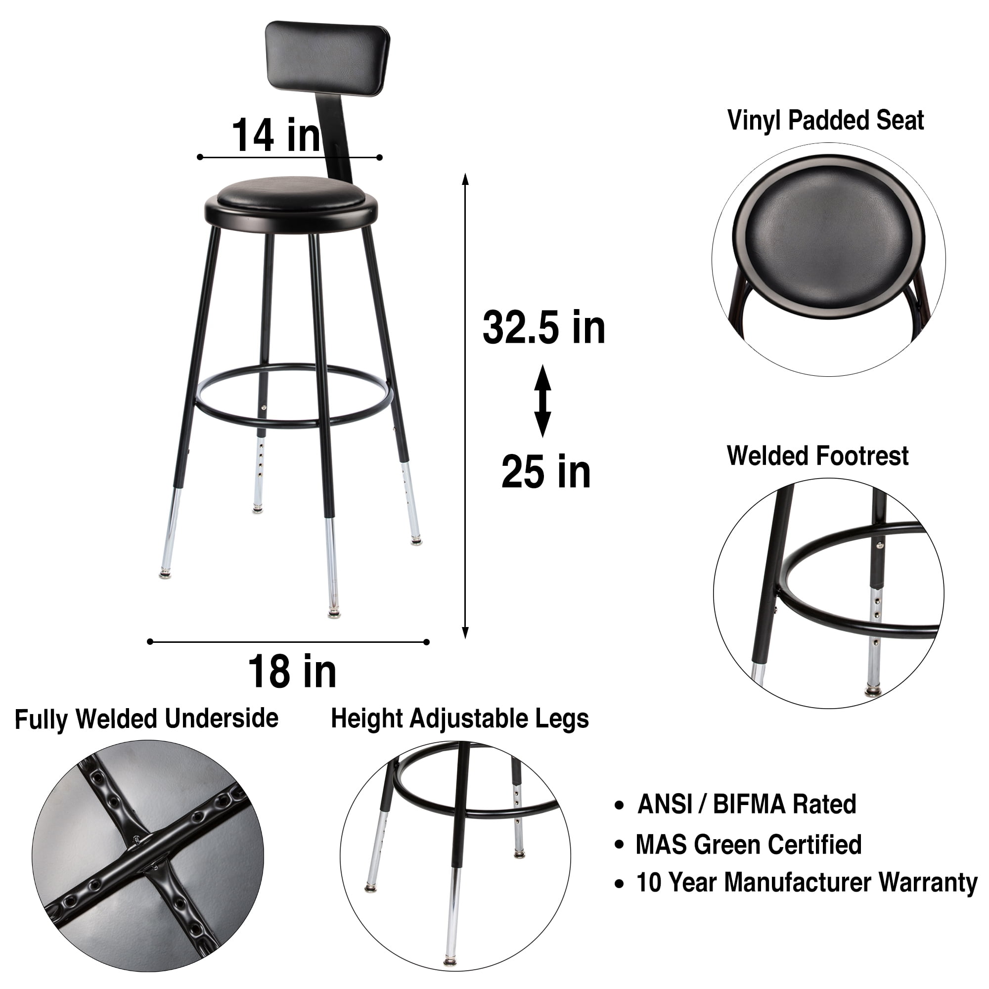 Versatility: The Otto 24 Inch Stool is perfect for any room in your home or office; use it as a seat at your office, study, or even as extra seating for guests, and great for kids to use at the table, counter, art/homework desk, making use of the adjustable legs which extend the stool up to 31 inches tall Durability: Made from sturdy 18-gauge steel and strong thick vinyl, the Otto 24 Inch Stool can withstand the wear and tear of everyday use Comfort: The Otto 24 Inch Stool has a comfortably padded seat and a footrest ring that provides added stability and comfort as you sit and a removable backrest