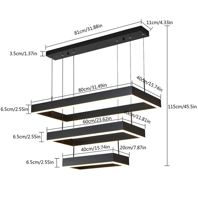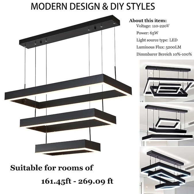 - Manufacturer Color/Finish: Modern Black Square 3-ring Light Adjustable