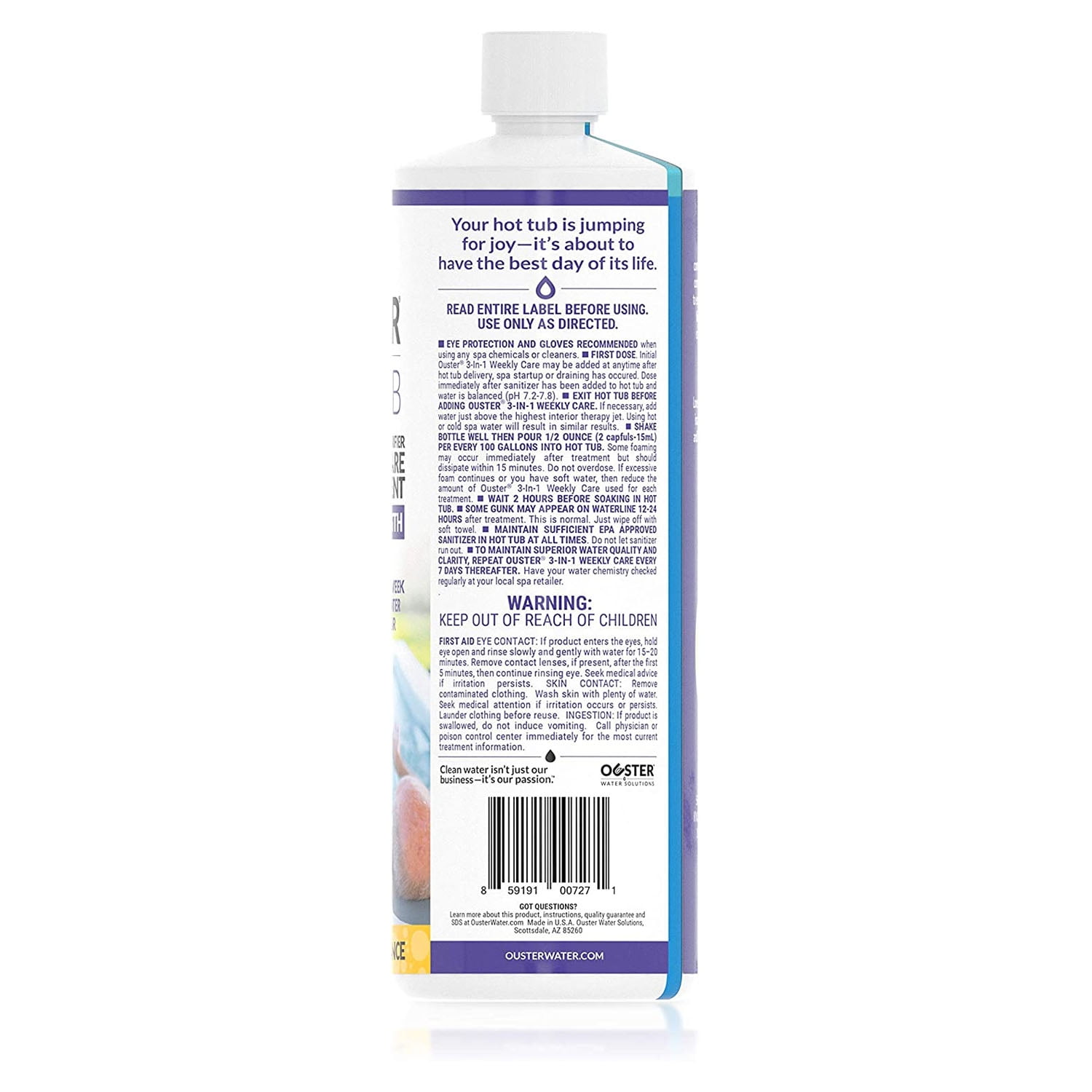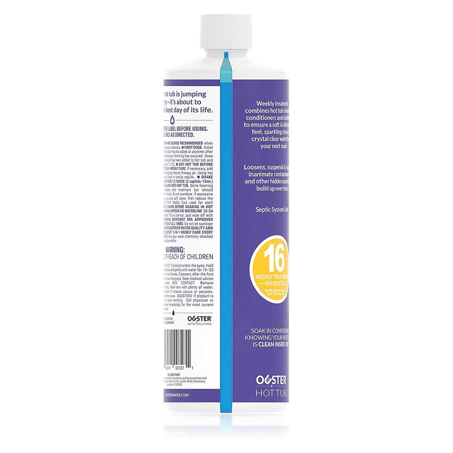 Like all outdoor fixtures, hot tubs require periodic maintenance. The Ouster Hot Tub and Spa 3-in-1 Weekly Care Cleaner simplifies your upkeep process so you can upgrade your spa soak sessions. When not in use, spa plumbing lines become an area of buildup for non-living nutrients such as lotions, sweat, and other inanimate contaminants. With this comes hidden gunk in the jets and plumbing systems of your hot tubs and portable spas. Use this weekly cleaner, you can take care of any buildup and get your heated oasis looking, feeling, and smelling much better. This cleaner’s formula combines hot tub cleaner, conditioners, and clarifiers. This kit includes (1) 32-ounce bottle made to be used once a week. This 16-week restoration kit leaves your spa performing even better than it did before. You will be ready to dip your toes back into the water in a matter of minutes. With the Ouster Hot Tub and Spa 3-in-1 Weekly Care Cleaner, give your hot tub the quality care it needs and let yourself indulge in the kind of spa you deserve.