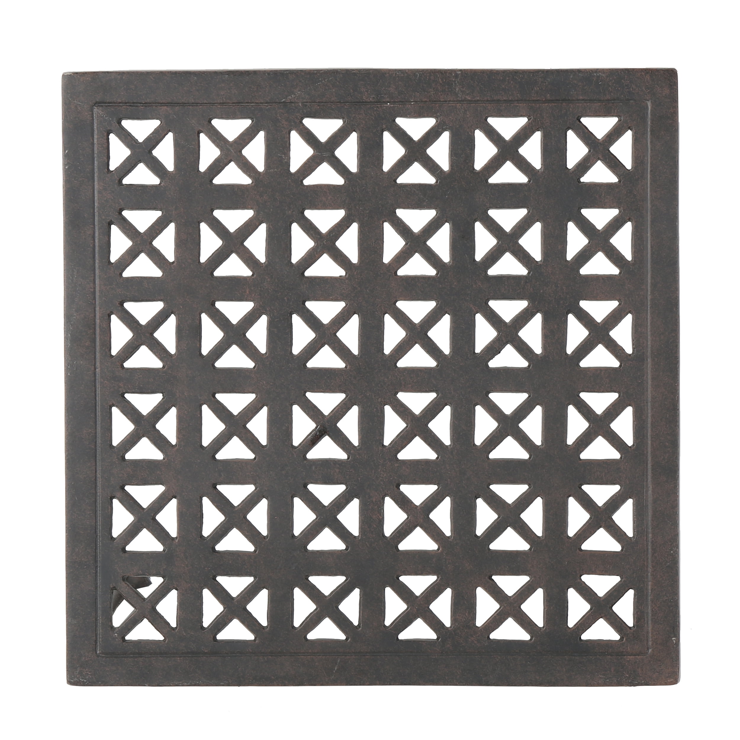 A new twist on a classic look. This handsome outdoor side table features intricate grillwork made from cast aluminum, offering extreme sturdiness while staying light enough that a single person can move it around their patio, backyard or garden with ease. A perfect place to set down everything you and your guests need for an afternoon enjoying the fresh air.