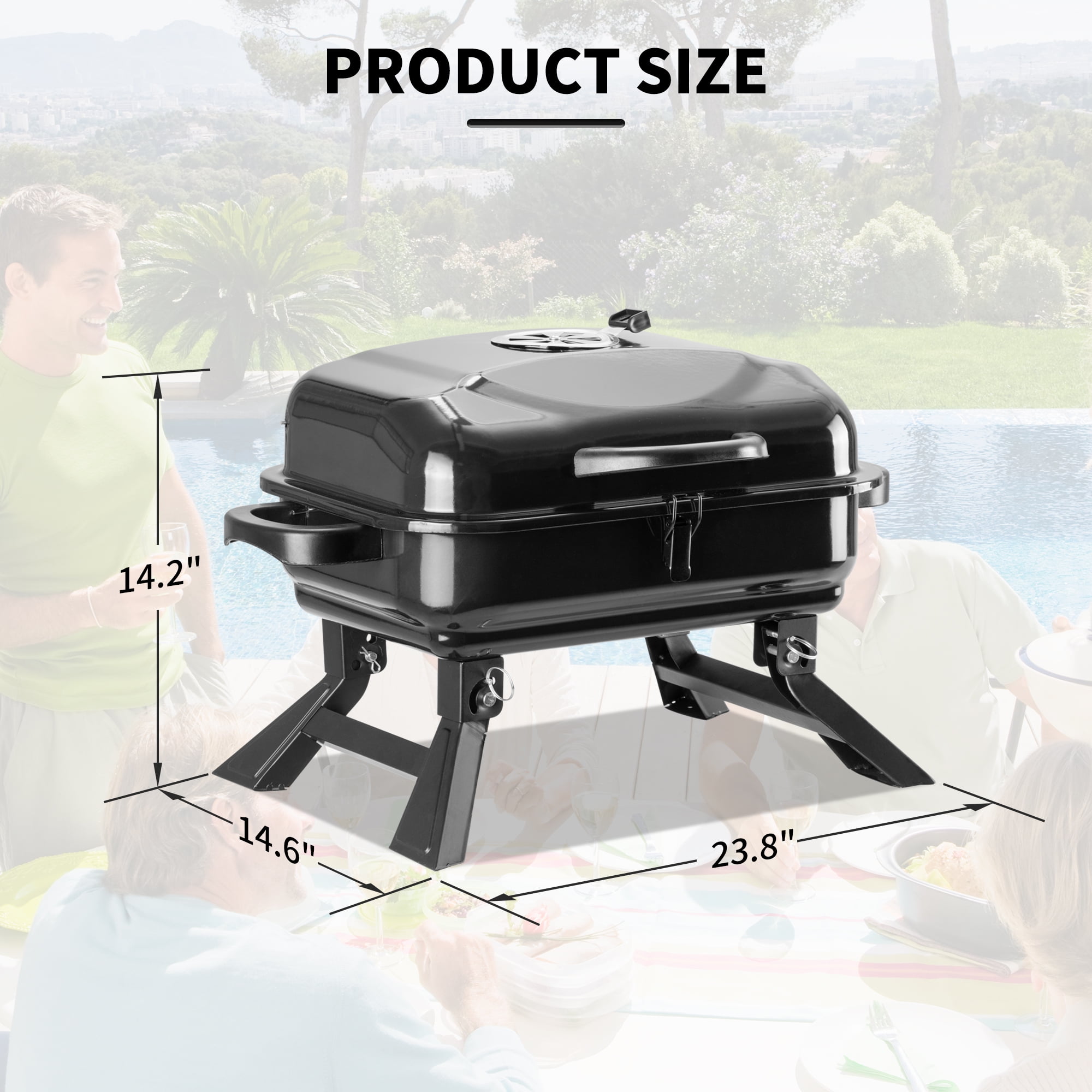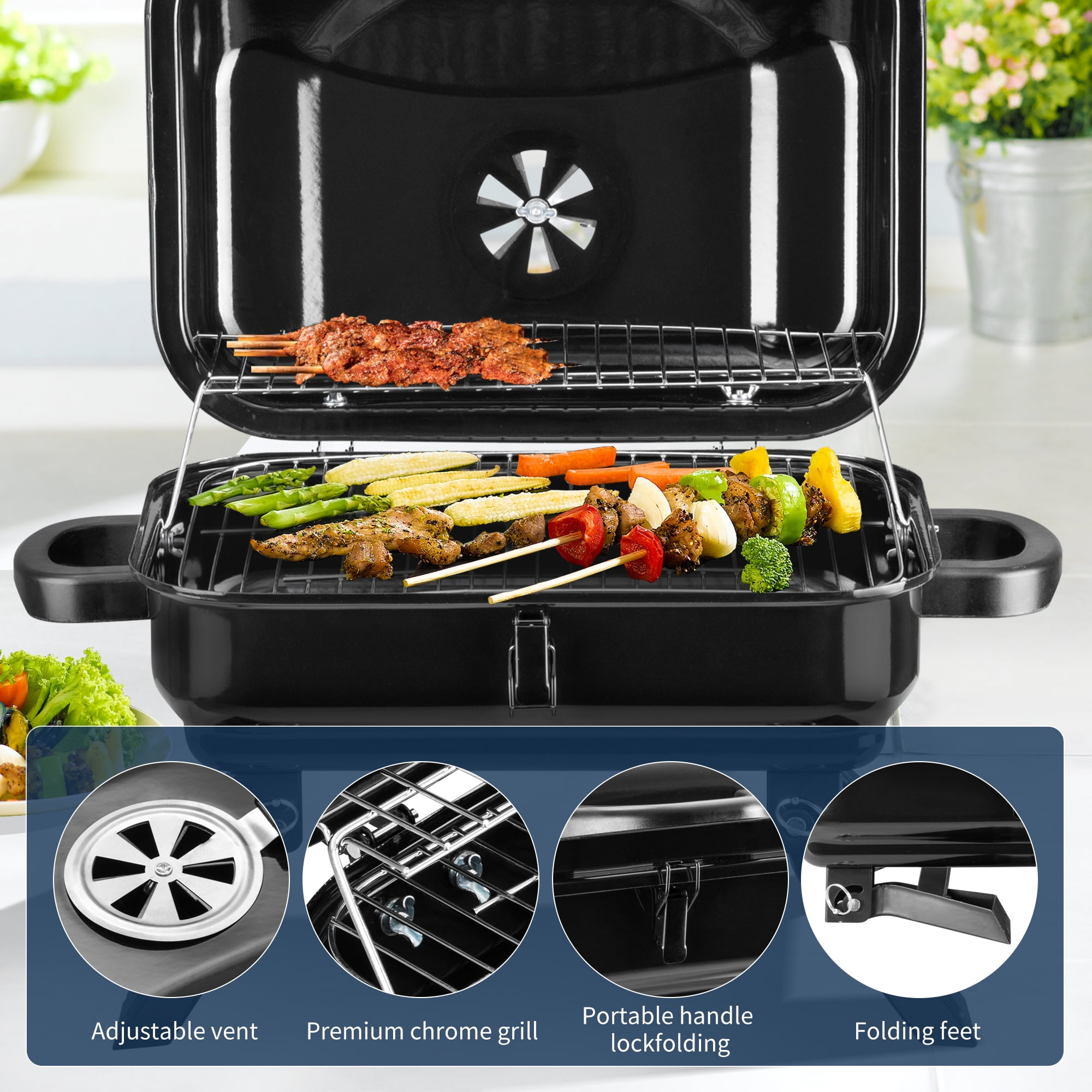 Moving Portable Kitchen: Portable Barbecue Charcoal Grill is a wonderful gift for outdoor camping, backpacking, parties, beach cooking, etc. Getting together with families and friends to have fun with outdoor smoker cooking and grilled flavor. Heat Regulation: The adjustable vent on the top makes it easier to control the air circulation, increasing or decreasing the oxygen in and out at will, in order to better control the charcoal burning rate. Special Design: Our Charcoal Grill contains double chrome grill, the main tier grill can heat food adequately and evenly for a long time and the higher secondary tier can place food to defrost or keep baked food warm. The independent charcoal net and grilling net are easy to clean. Safe and High Quality Material: The folding BBQ grill is made of solid metal and premium chrome wire mesh, which is heat and scratch-resistant, ensuring that the grill won’t rust after a long time use. The anti-scald handle on the top can prevent you from getting burned. Grab and Go: Our Charcoal Grill comes with portable handles on both sides and folding feet, compact and lightweight design makes it easy to carry and take away, perfect for camping, beach, picnics, or barbecue party.
