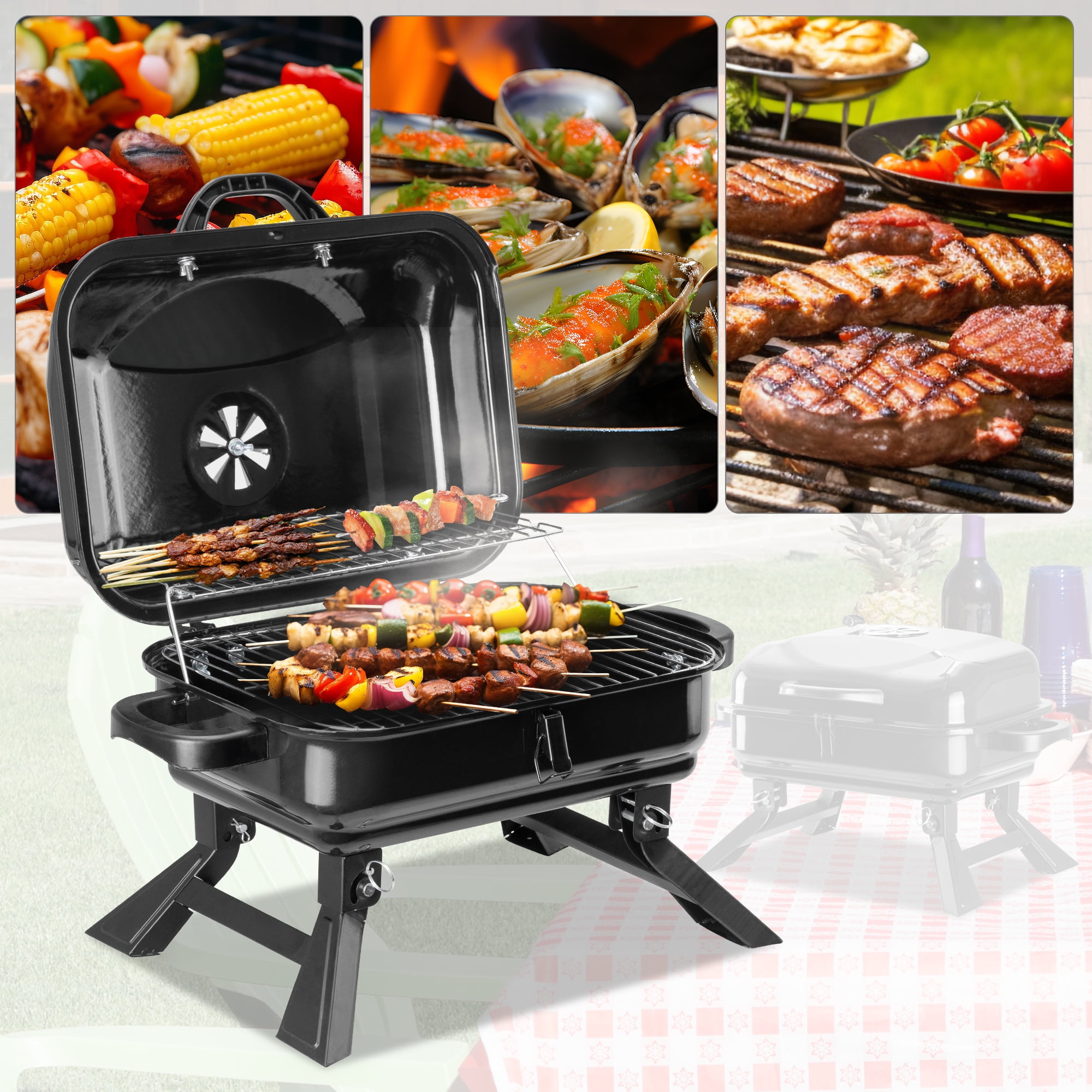 Outdoor Basic Portable Folding Charcoal BBQ Grill, BBQ Charcoal Grill for Outdoor Cooking Beach Picnics Camping Backyard