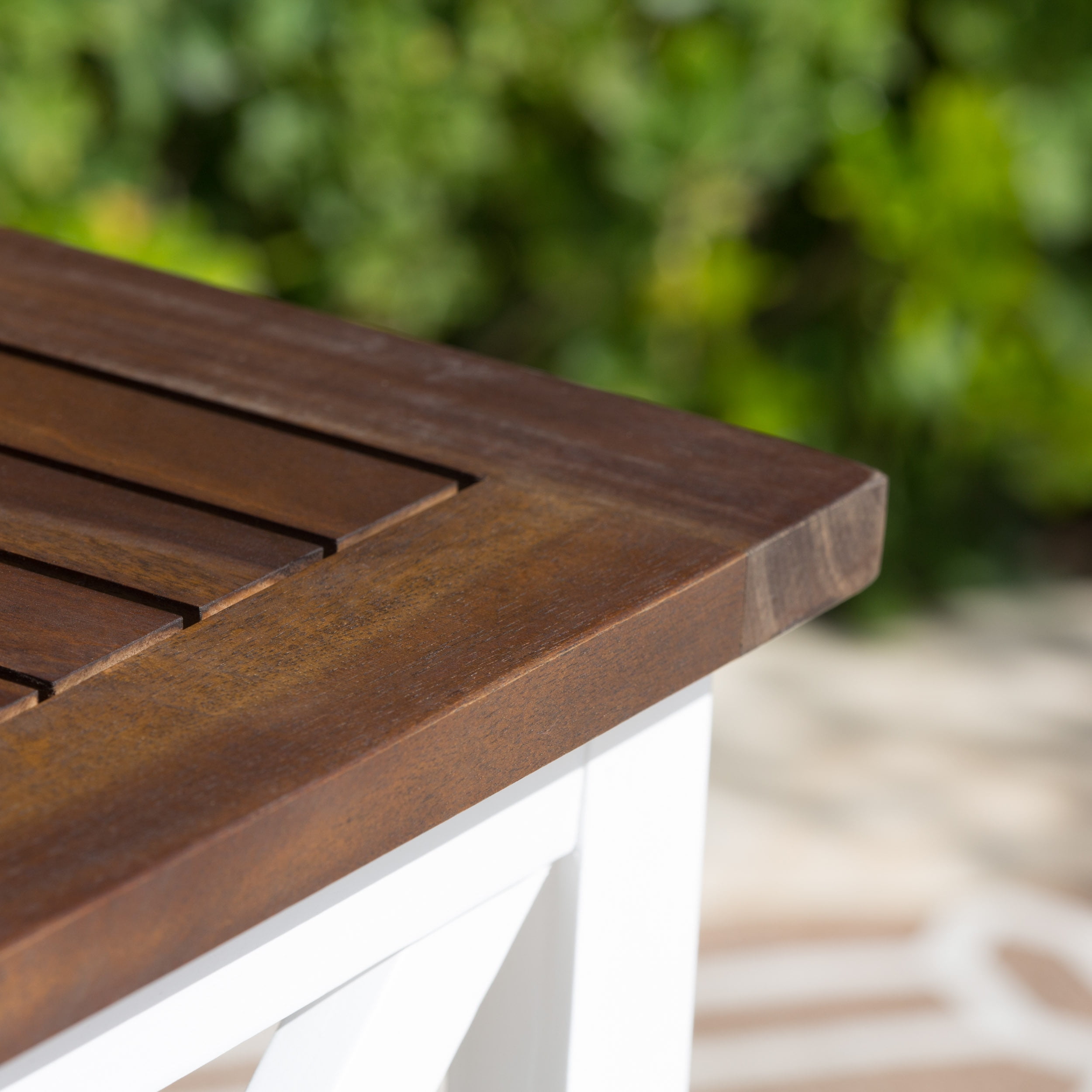 Outdoor Farmhouse Cottage Acacia Wood End Table with Frame,Dark Oak,White