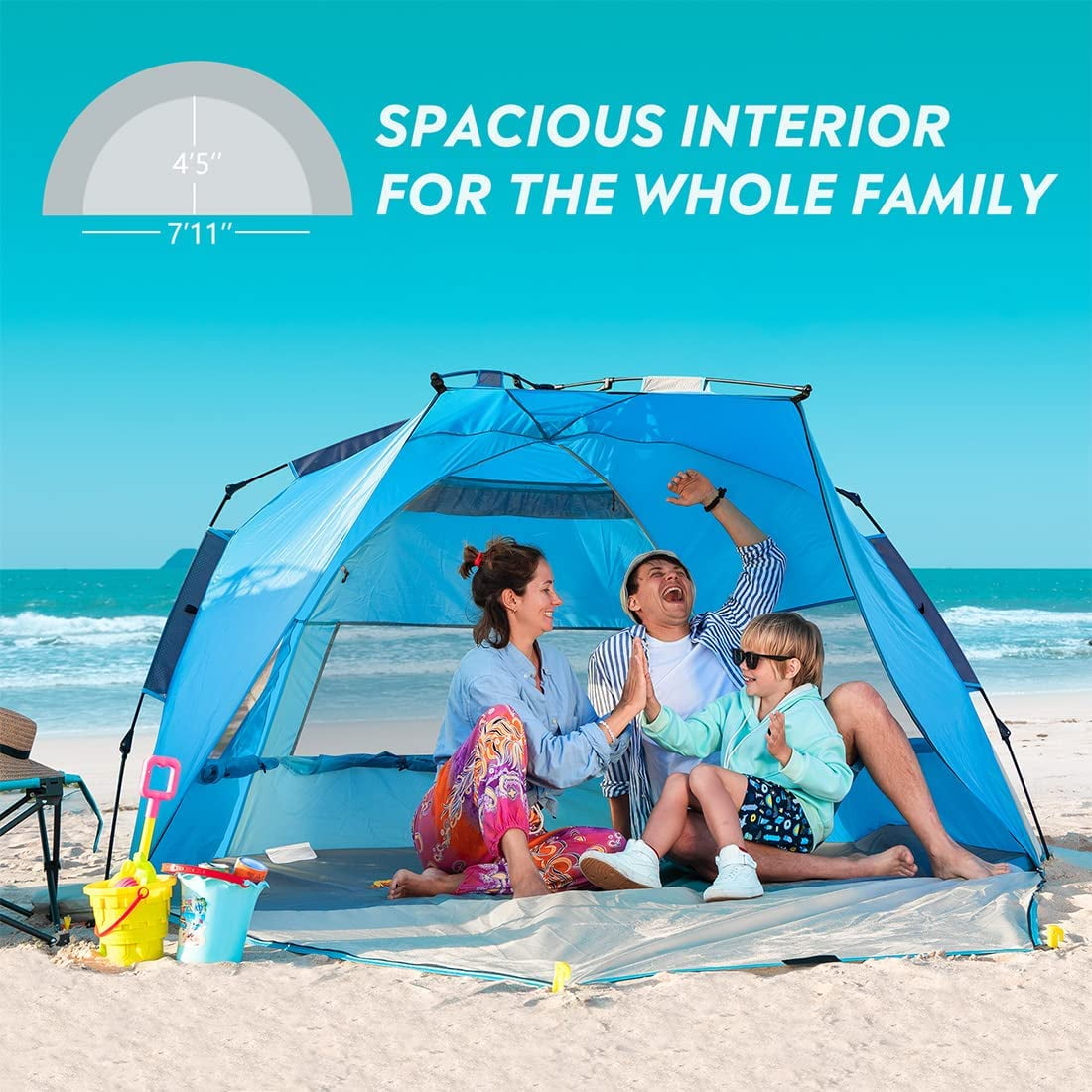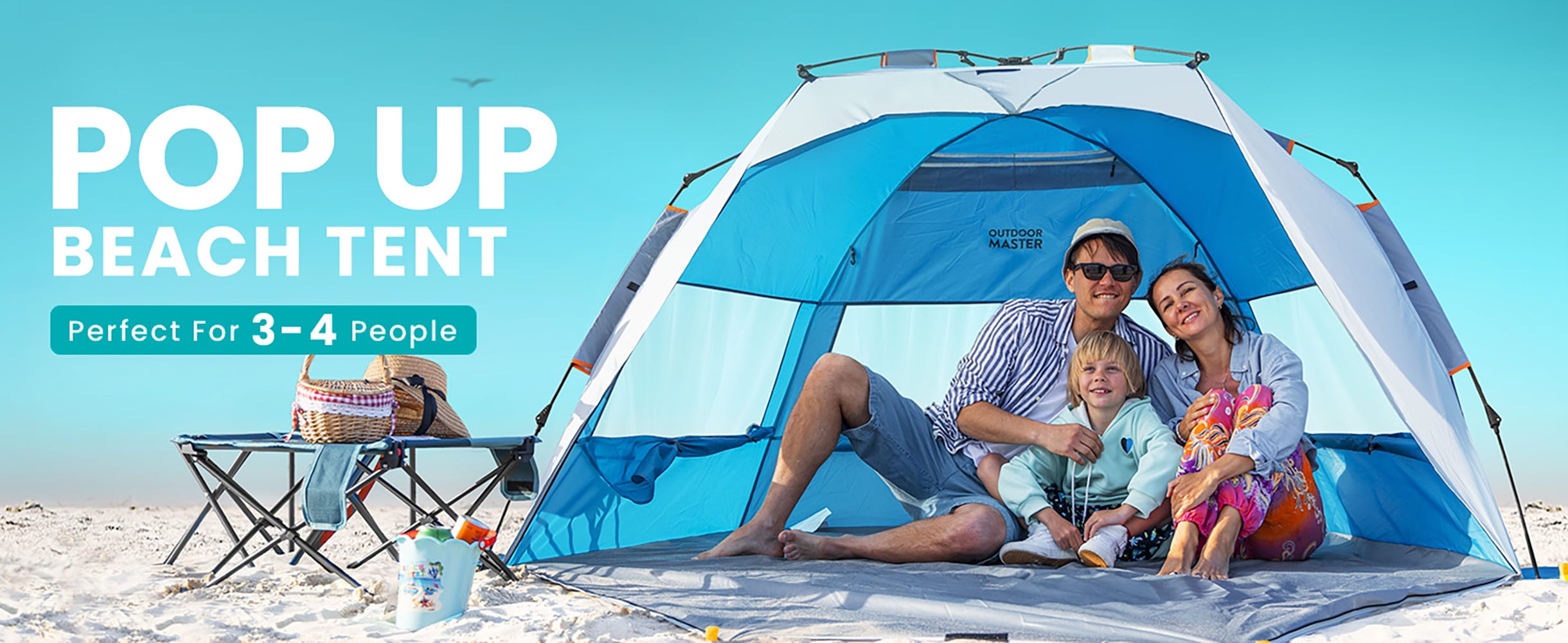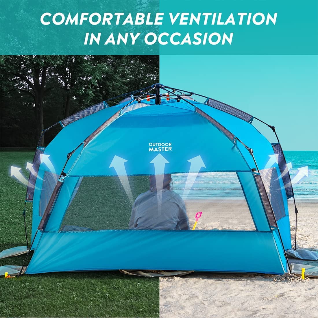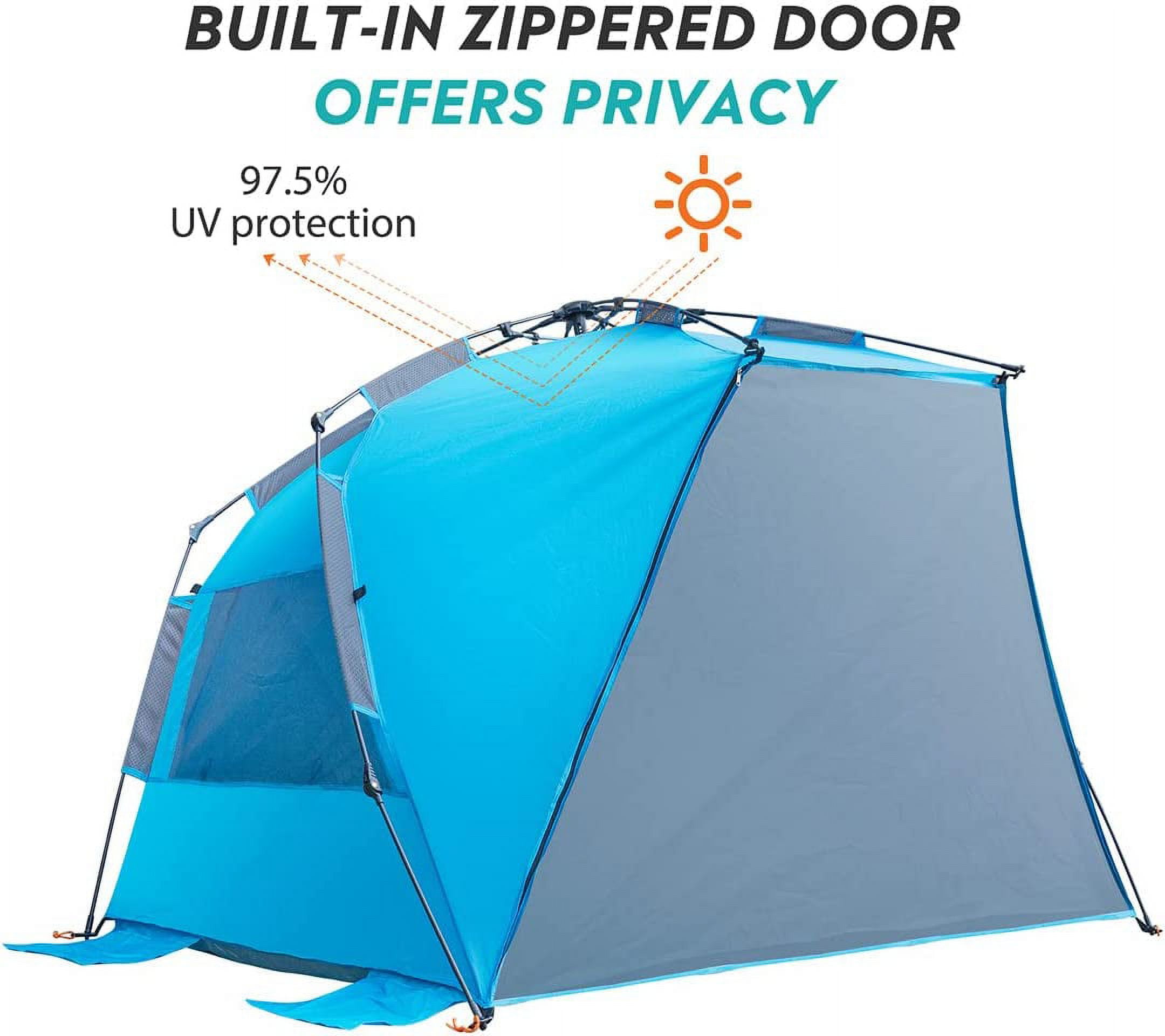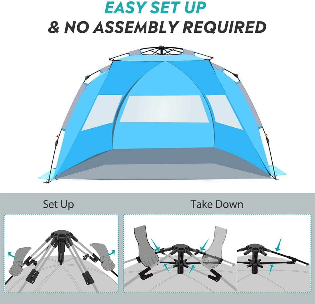 Products Recommended: OutdoorMaster Beach Tent for 3 Person – Easy Setup and Portable Beach Shade Sun Shelter Canopy OutdoorMaster Beach Tent for 3-4 Person – Easy Setup and Portable Beach Shade Sun Shelter Canopy with UPF 50+ UV Protection Removable Skylight Family Size Qipi Beach Cabana – Easy to Set Up Canopy, Waterproof, Portable 6′ x 6′ Beach Shelter, Included Side Wall, Shade with UPF 50+ UV Protection, Ultimate Sun Umbrella Specifications: Material: Polyester, Nylon, Fiberglass Pole Material Type: Fiberglass Fabric Type: Polyester,Mesh Base Material: Polyester,PU Product Care Instructions: Hand Wash Color: Blue Occupant Capacity: 4 Person Closure Type: Zipper Installation Type: Free Standing Floor Length: 53 Inches Maximum Height: 53 Inches Floor Area: 27 Square Feet Product Dimensions: 95″L x 51″W x 53″H Sport: Camping & Hiking, Hiking Recommended Uses For Product: Beach, Outdoor, Travel Special Feature: Portable, Waterproof, Sun Protection, Pop Up, UV Protection Assembly Instructions: Easy fixture of the beach tent on all surfaces with the included stakes and built-in sand bags.