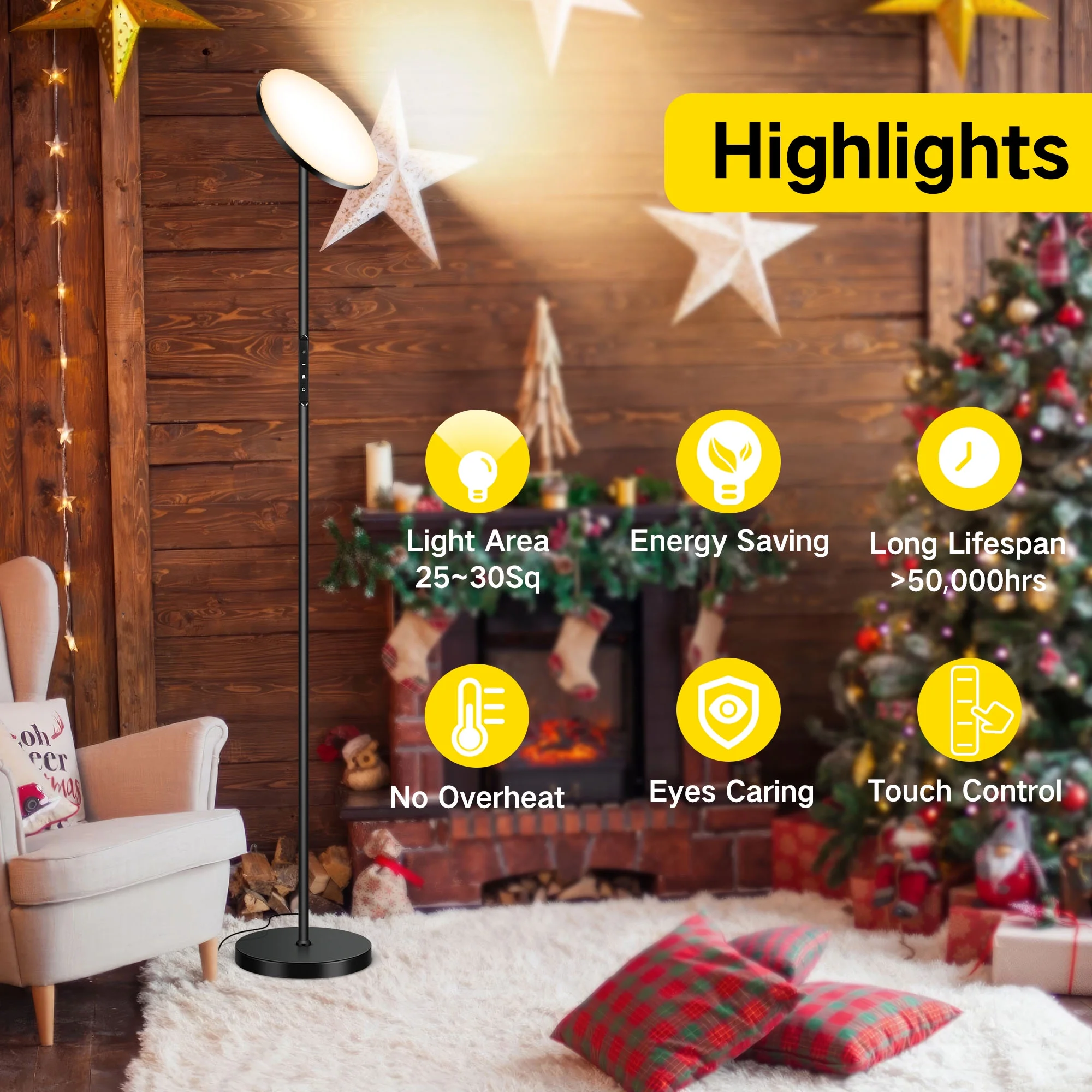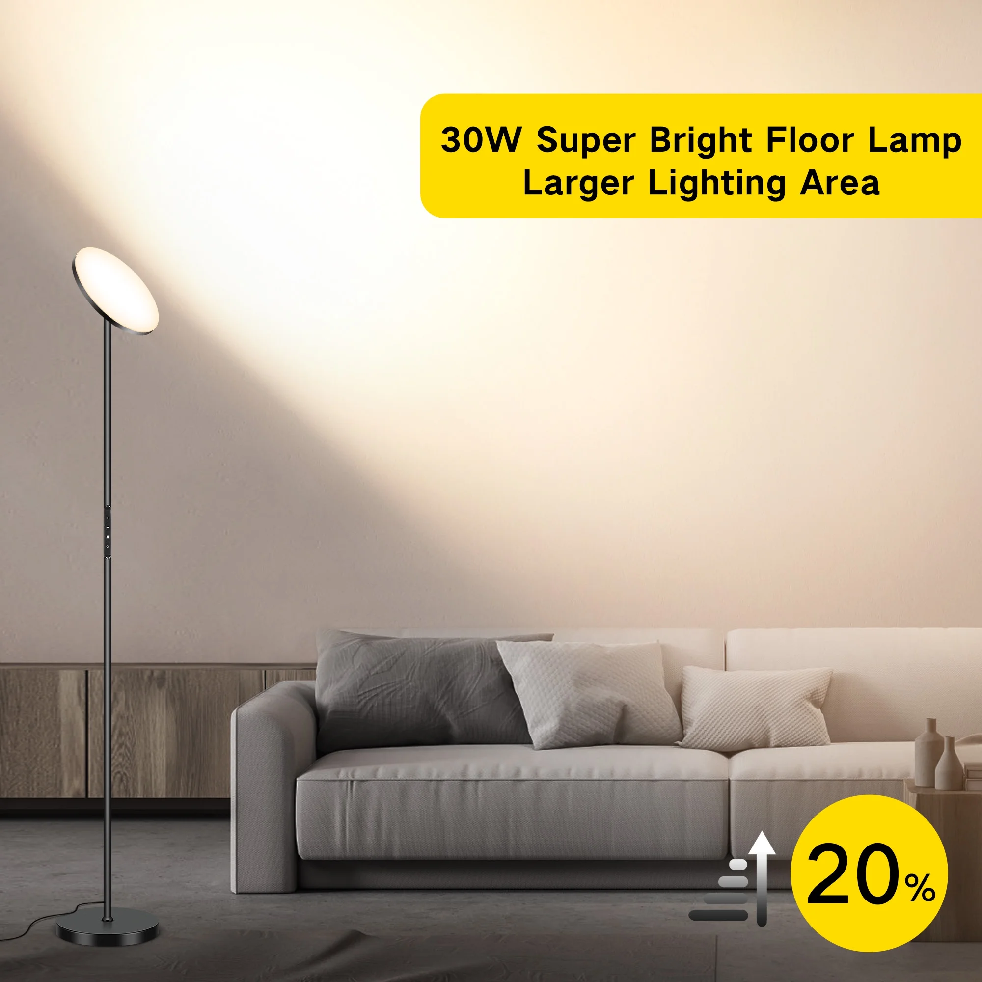 The 69.3″ tall OUTON floor lamp provides soft and bright light without direct glare, adjustable for various angles to enhance room brightness. Enjoy convenient control with the magnetic remote, easily attachable to metal surfaces and operable within a 49.2ft range. Equipped with a 30W LED that delivers 2800 lumens, equivalent to a 180W incandescent bulb, while saving up to 80% on electricity costs. The floor lamp boasts a 50,000+ hour lifespan, reducing the need for frequent replacements and ensuring consistent, bright light.