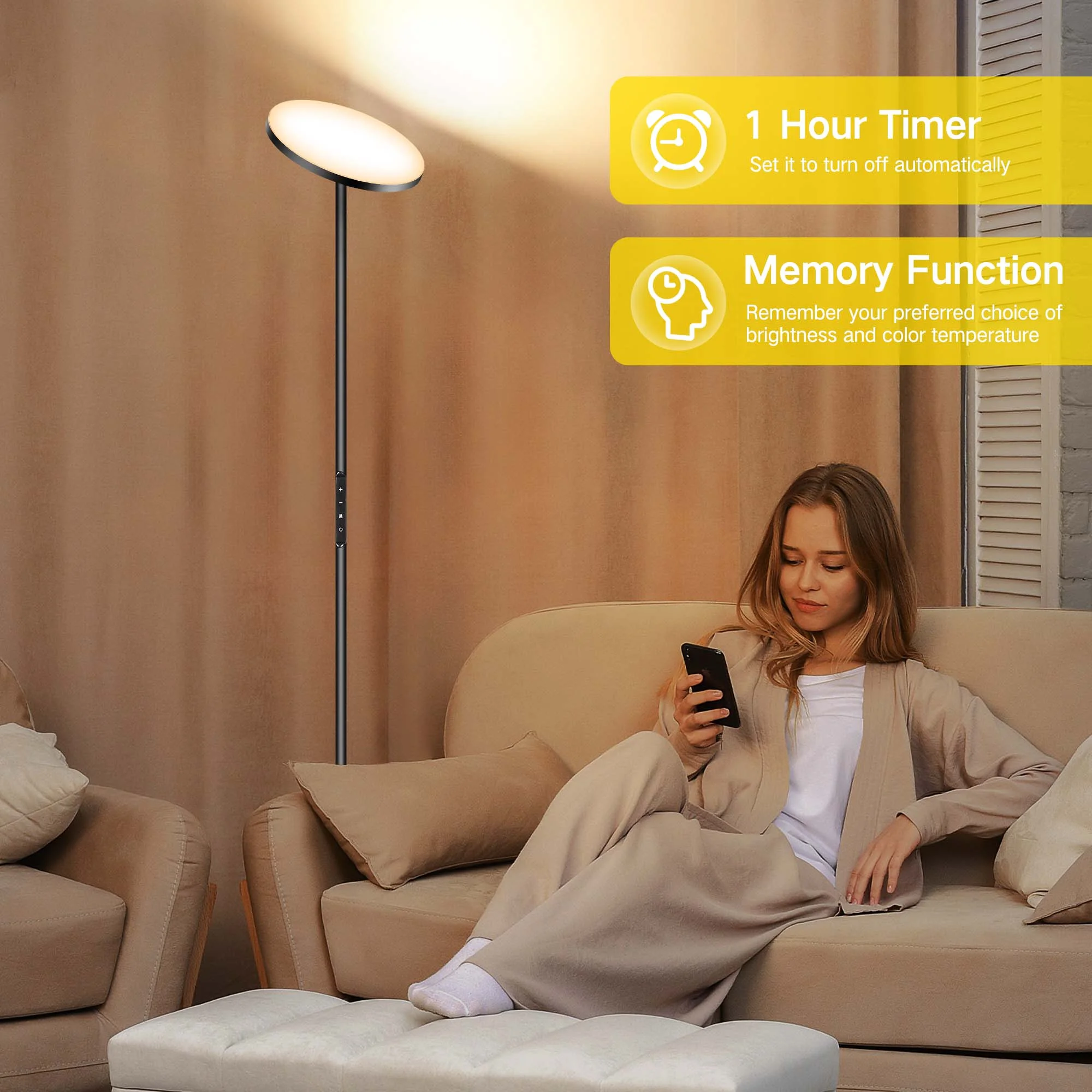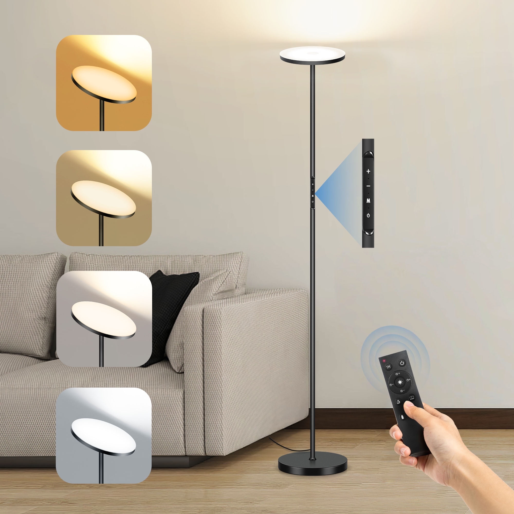 OUTON Floor Lamps for Living Room, Super Bright LED Floor Lamp with Remote Control, 70.9″ Tall Standing Lamp with Stepless Dimmable, Modern Torchiere Corner Lamp for Bedroom, Office
