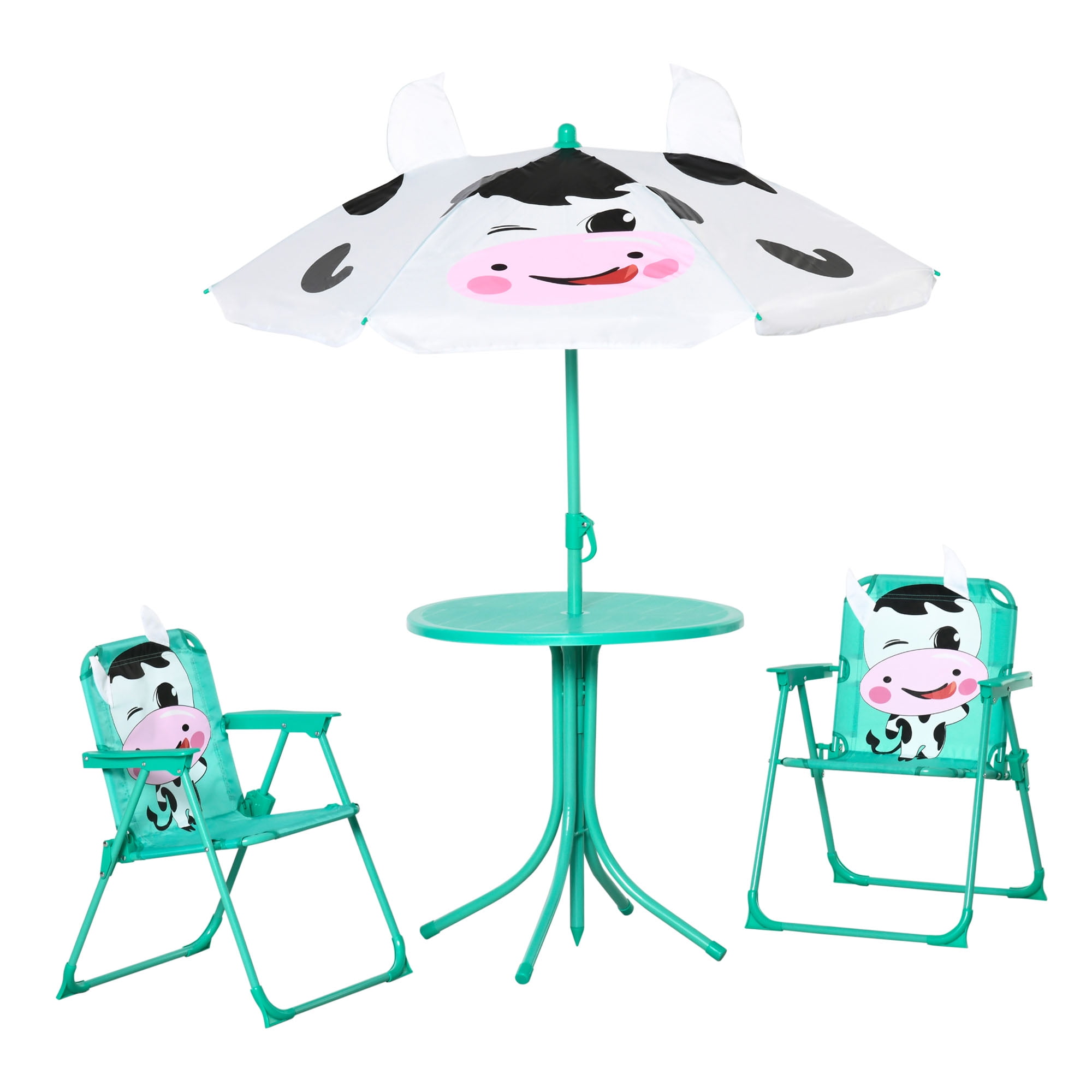 Outdoor Use: Featuring an umbrella, this kids folding table and chair keeps the sunrays off your delicate kid’s face, protecting their skin with the safety of shade. Take advantage of the nice weather. Comfortable Details: The ergonomic, comfortable chairs feature a fabric backrest with armrests to lean on when relaxing. Unlike benches, the backs encourage better posture. Adjust the height of the umbrella up and down to fine-tune the set-up to your desire, varying the shade as necessary. Storage & Portability: Storage and portability are two pluses in this kids picnic tables for outdoors, allowing safe-keeping in the winter or space in the backyard when needed. The seats and umbrella collapse, enabling you to set everything aside or transport the pieces somewhere else. For security, the bayonet locks keep the chairs unfolded when taken out of the collapsed position. Design: The cute pattern on this kids picnic table with umbrella brings smiles to little kids’ faces. Animals stick out from the backs of the chairs, creating a fun look with a realistic touch. Toddler Picnic Table Set Dimension: Overall Dimensions Color: White, Green Material: Steel Pipe, Polyester Table Dimensions: 19.5″ Dia. x 19.75″ H Chair Dimensions: 14.25″ W x 15.25″ D x 19.75″ H (Fully Expanded), 19″ L x 14.25″ W x 2.5″ H (Folded) 6-Bone Sun Umbrella Dimensions: 39.25″ Dia. x 33.75″-48″ H Seat Size: 11.5″ W x 9″ D x 10.25″ H Armrest Size: 7.75″ L x 1.5″ W x 15″ H Backrest Size: 11.5″ W x 11.25″ H Weight Capacity: 77 lbs. (Chair), 44 lbs. (Table) Suitable for 3-6 years old Net Weight: 8 lbs. Item Label: 312-069WT Explore More Our Kids Garden Table and Chair Set Products, Click and Go!